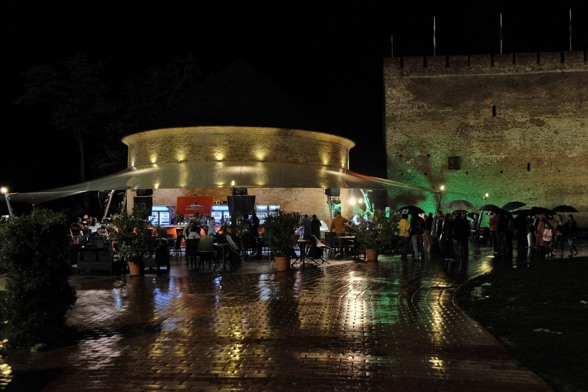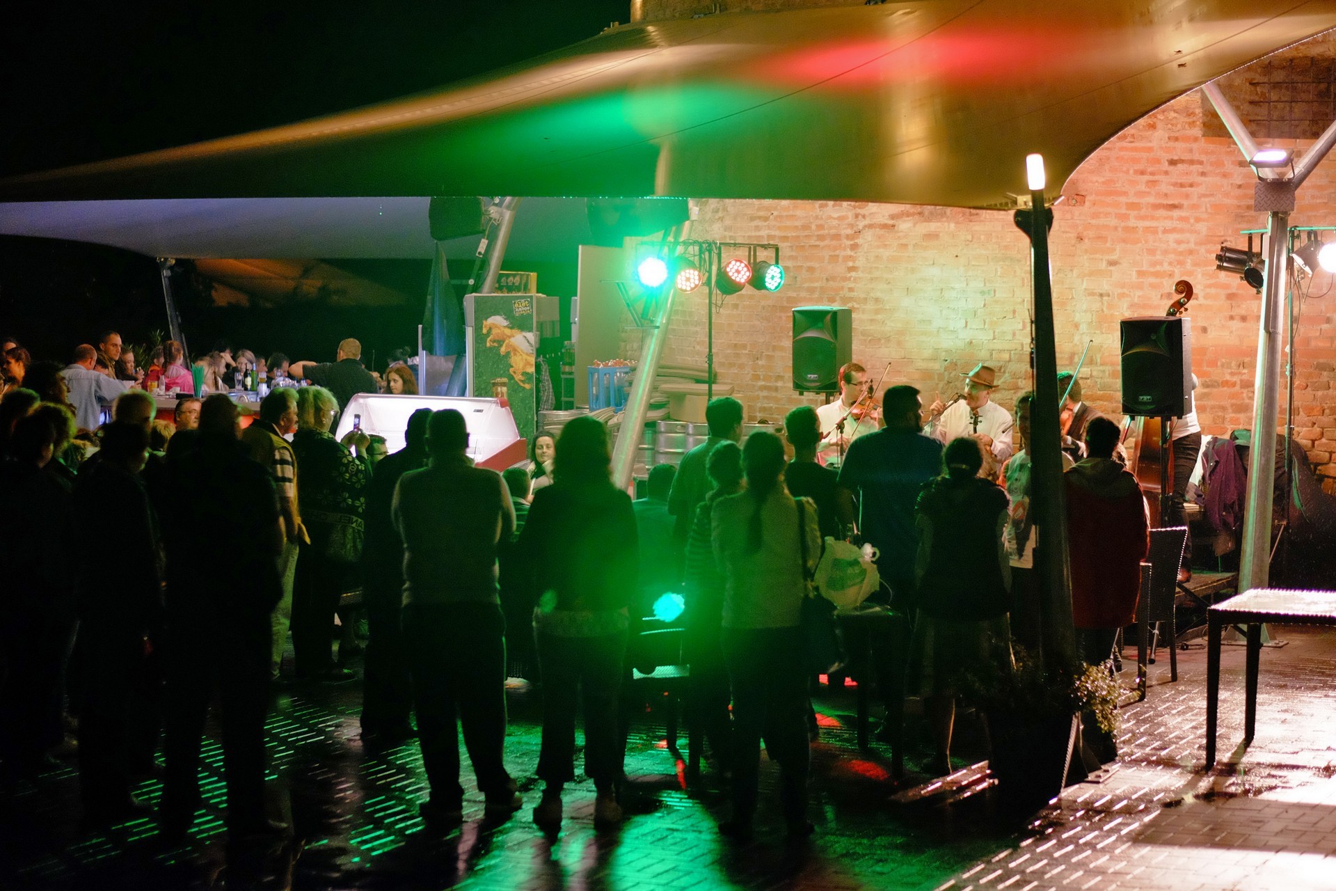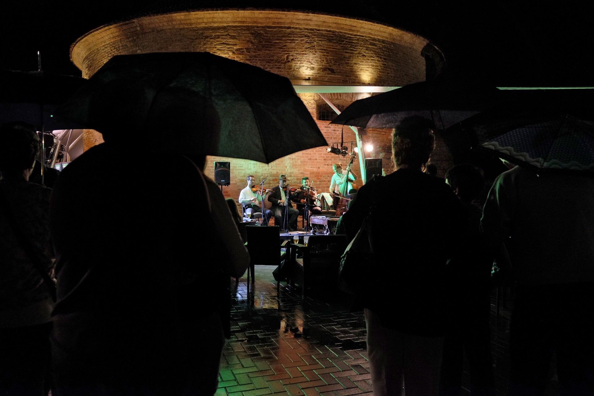 A fesztiválzenekar azonban nem hagyta, hogy népzene nélkül teljen az est, a muzsikusok a Rondella teraszon kialakított emelvényen húzták a talpalávalót a szünet nélkül. A kedvnek és az átázott cipőnek nem ártott egy kis pályinka vagy jó bor belsőleg, végül a tervezett ismerkedős táncház helyett jó hangulatú közös nótázás kerekedett, amelyben együtt danoltak a zenészek, a táncosok és közönség – amíg csak úri kedvük tartotta.