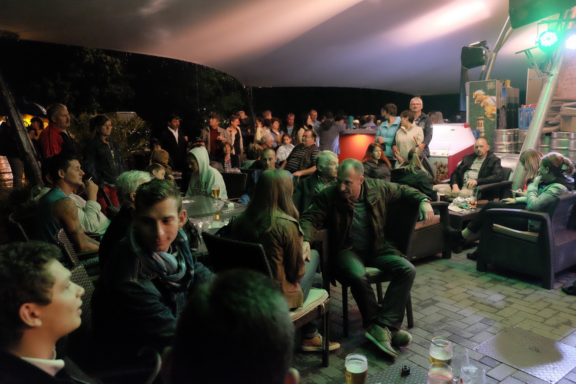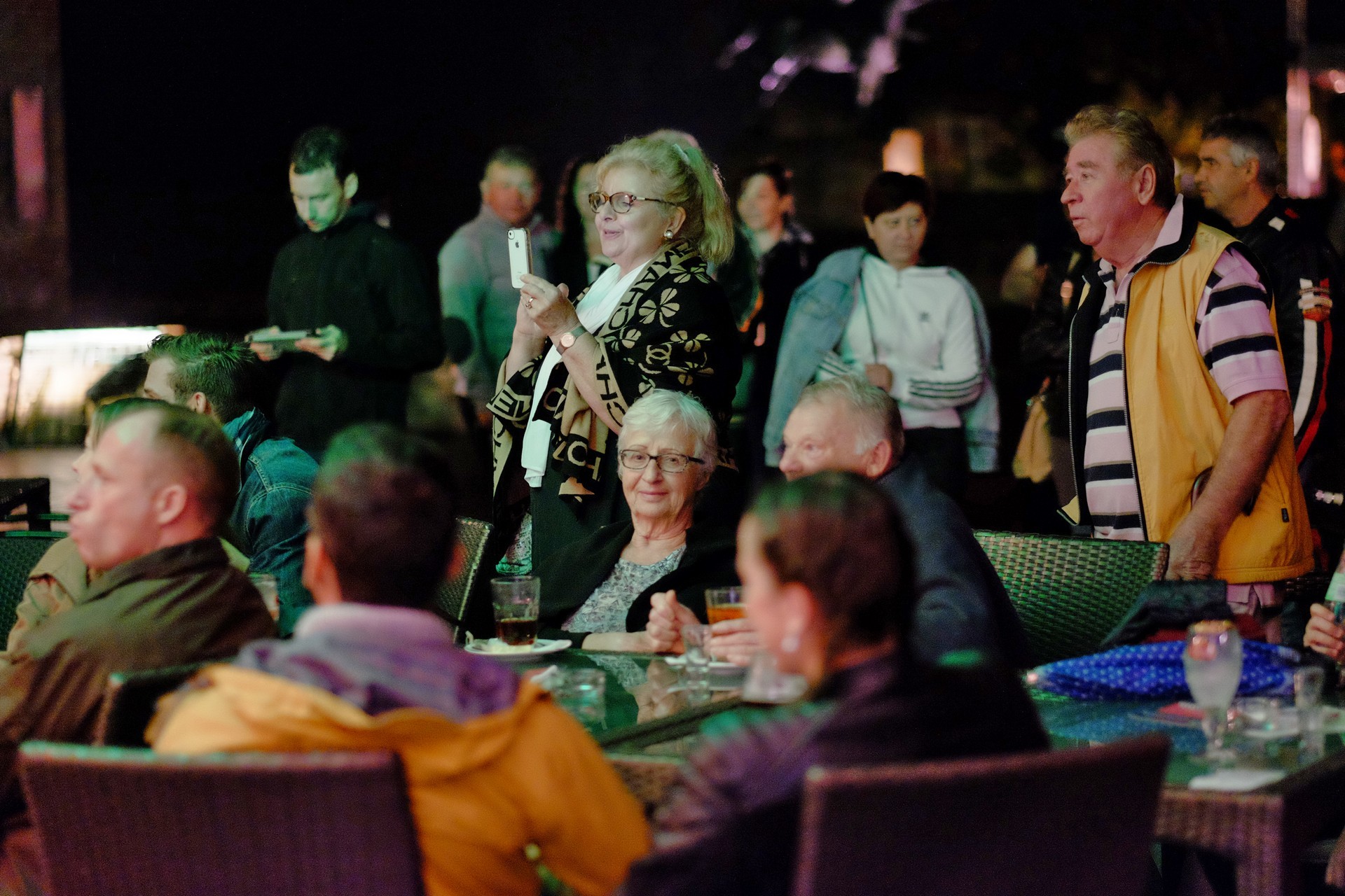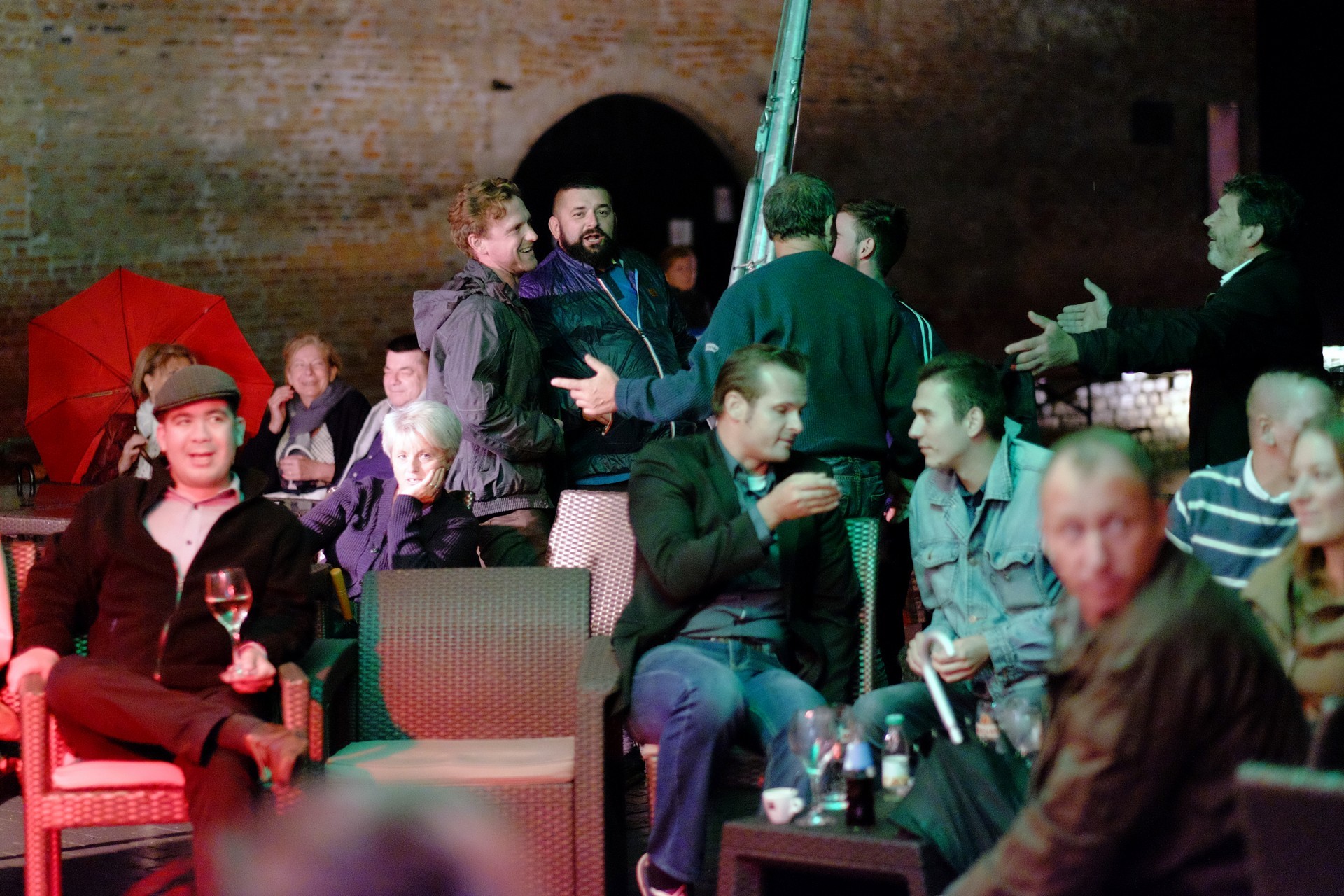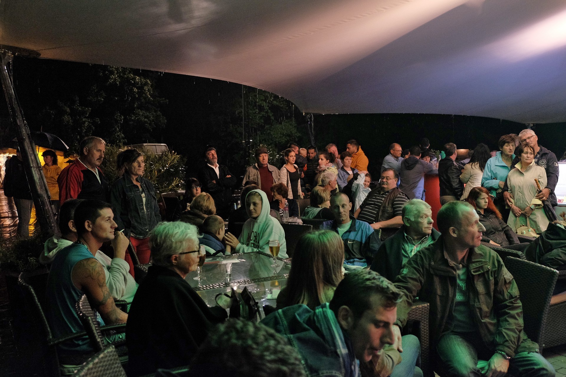 A fesztiválzenekar azonban nem hagyta, hogy népzene nélkül teljen az est, a muzsikusok a Rondella teraszon kialakított emelvényen húzták a talpalávalót a szünet nélkül. A kedvnek és az átázott cipőnek nem ártott egy kis pályinka vagy jó bor belsőleg, végül a tervezett ismerkedős táncház helyett jó hangulatú közös nótázás kerekedett, amelyben együtt danoltak a zenészek, a táncosok és közönség – amíg csak úri kedvük tartotta.