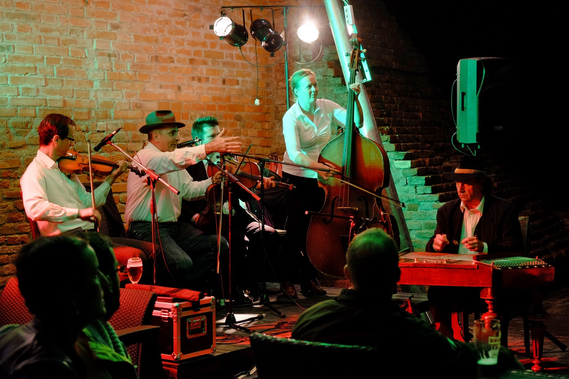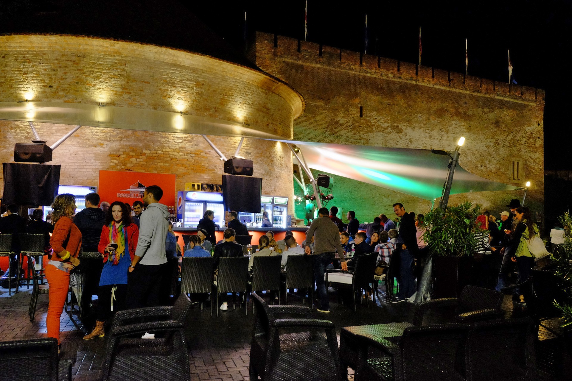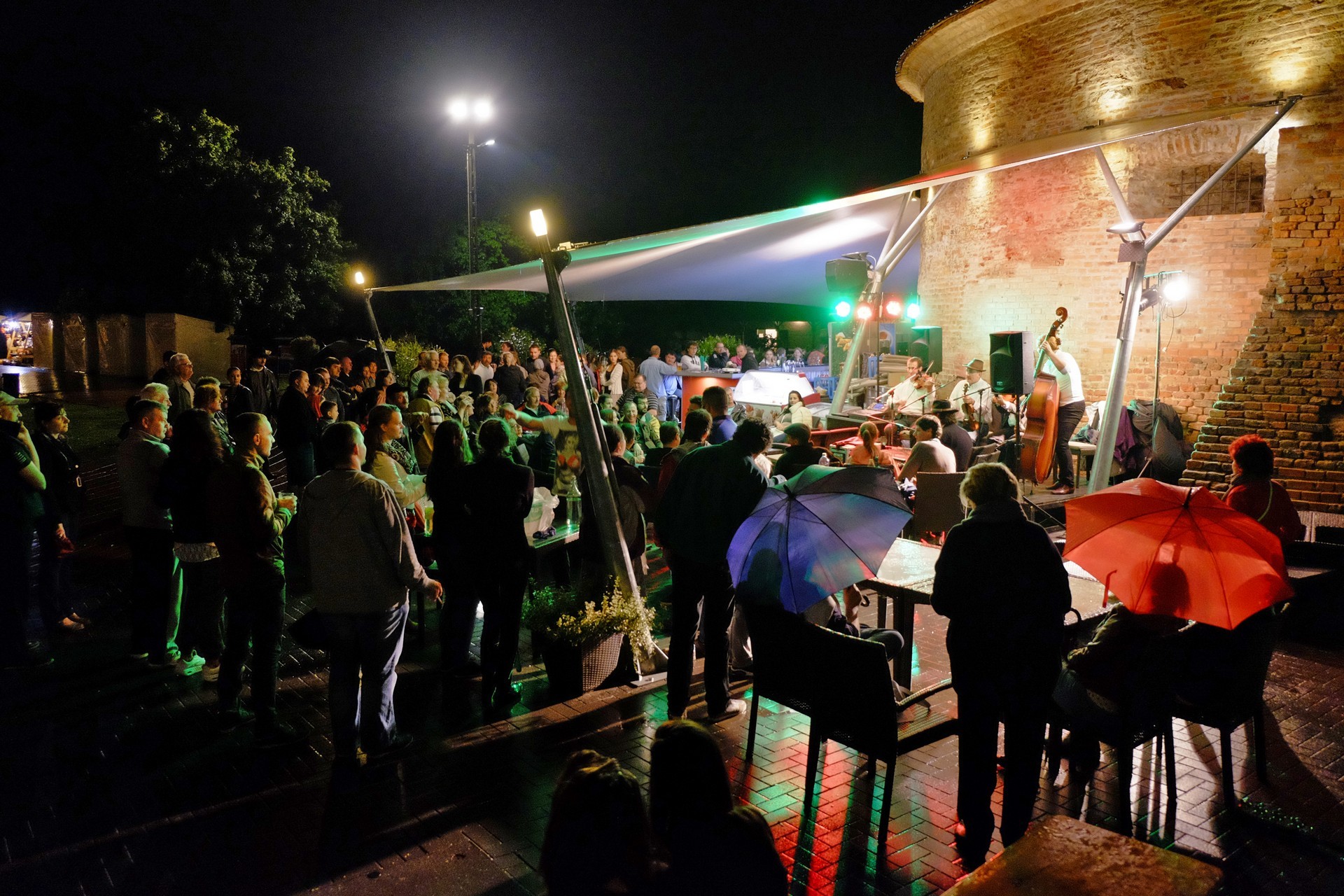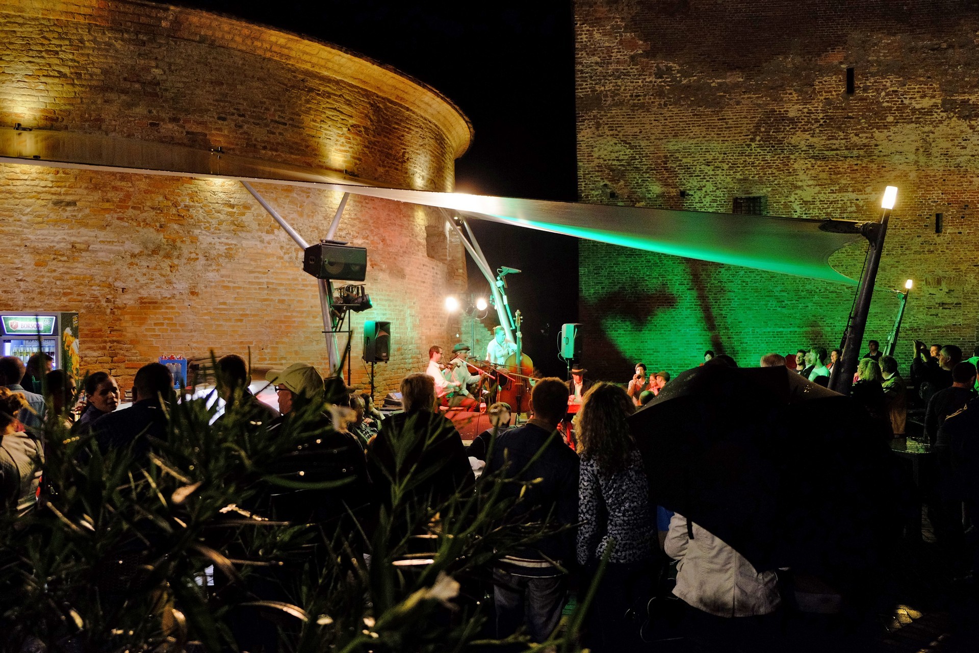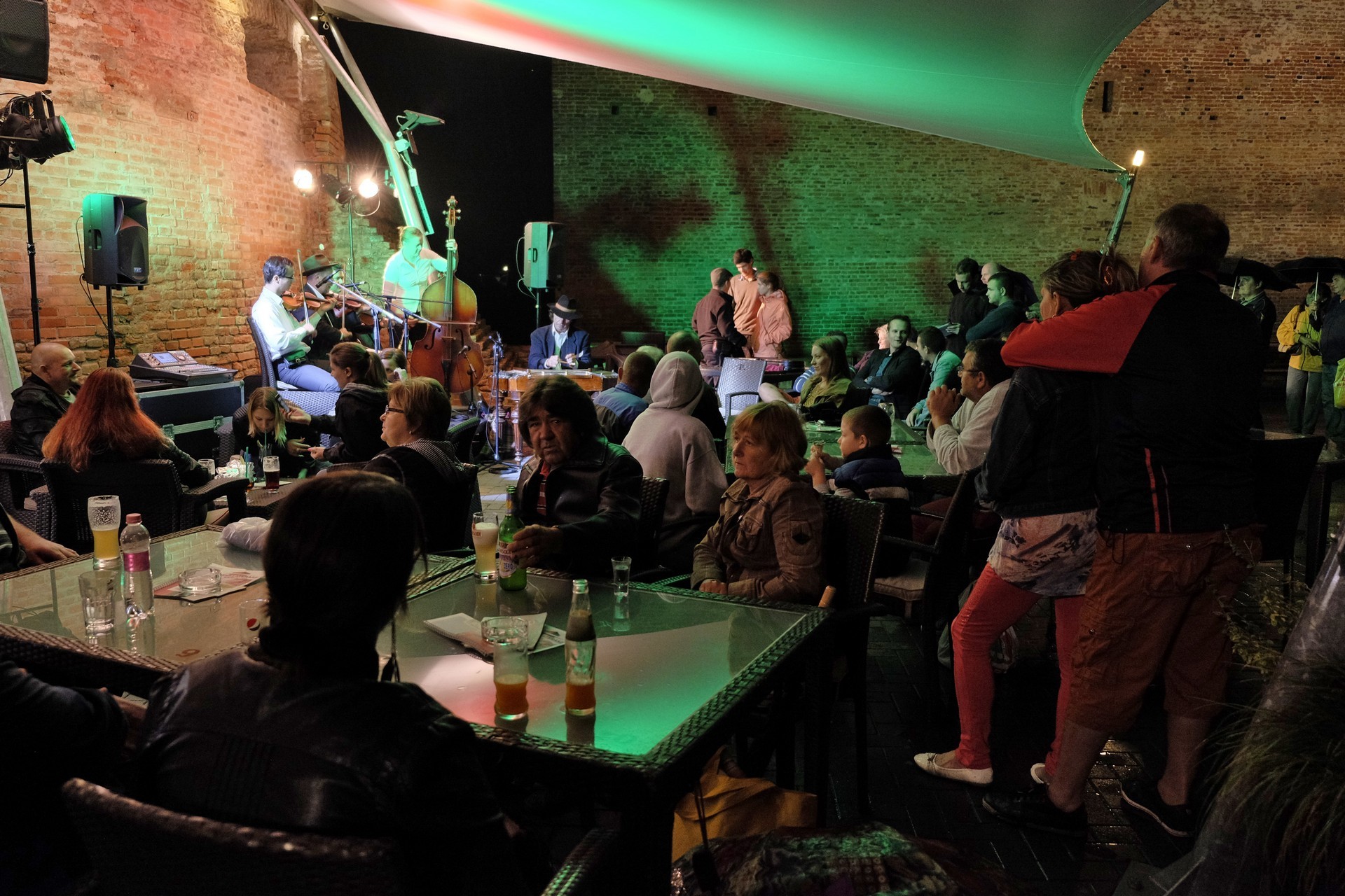 a fesztiválzenekar a gyulai rondella teraszon muzsikált