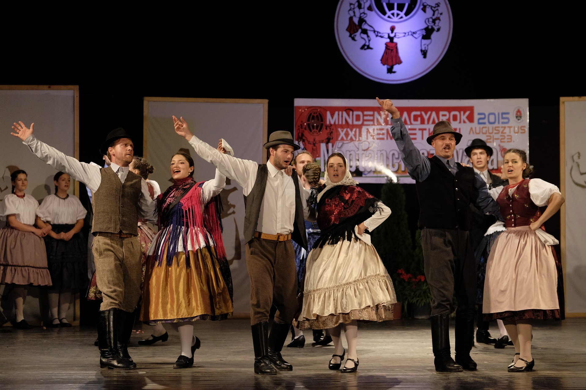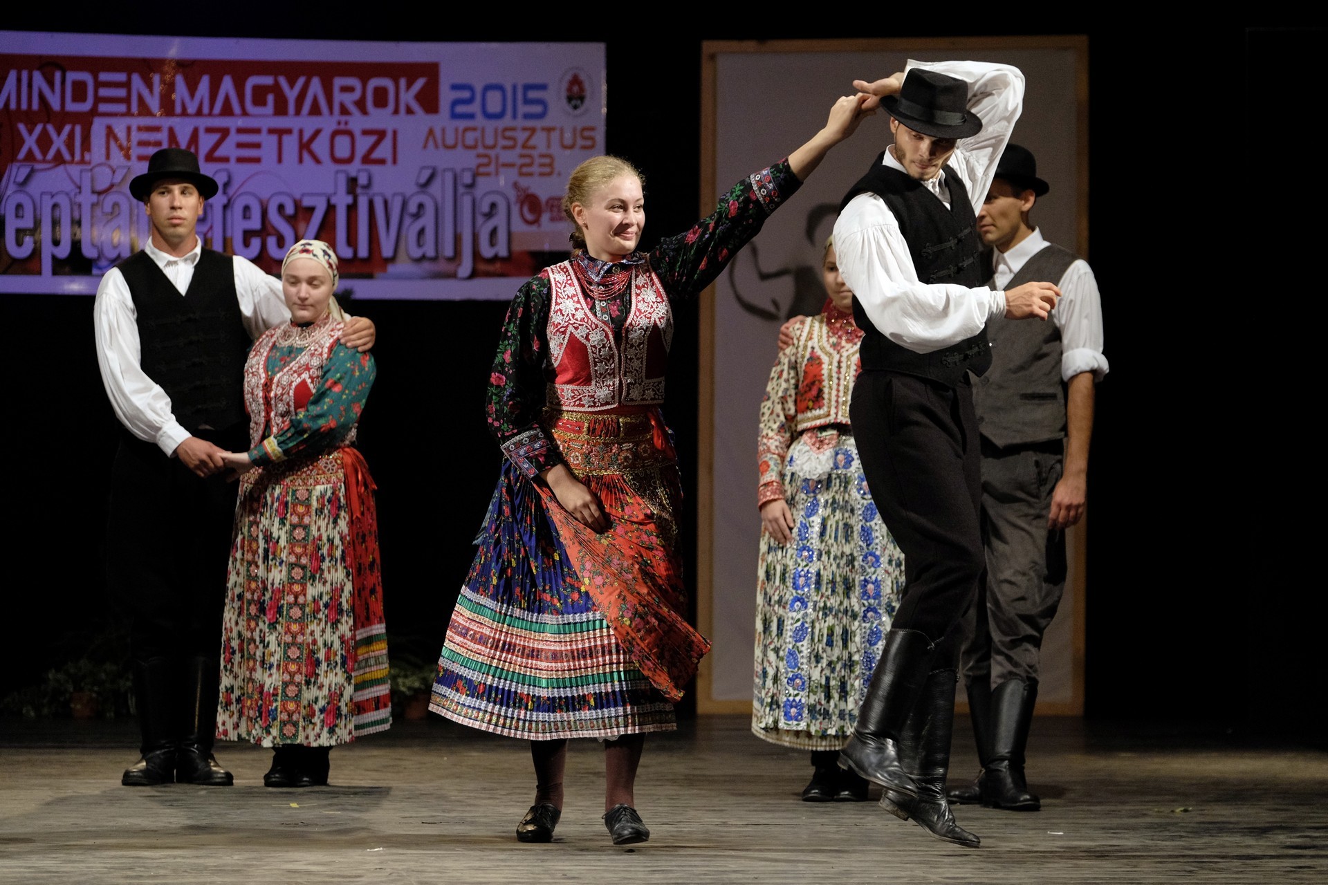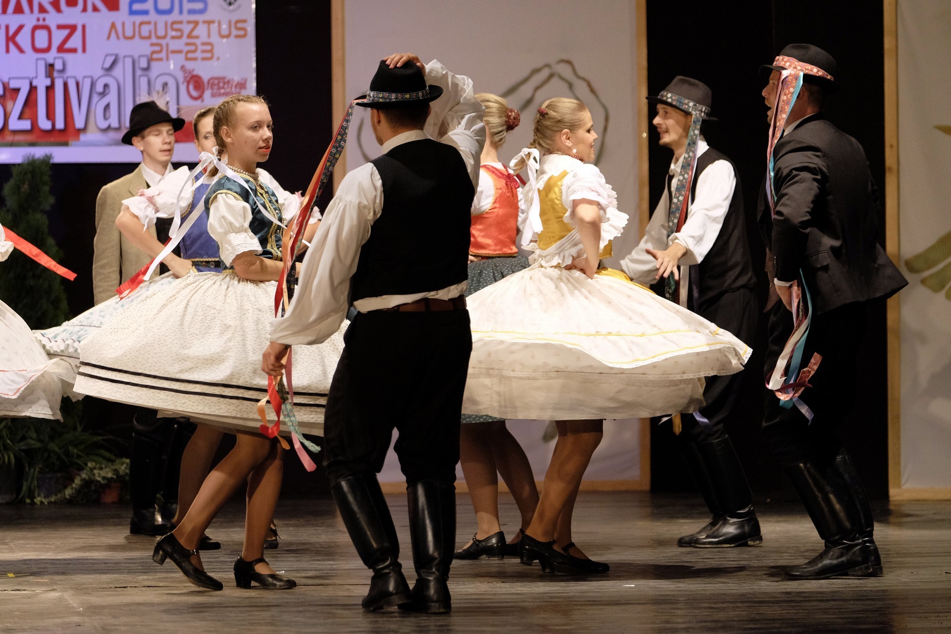 Az este során többször is színpadra lépő gyulai Körös Táncegyüttes tagjai hol sárközi karikázót mutattak be, hol a Fonó táncegyüttessel adtak elő közös produkciót, de a dicsőszentmártoni Kökényes- és a gyulai Harruckern Táncegyüttes műsora is szemet gyönyörködtető volt.