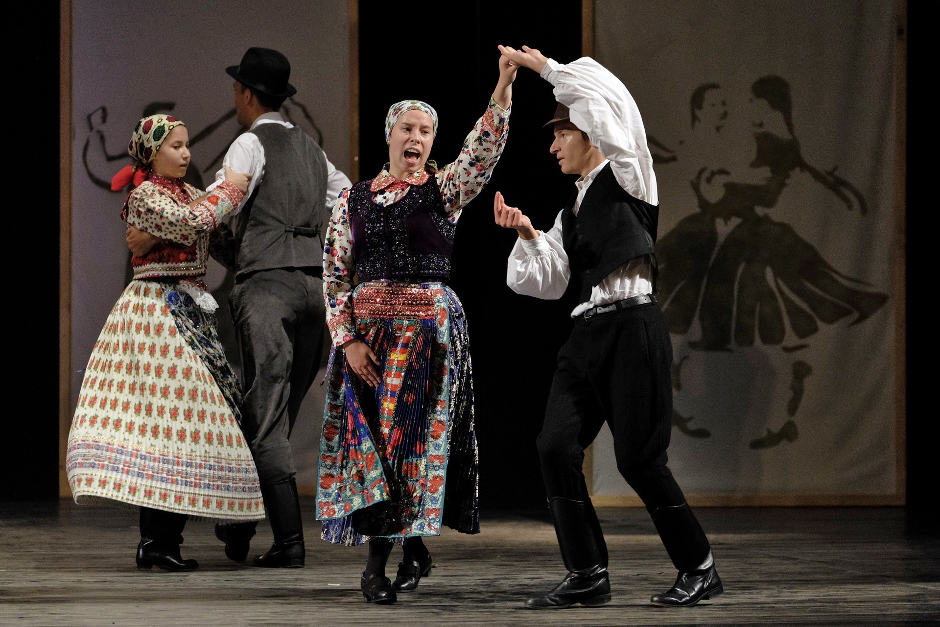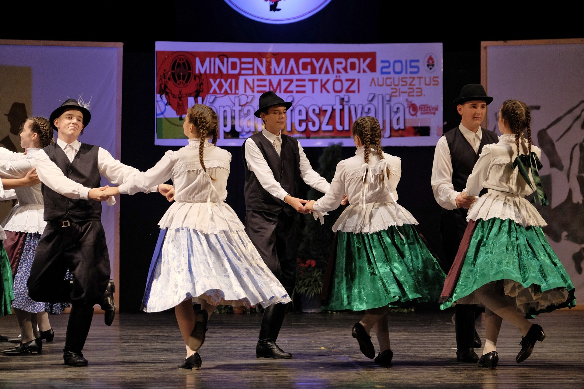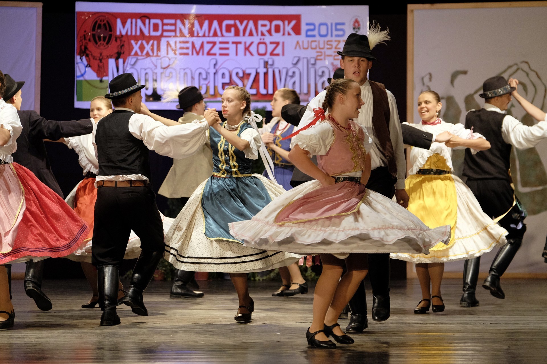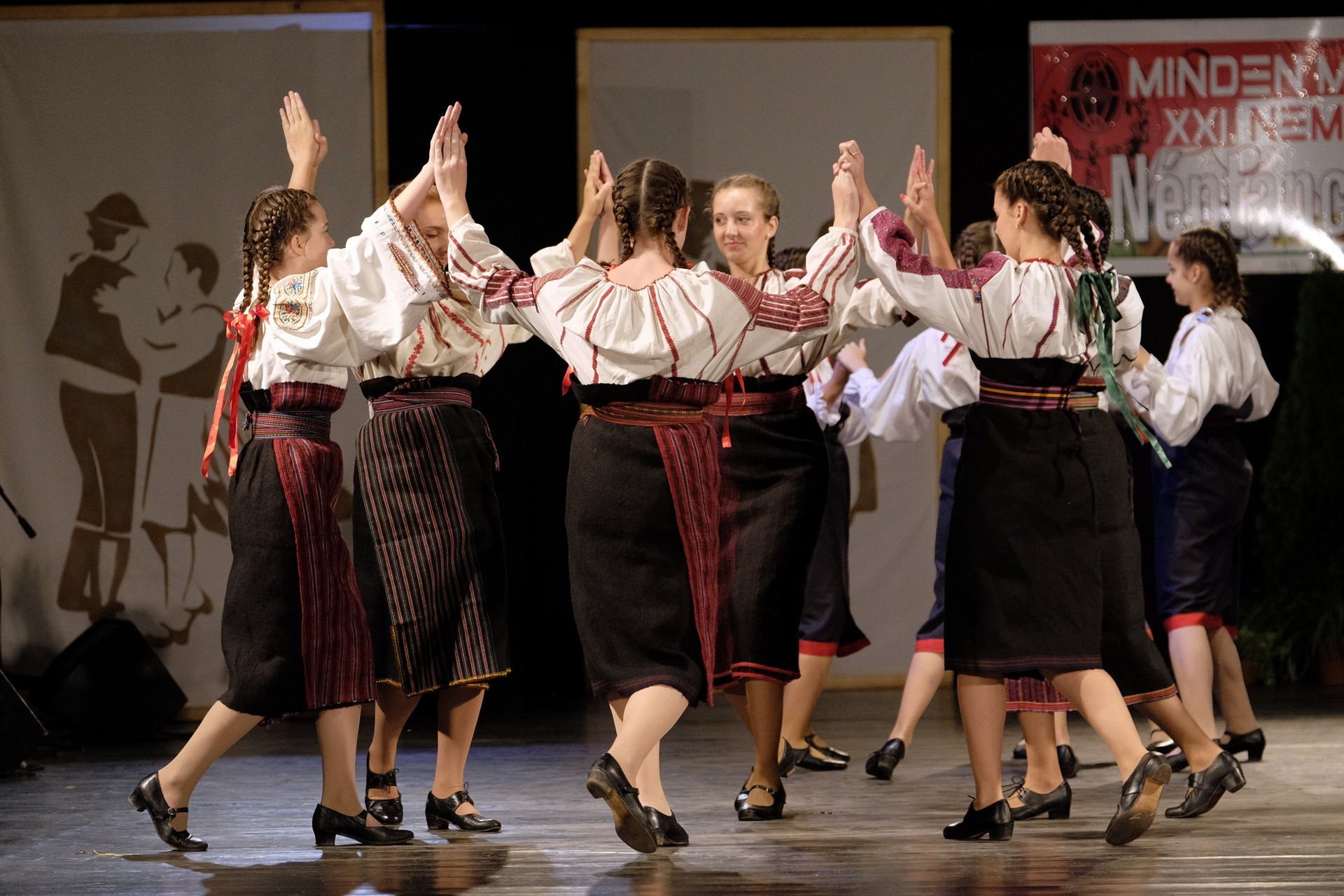 Az este során többször is színpadra lépő gyulai Körös Táncegyüttes tagjai hol sárközi karikázót mutattak be, hol a Fonó táncegyüttessel adtak elő közös produkciót, de a dicsőszentmártoni Kökényes- és a gyulai Harruckern Táncegyüttes műsora is szemet gyönyörködtető volt.