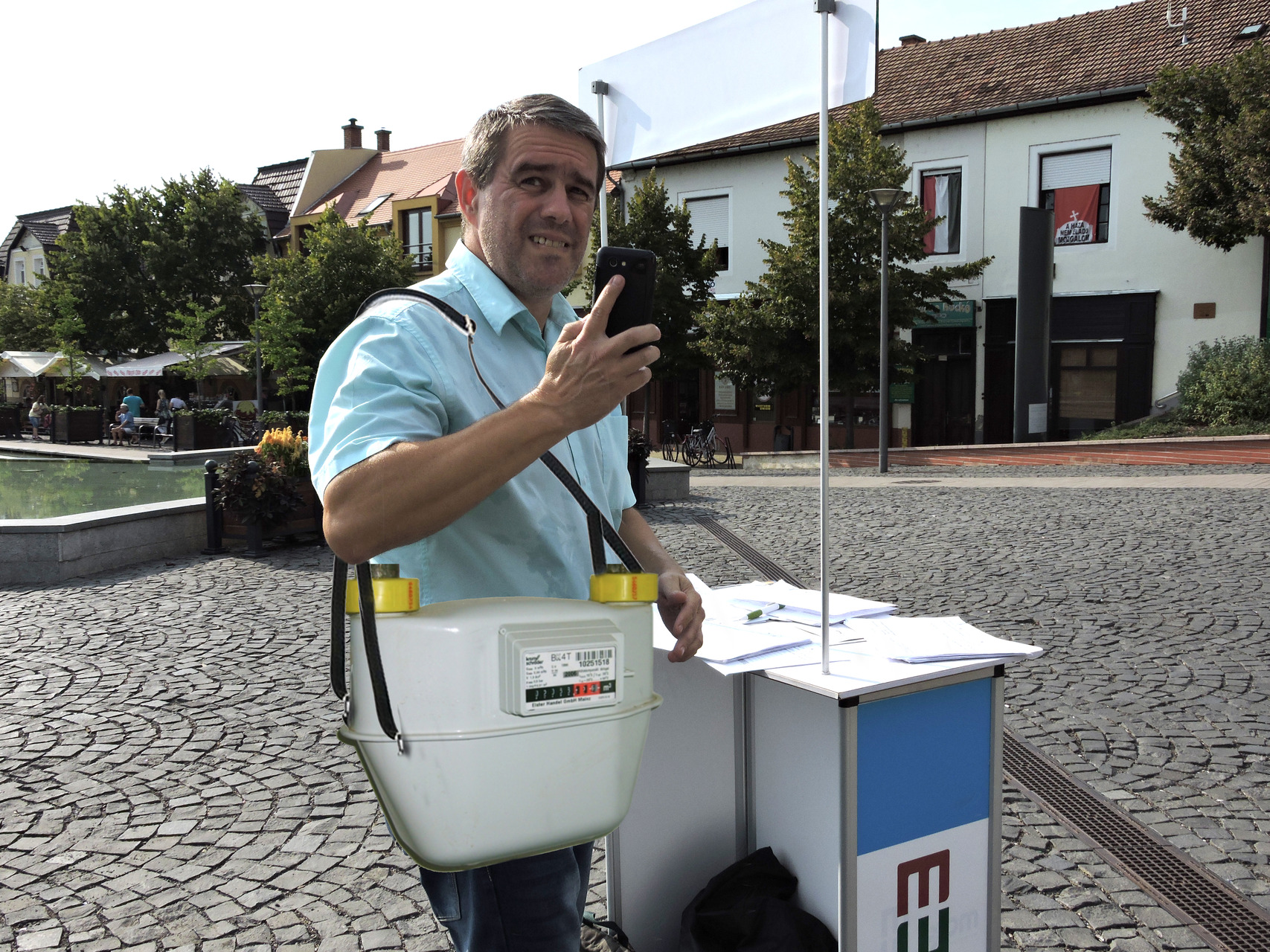 egy gázóra és bod tamás "együtt" a gyulai kossuth téren. Képünk illusztráció