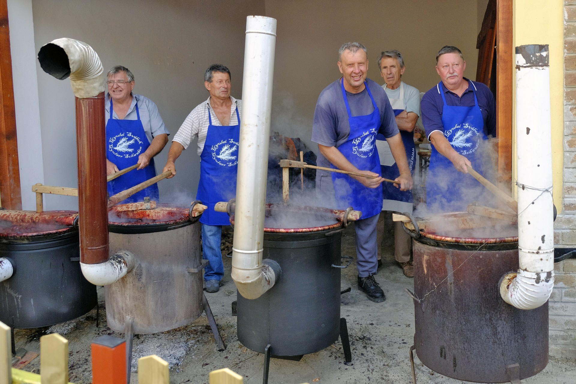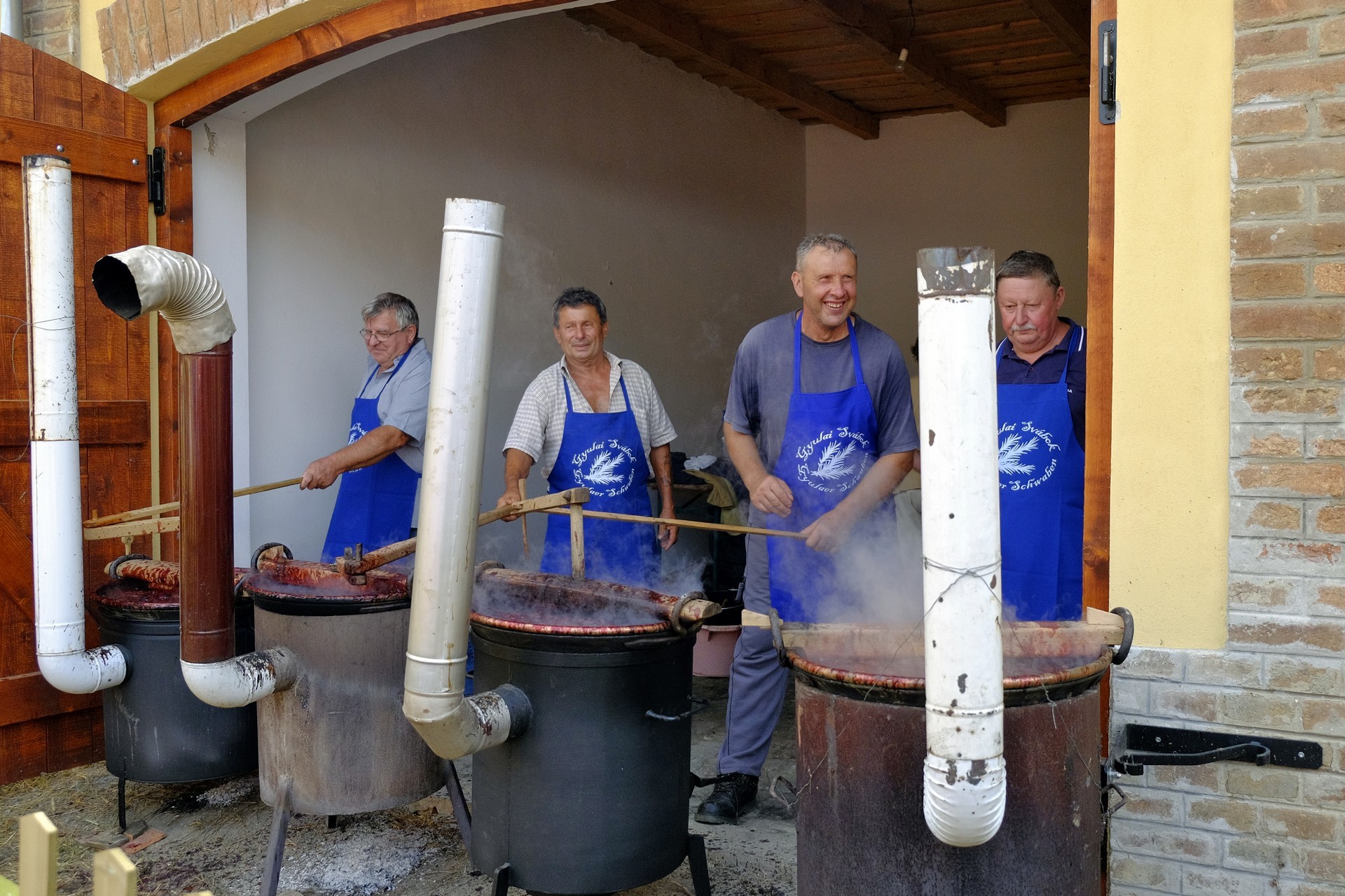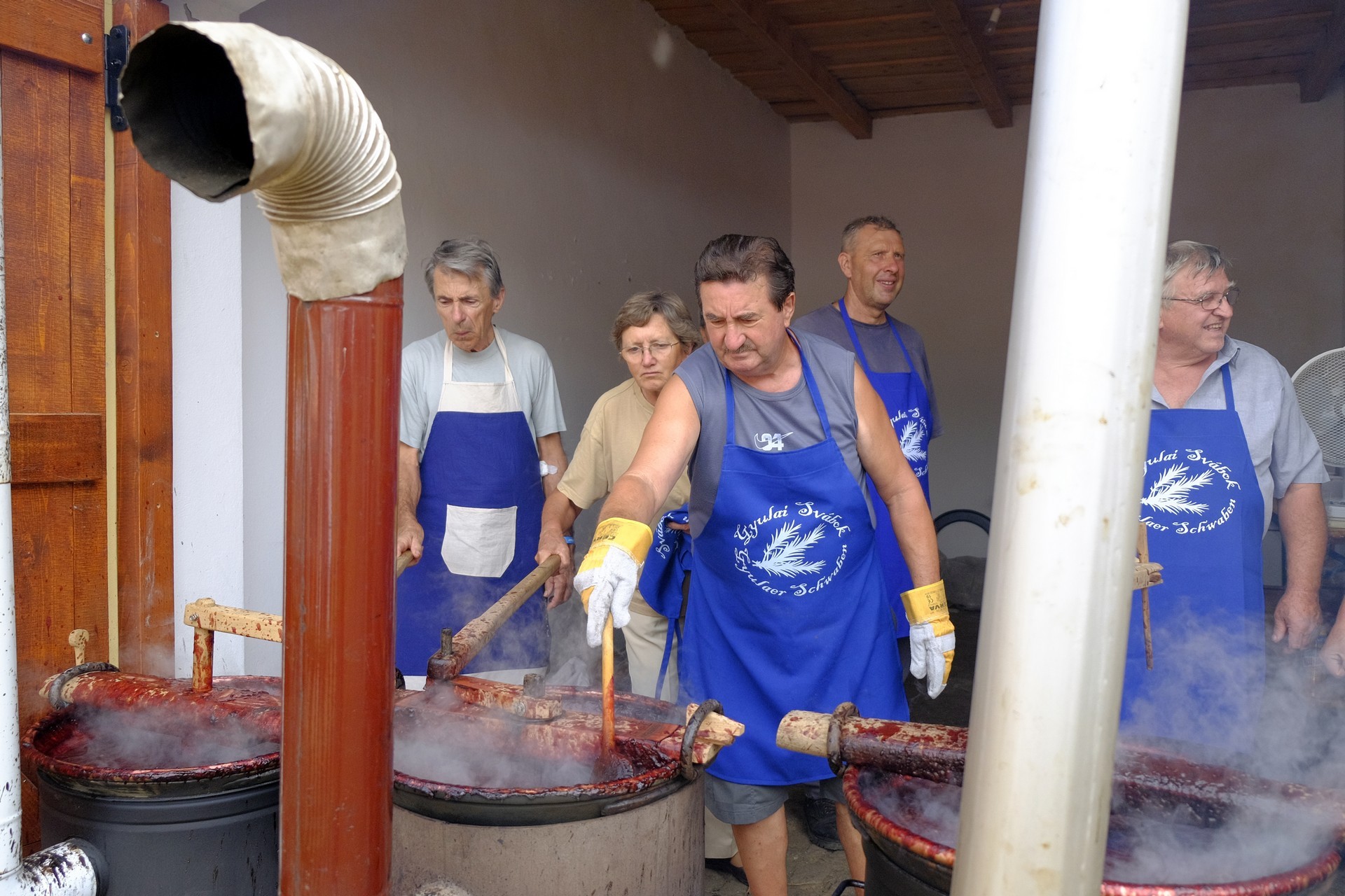 sváb szilvalekvárfőzők a „Máriás” ház udvarában