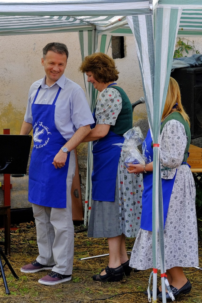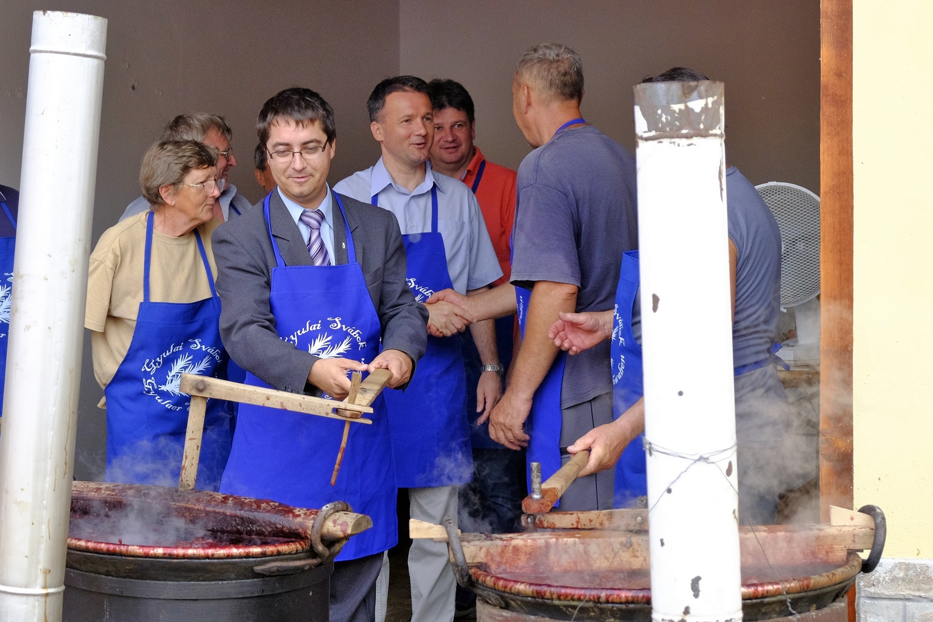 Miután hivatalosan is megnyitotta a rendezvényt, valamennyi köszöntőt mondó felkötötte az ilyenkor hagyományos kötényt, és néhány perc erejéig kivette részét az akkorra már egyre sűrűsödő lekvár kavarásából.