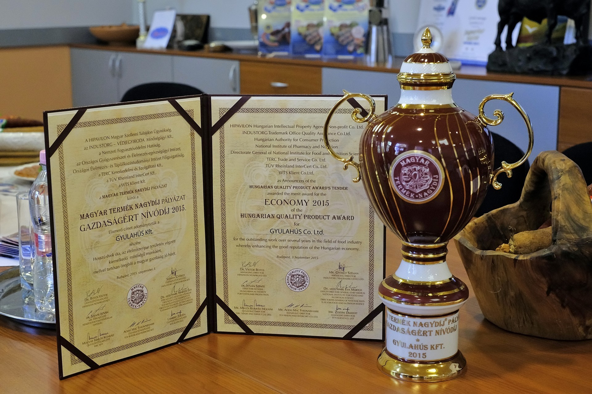 Daka Zsolt emlékeztetett rá: a vállalat 2013-ban és 2014-ben is eredményes volt a Magyar Termék Nagydíj pályázatán. Az ügyvezető kiemelte: a cég idén az általa gyártott gyulai szalámival és kézműves termékcsaládjával két termékdíjat nyert el, emellett egyedüli hazai cégként a Gazdaságért Nívódíjat is elhozta. Mint kifejtette, az elismerés pozitív visszajelzés a Gyulahús számára.