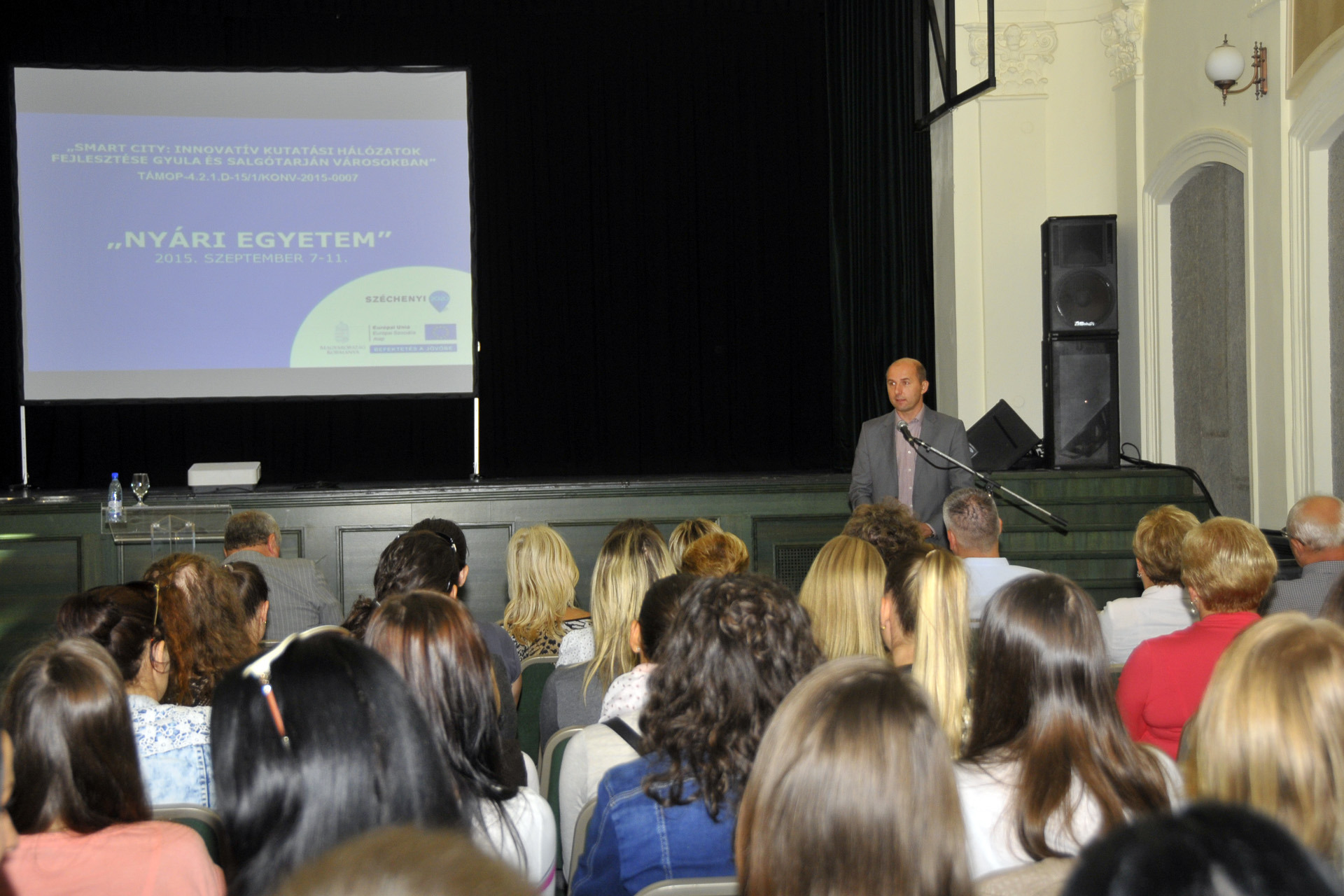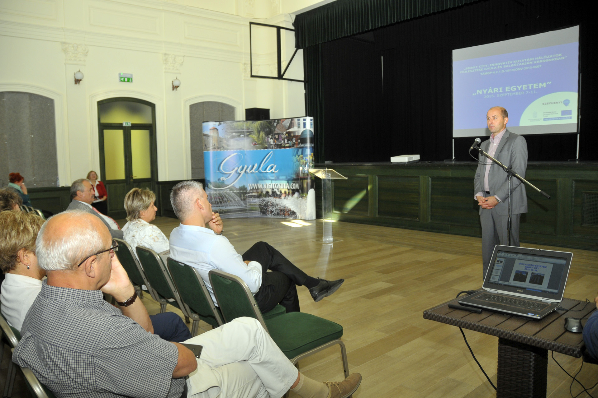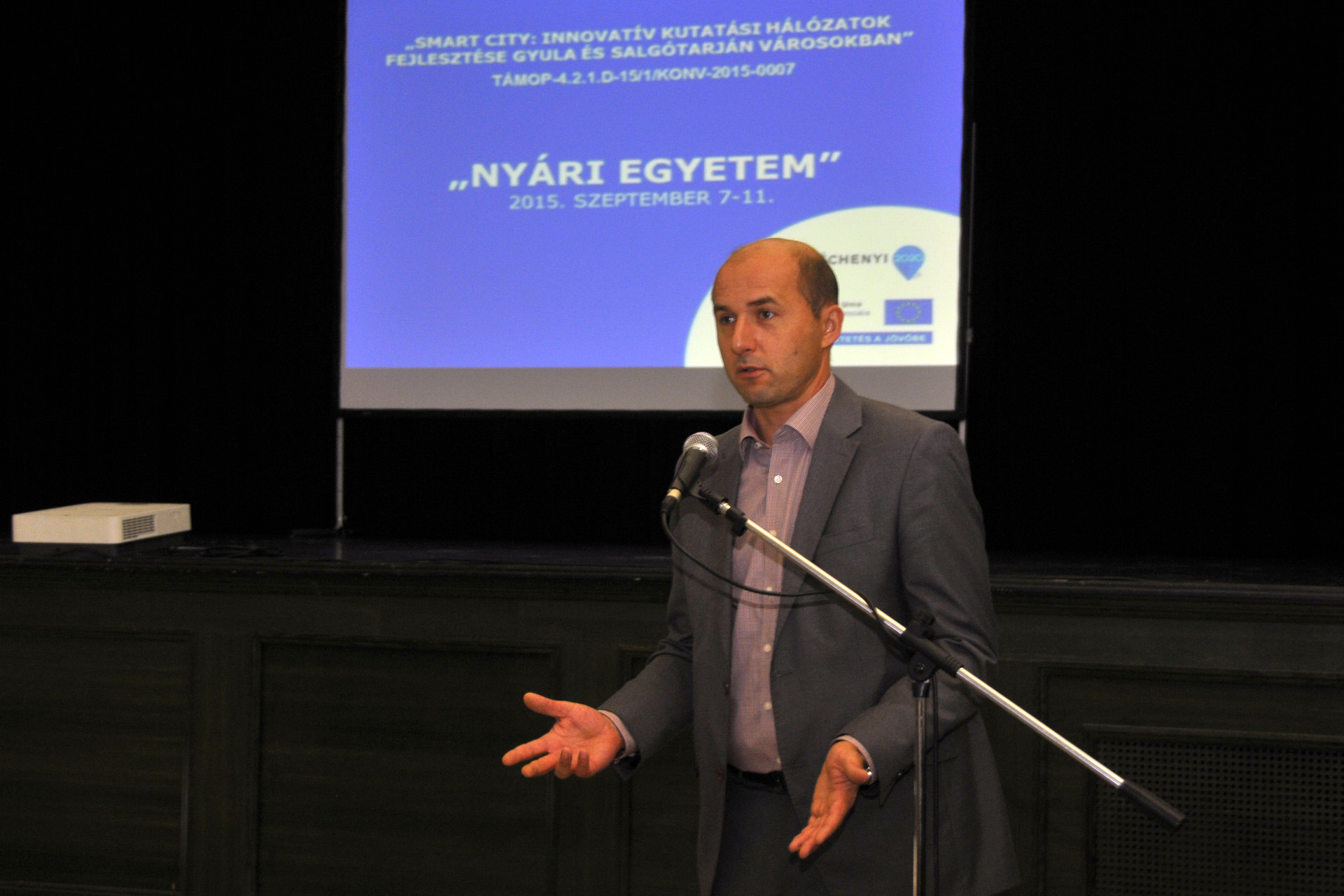 A Szent István Egyetem dékánja, dr. Bíró Tibor nyitóbeszédében a magyar felsőoktatás utóbbi időben felgyorsult átalakulásáról beszélt, amelyben mindinkább körvonalazódik az, hogy az egyetemeknek fel kell készülniük az önfenntartásra. E célból jött létre a Smart City projekt is, amelynek központi városa Gyula.