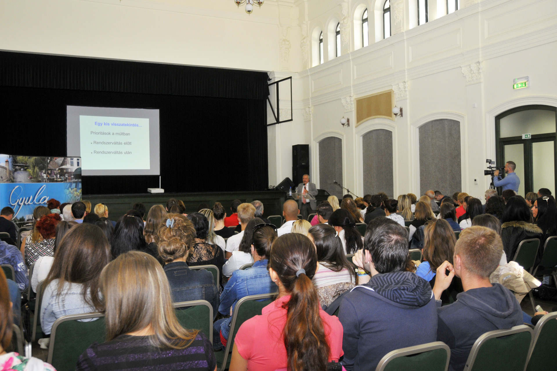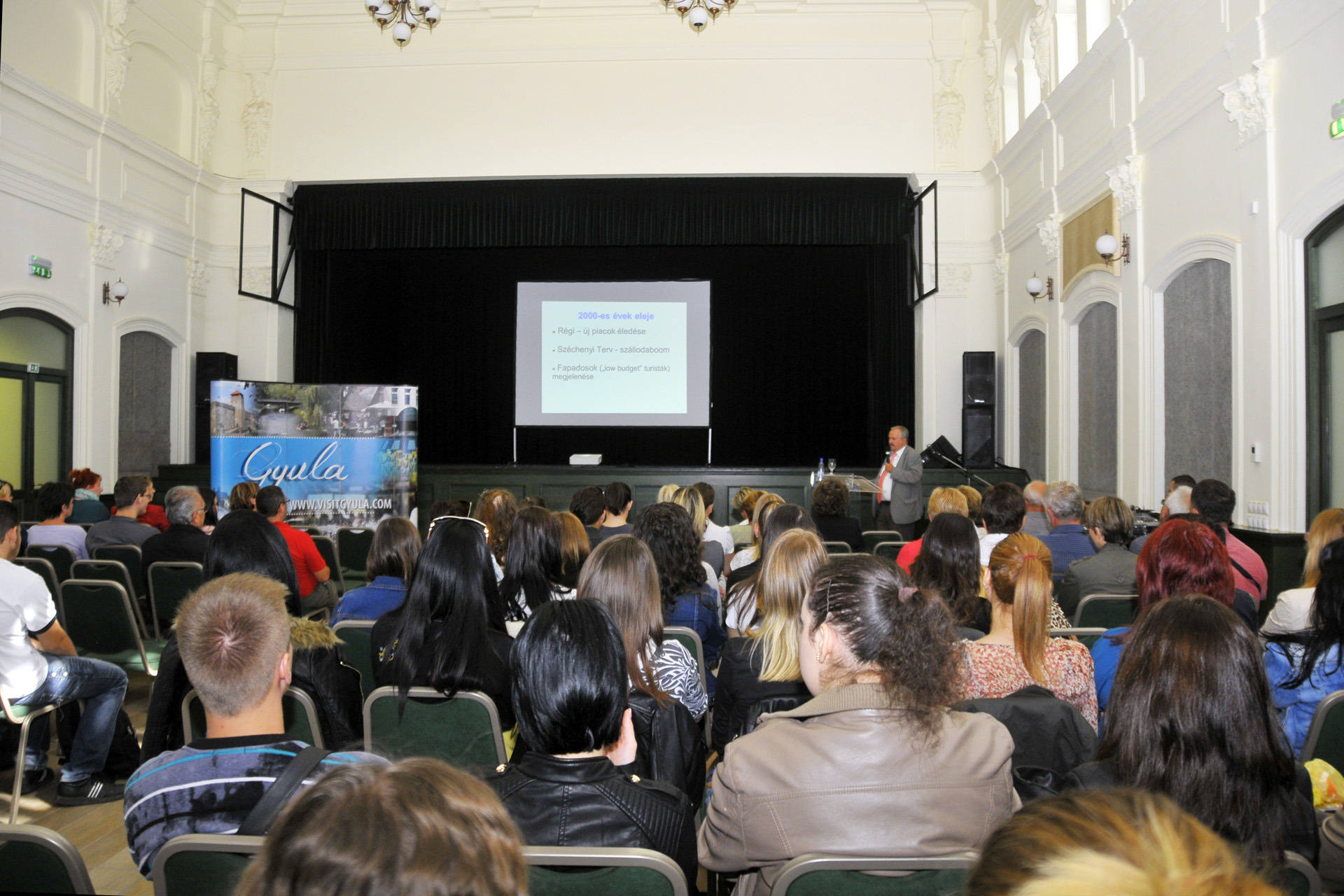A szakmai program során számos neves szakember tartott előadást a Vigadóban. Dr. Róna Iván turisztikai szakértő beszámolójában az új típusú desztinációkat elemezte a magyar turisztikában, és meghatározta a „turisztikai fogyasztói kosár” méretét is. Az idegenforgalmi szakközgazdász felvezetőjéből megtudtuk, a ’80-as években, az ún. szocialista beutazások korában egy éven keresztül lengyel turistákkal töltötte meg többek között Gyulát is.