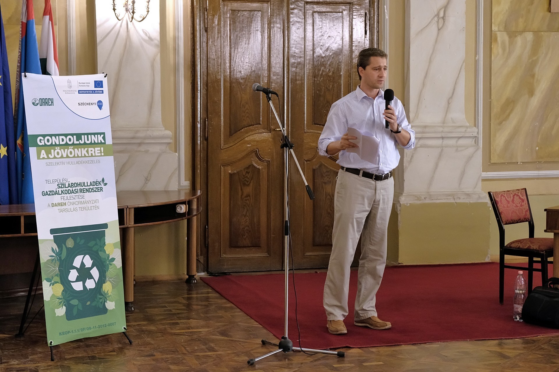 Szilágyi Csaba a jelenlévőknek elmondta, hogy a régi típusú hulladéklerakók 2009-es bezárása majd későbbi rekultivációja döbbentette rá arra a helyieket, hogy a hulladékot már nem elegendő összegyűjteni és elhelyezni, hiszen a hajdani hulladéklerakók, szeméttelepek nemcsak tájsebet ejtettek környezetünkben, hanem komoly környezeti kockázatot is hordoztak magukban. Jelenleg Magyarországon 40-45 hulladéklerakó működik már csak a hajdani 500-600-hoz képest. Tehát a cél már nem a lerakók kapacitásának bővítése, hanem a hulladék feldolgozása, újrahasznosítása. Ennek a megvalósítását tűzte ki célul a DAREH.