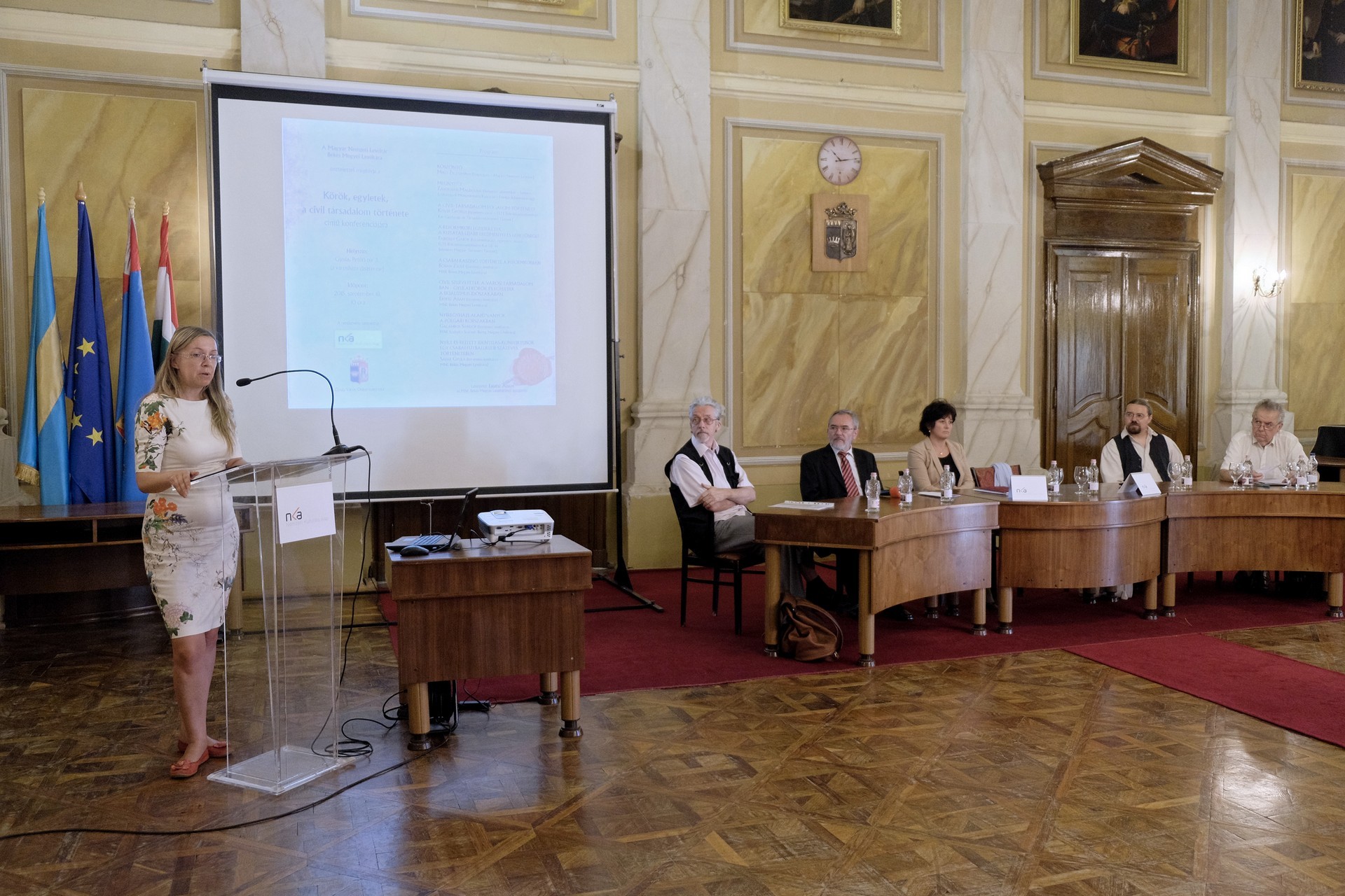 A későbbiekben a civil társadalom fogalomtörténetét ismertette Kövér György, az ELTE egyetemi tanára. Fontosnak tartotta elmondani, hogy a kifejezés tartalma a kora újkortól a jelenkorig átalakuláson ment át, hiszen korábban a politizáló társadalomra utalt, míg ma épp a nem politizálóra. Az előadást Pajkossy Gábor történetkutató, egyetemi oktató folytatta, ő a reformkori egyesületekről beszélt. Ezt követően Bódán Zsolt történész-levéltáros folytatta az előadók sorát, az ő témája a reformkori csabai kaszinó története volt.