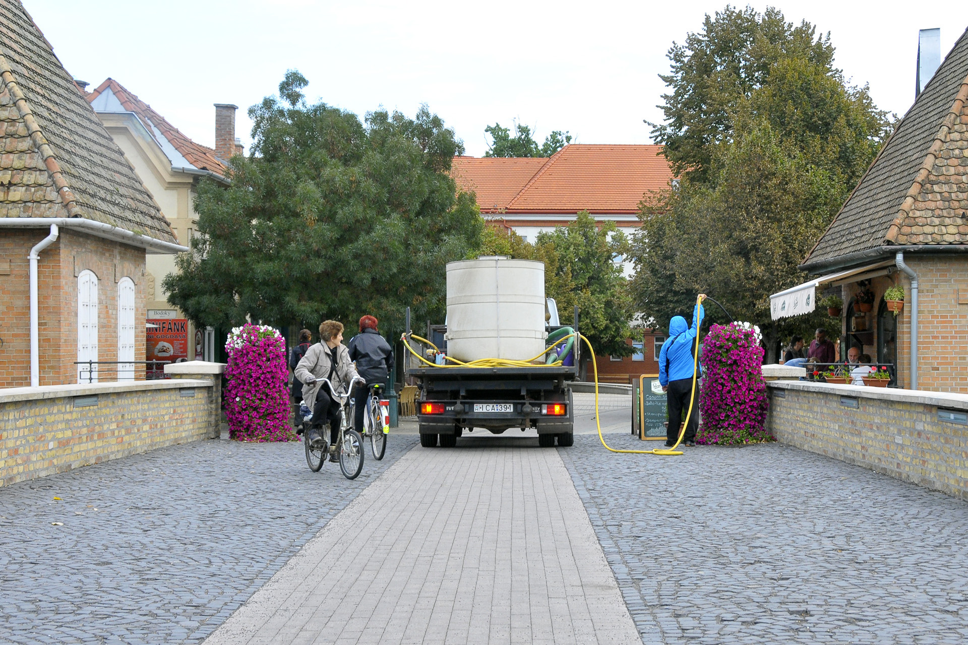 Locsolnak a Városház utcán