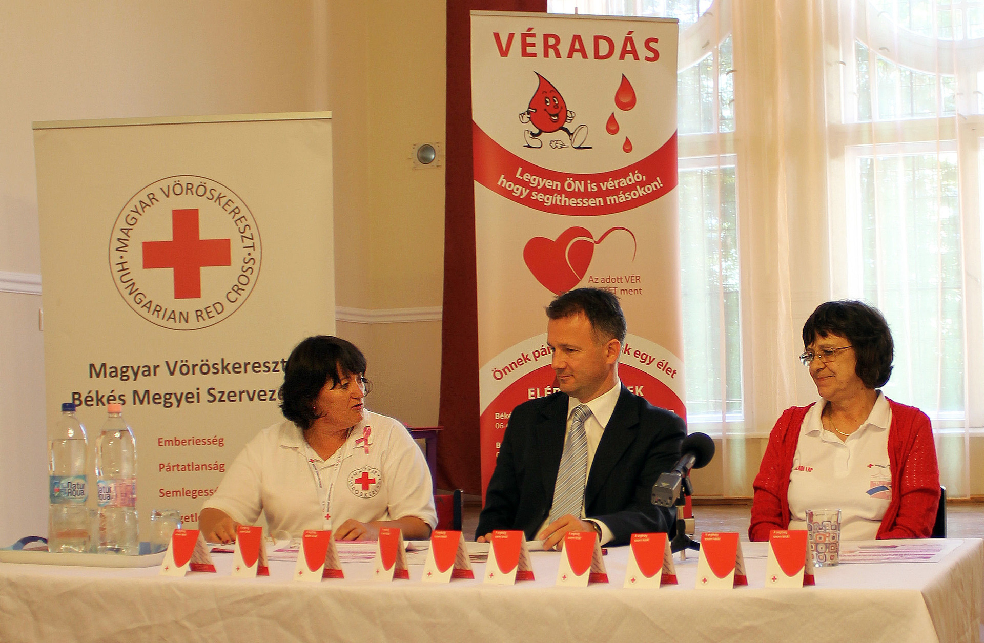 képünkön (balról jobbra): Tóth Zoltánné, a Magyar Vöröskereszt megyei igazgatója, dr. görgényi Ernő, gyula polgármestere és Dénesné Kereső Irén területi vezető