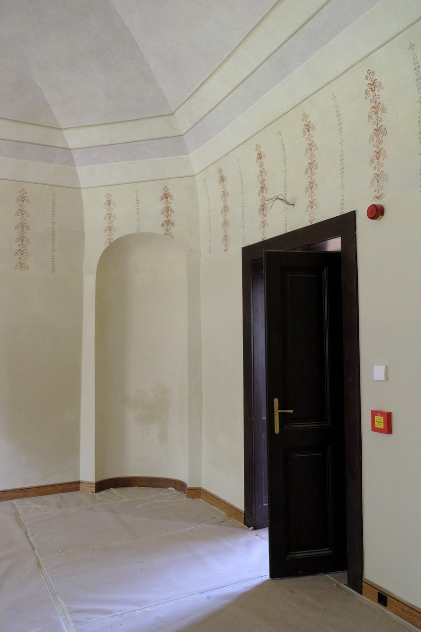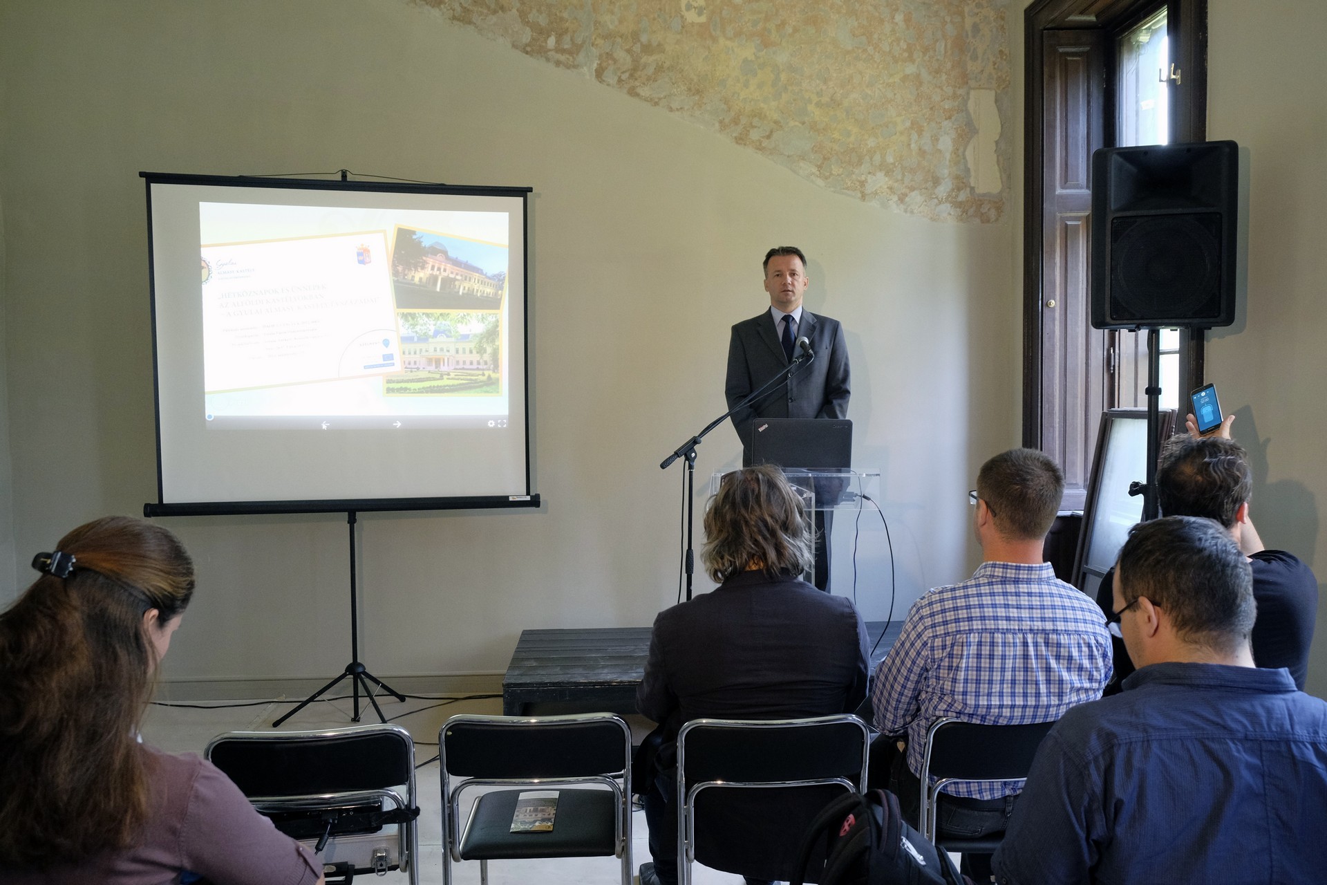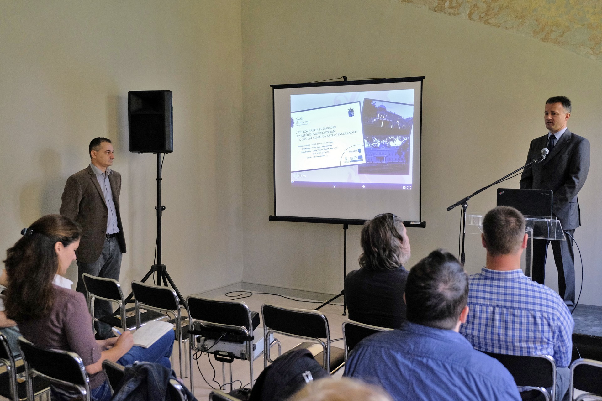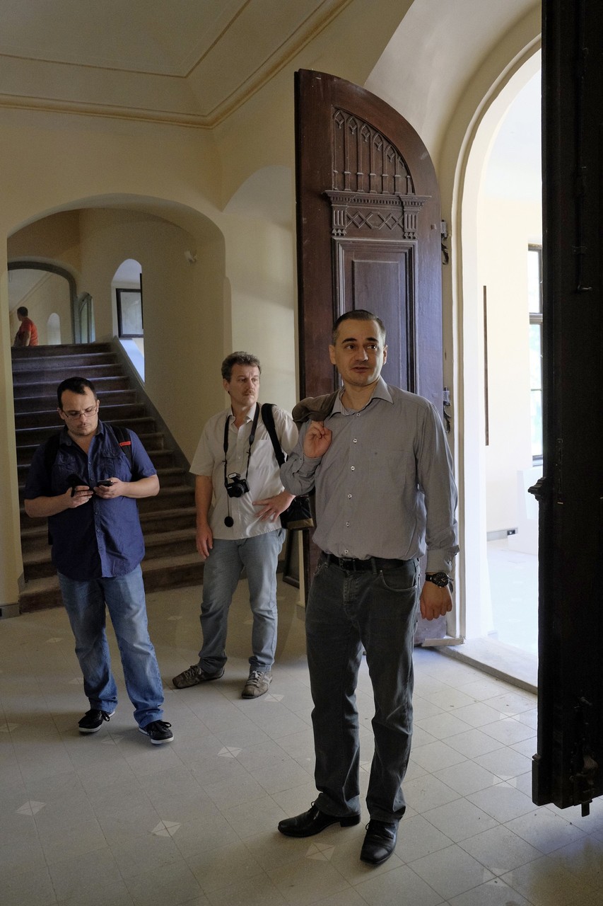 A köszöntő után a helyszín bejárását megelőzően dr. Virág Zsolt projektmenedzsertől megtudhattuk, hogy a felújítási munkálatok alapvető nehézségét valóban az épület állapota jelentette, hiszen a második világháború során annyira kifosztották azt, hogy alig maradt benne értékelhető információ, amiből munkájuk során kiindulhattak volna. Az épület eredeti képének hiteles visszaállítása érdekében annak múltjában végeztek kutatómunkát, így sikerült azt a tudásbázist összeollózniuk, ami később munkájuk alapját képezte és hozzásegítette a szakembereket a kastély turisztikai vonzerővé alakításához.