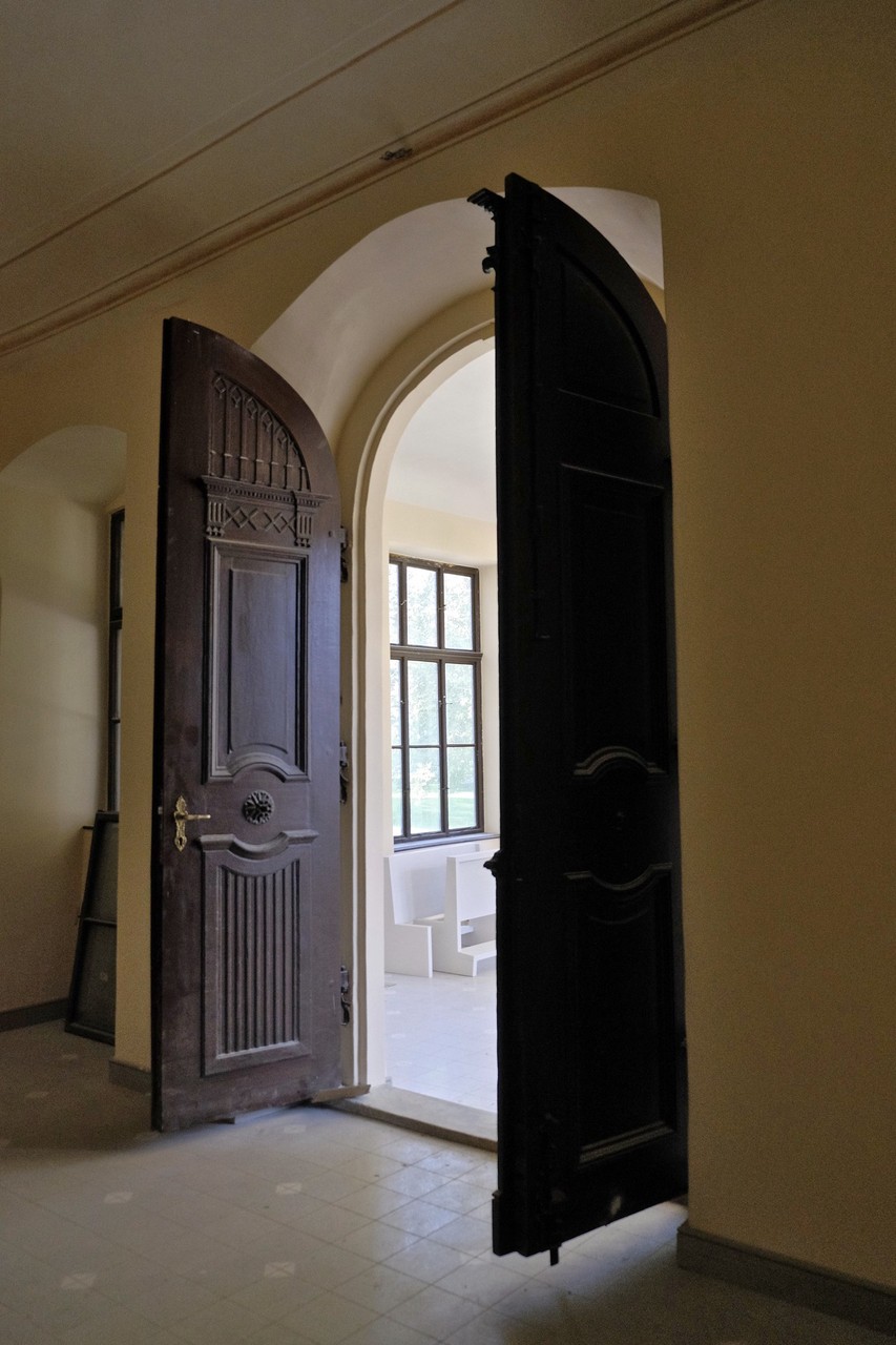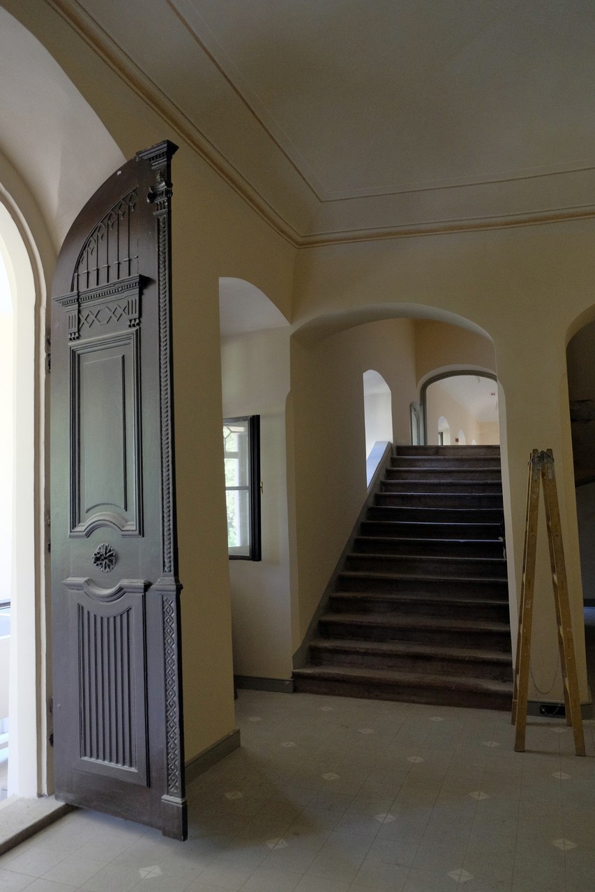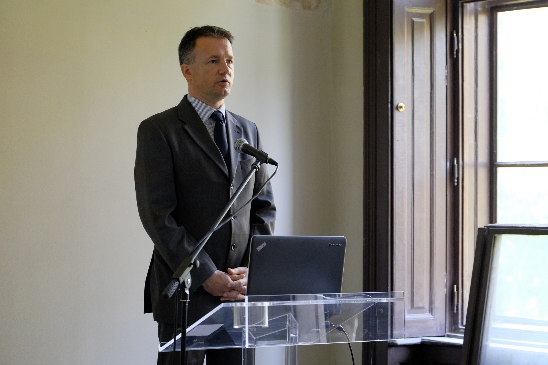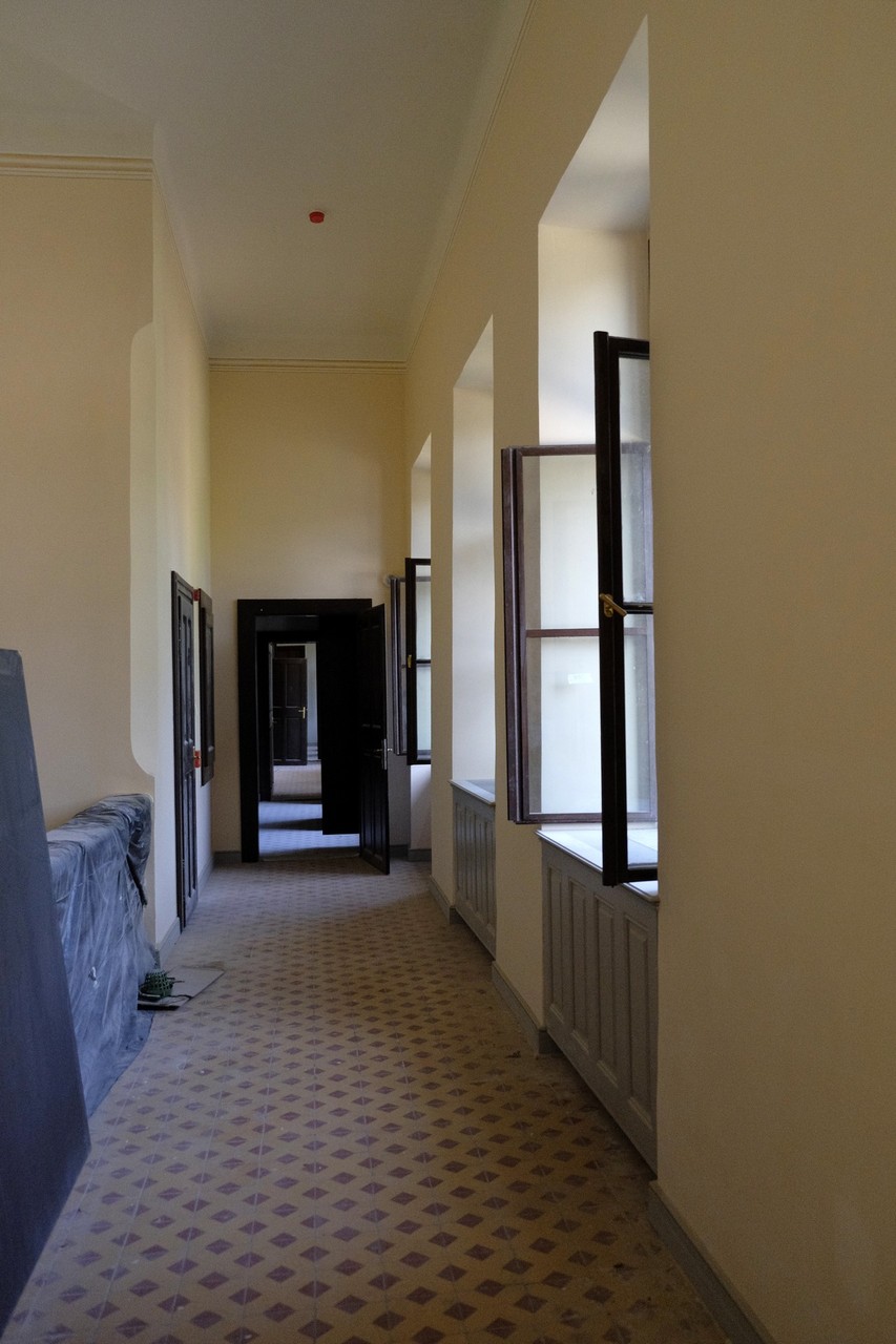 A köszöntő után a helyszín bejárását megelőzően dr. Virág Zsolt projektmenedzsertől megtudhattuk, hogy a felújítási munkálatok alapvető nehézségét valóban az épület állapota jelentette, hiszen a második világháború során annyira kifosztották azt, hogy alig maradt benne értékelhető információ, amiből munkájuk során kiindulhattak volna. Az épület eredeti képének hiteles visszaállítása érdekében annak múltjában végeztek kutatómunkát, így sikerült azt a tudásbázist összeollózniuk, ami később munkájuk alapját képezte és hozzásegítette a szakembereket a kastély turisztikai vonzerővé alakításához.