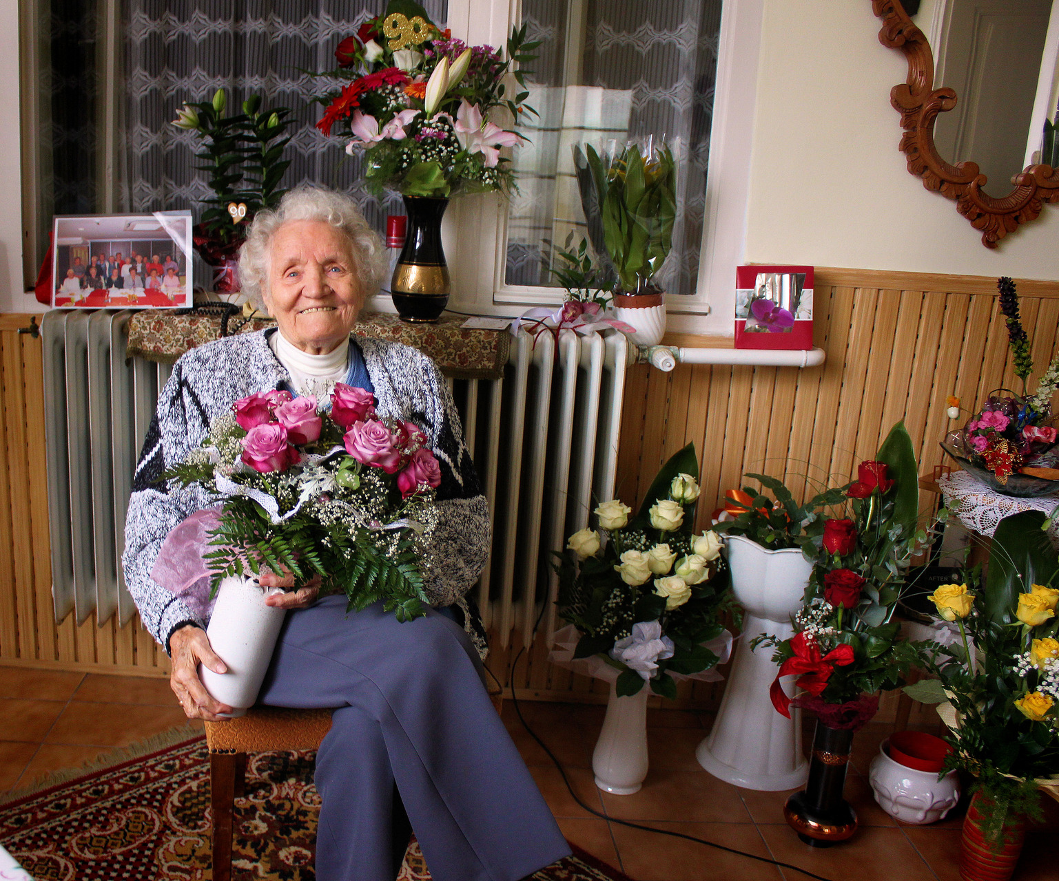 A kilencvenedik születésnapját ünneplő Kempf Mártonné