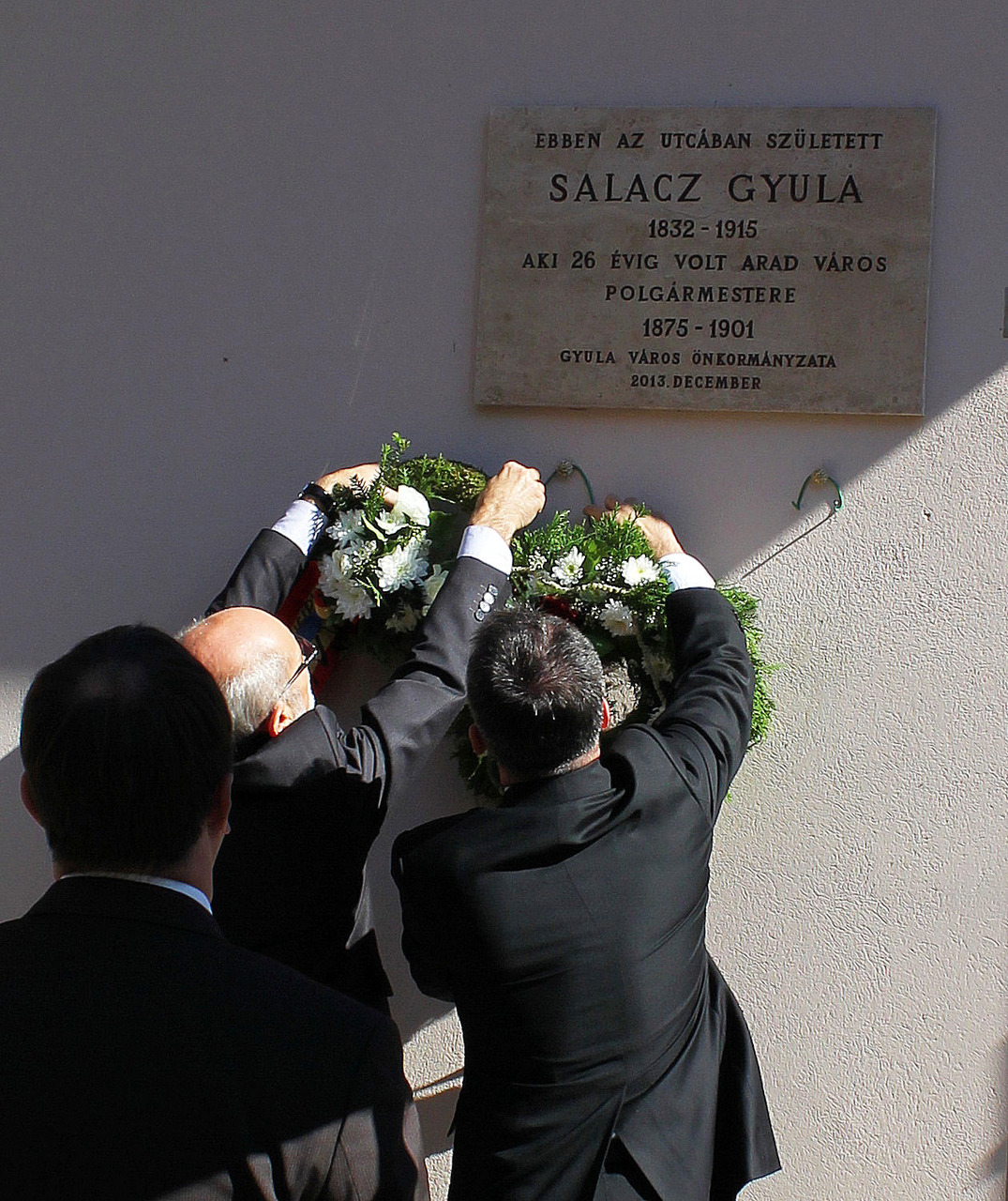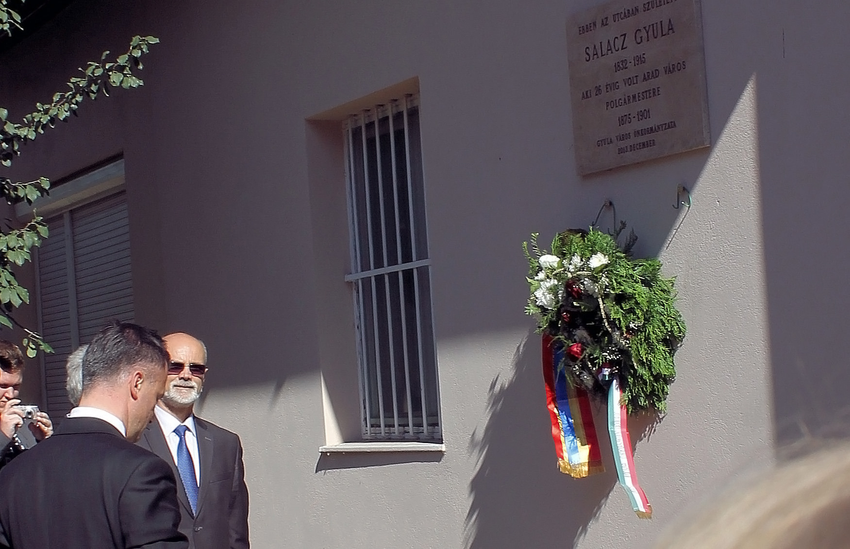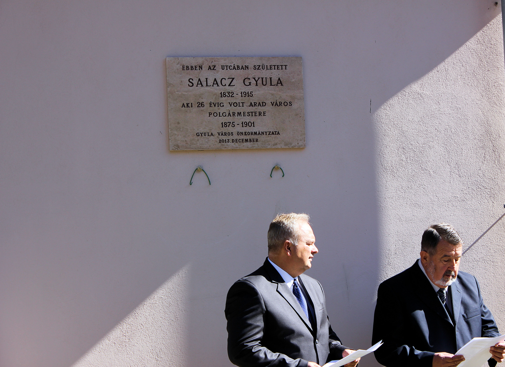 A gyulai ünnepség narrátora Bagyinszki Zoltán volt, rendezője pedig Gyula VárosÖnkormányzata és az Arad–Gyula Kapcsolataiért Egyesület. Elsőként beszéddel készült Durkó Károly, a Gyulai Városbarátok Körének elnöke, az Arad és Gyula Kapcsolataiért Egyesület tagja. A képviselő kiemelte, Salacz Gyula vezetése alatt Arad városa úgy volt képes törleszteni adósságait, hogy a közterhek közben nem növekedtek, ezért kifejezetten eredményes városvezetőként tartották számon. Az ő ösztönzésére készült el Arad első modern kori térképe, ami mai szemmel turisztikai attrakciónak nevezhető.