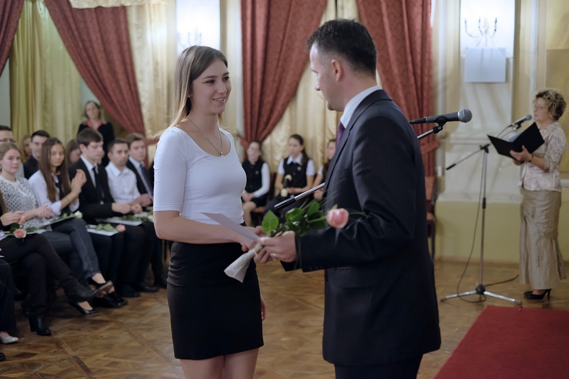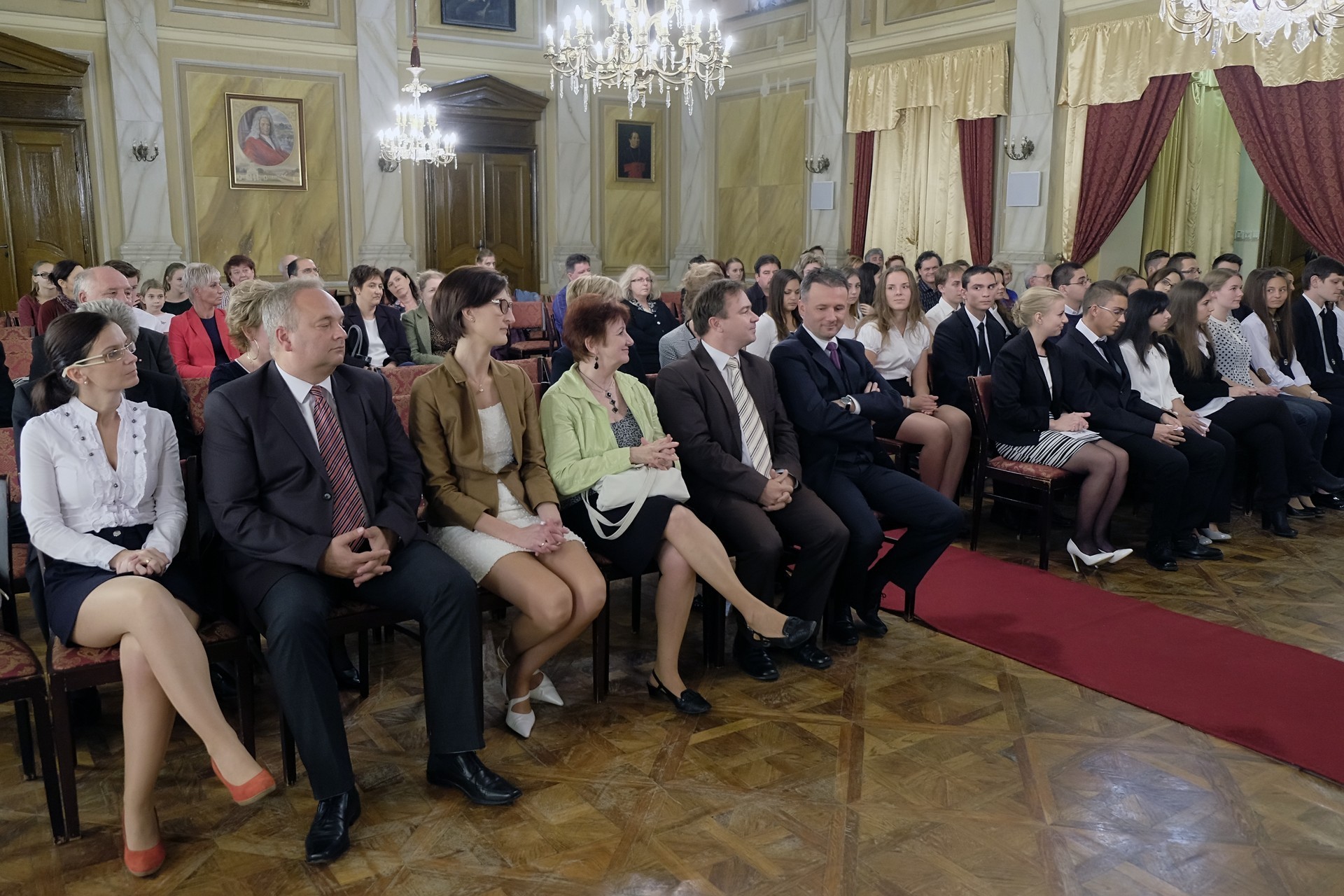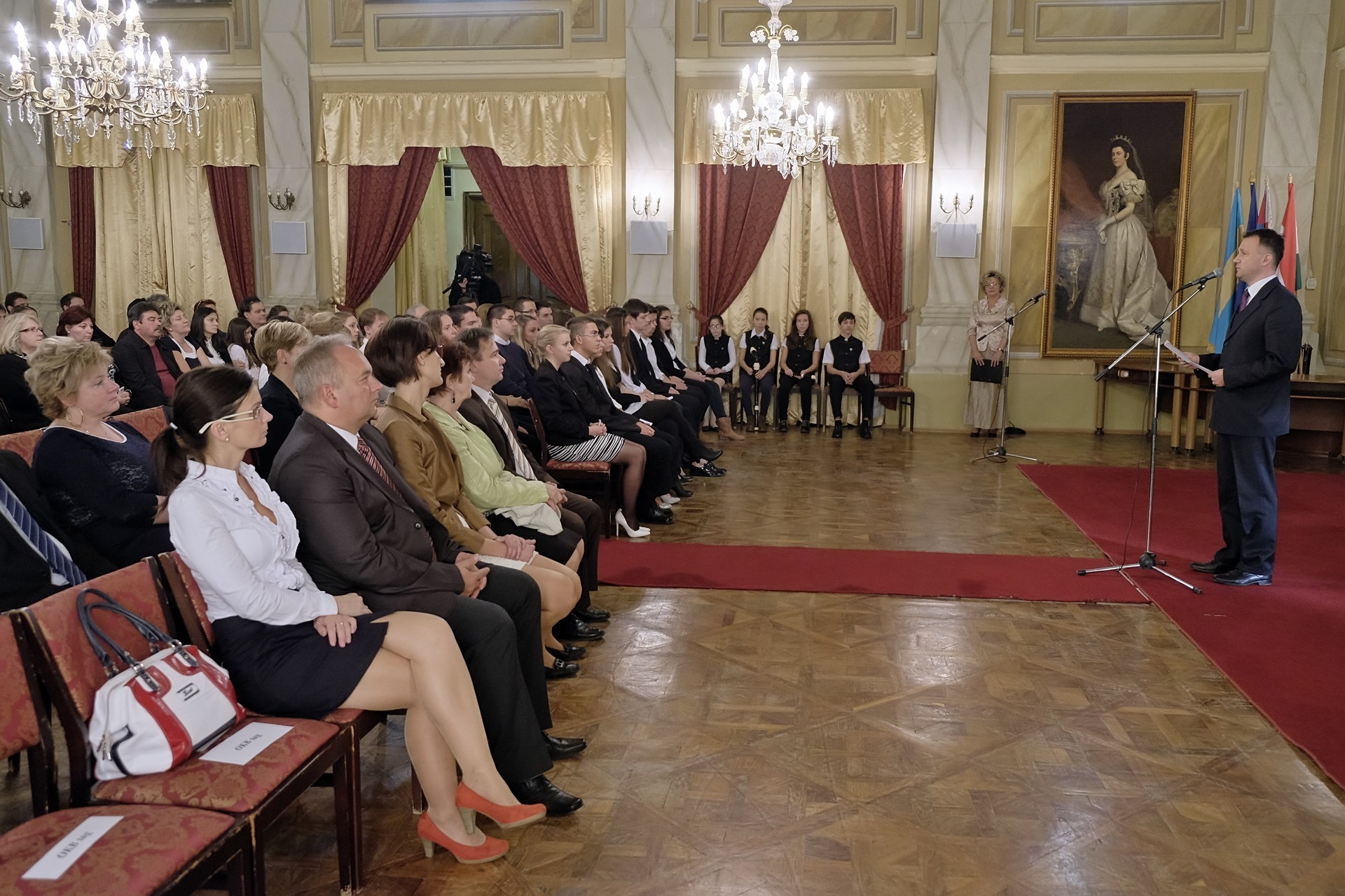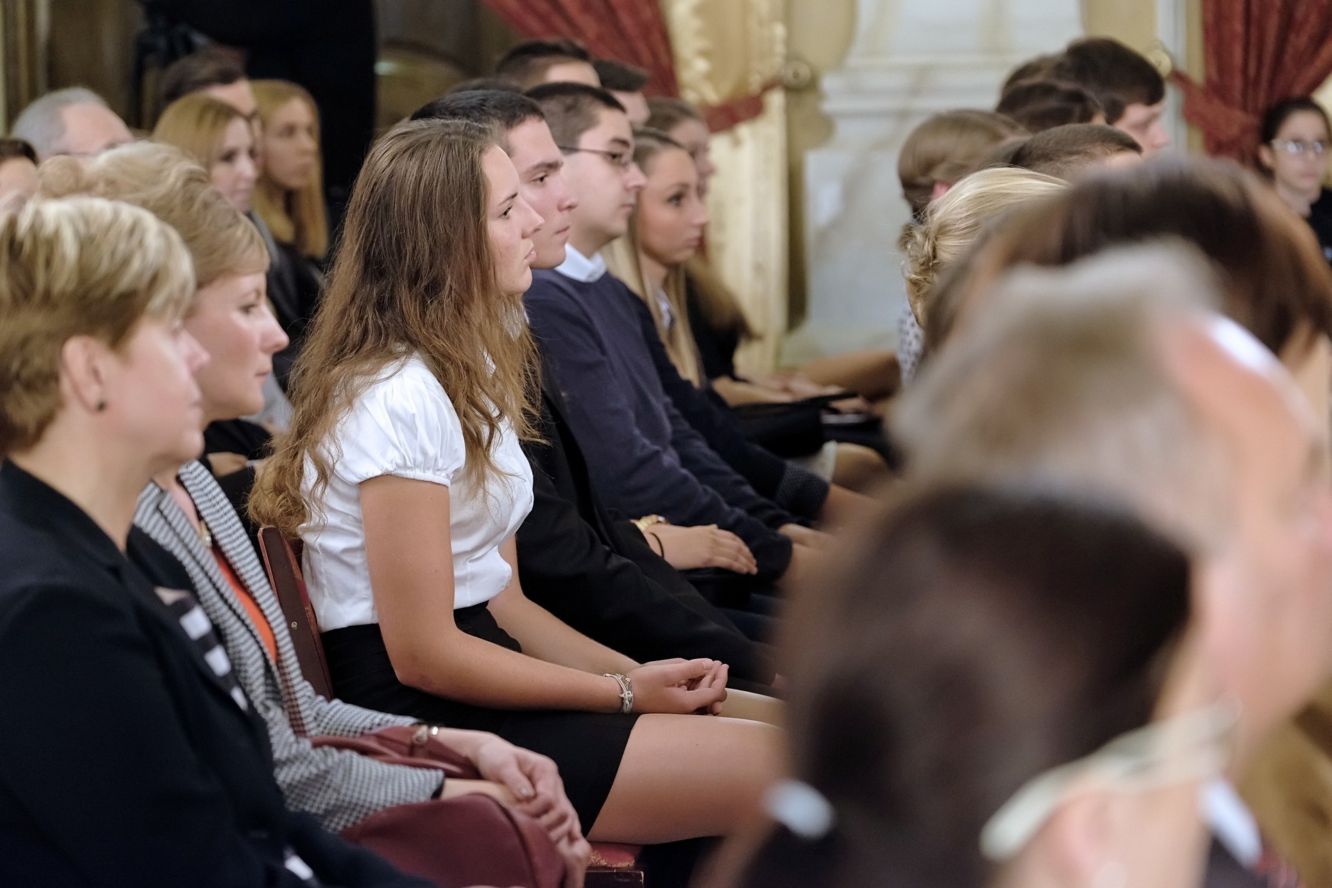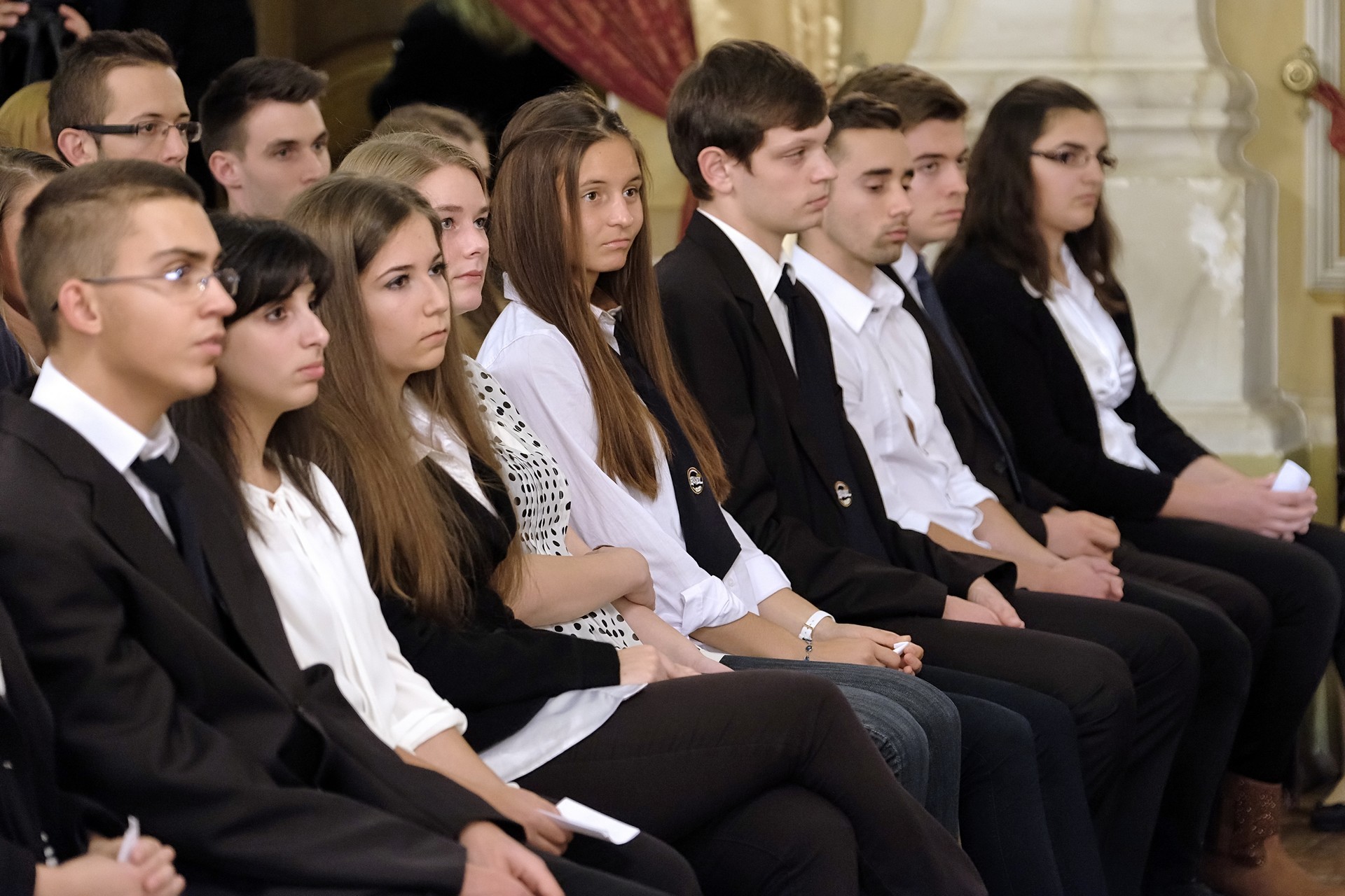 a bay-ösztöndíjasok a gyulai városháza dísztermében