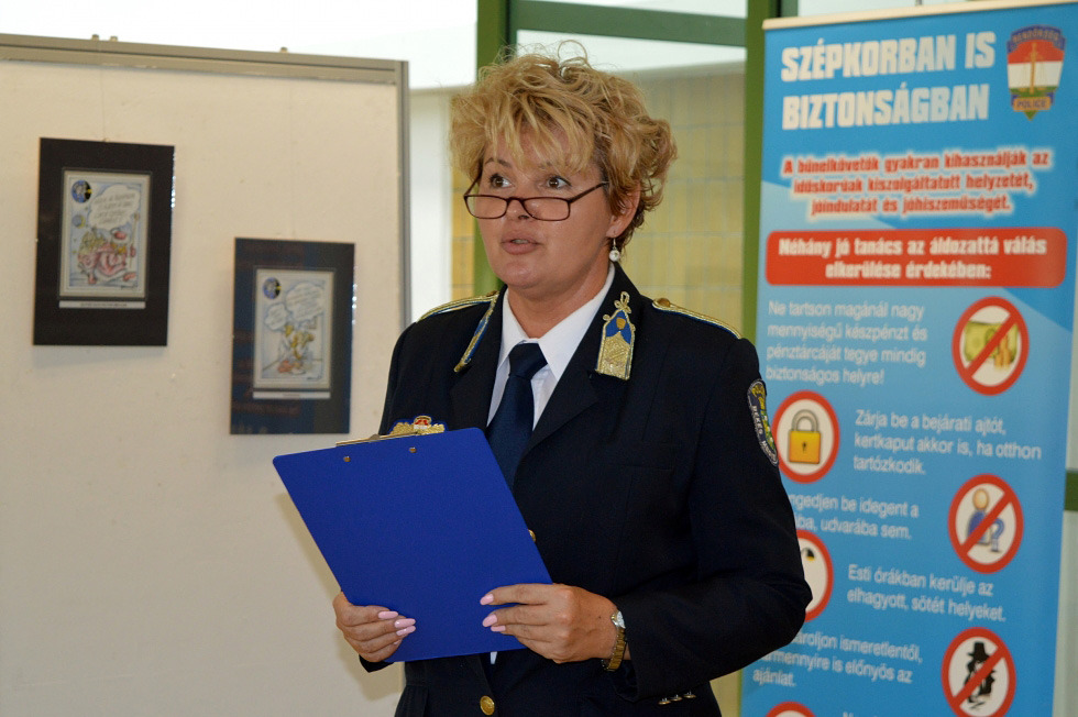 A Békés Megyei Rendőr-főkapitányság Bűnmegelőzési Osztálya minden évben különböző programokkal készül október 1-jére, az idősek világnapjára. Az idős emberek fokozott figyelmet igényelnek – hangsúlyozta Telekné Furák Mónika rendőr alezredes, bűnmegelőzési osztályvezető a Békés Megyei Könyvtárban október 1-jén Boros Béla karikaturista munkáiból nyílt kiállítás megnyitóján.