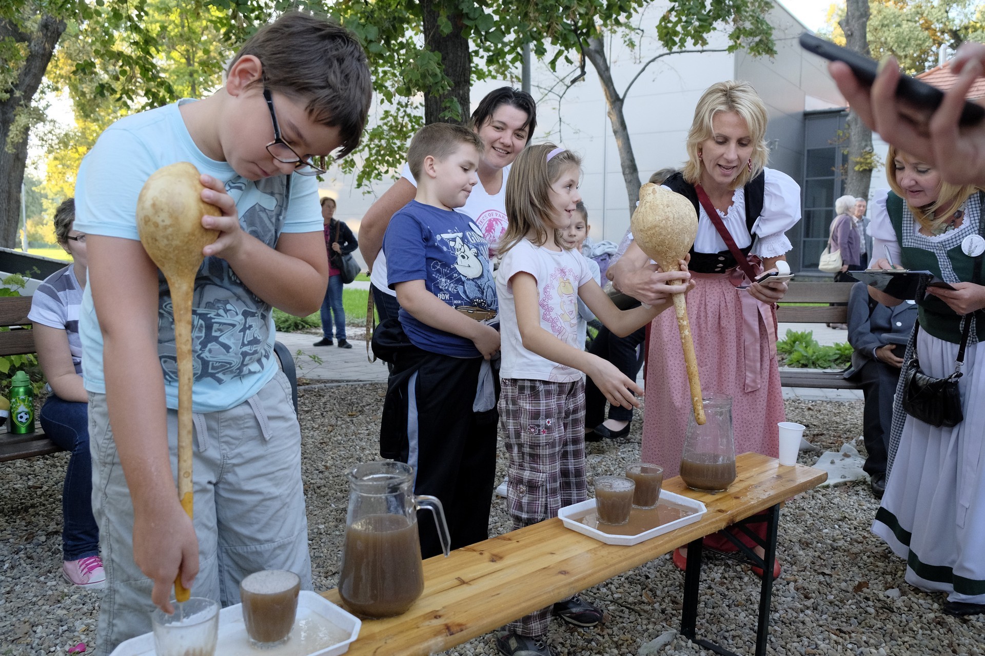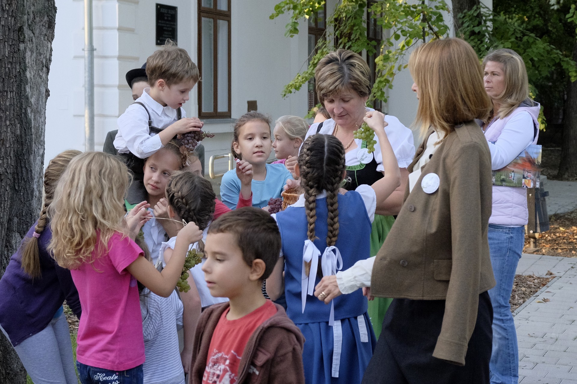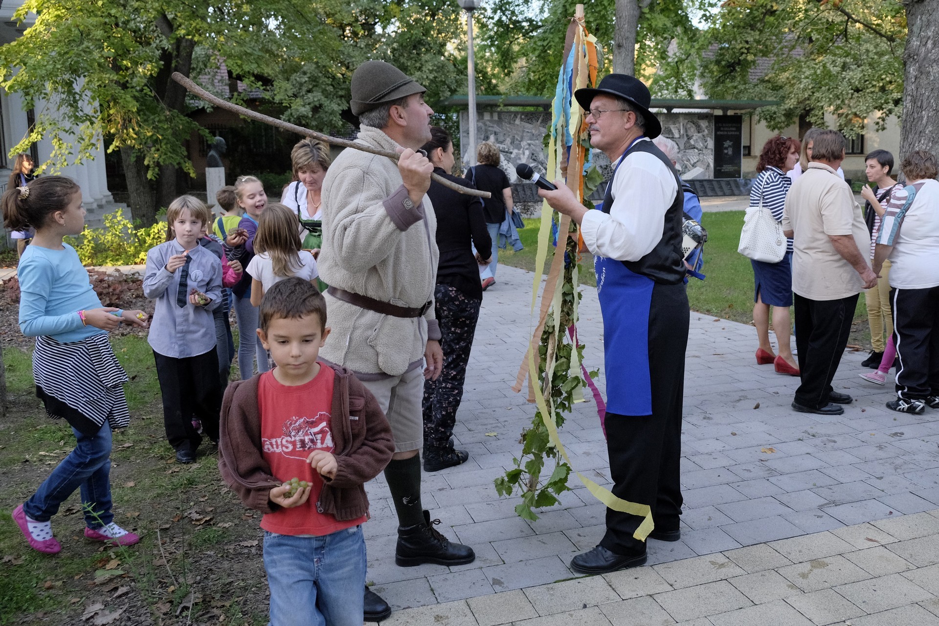 A mulatságban gazdag programkavalkád napnyugtával a Vigadó épületében folytatódott, 18.30-tól a szüreti bálra érkező mintegy 260 vendéget – jó házigazda módjára – pálinkával, pogácsával fogadták a népviseletbe öltött szervezők.
