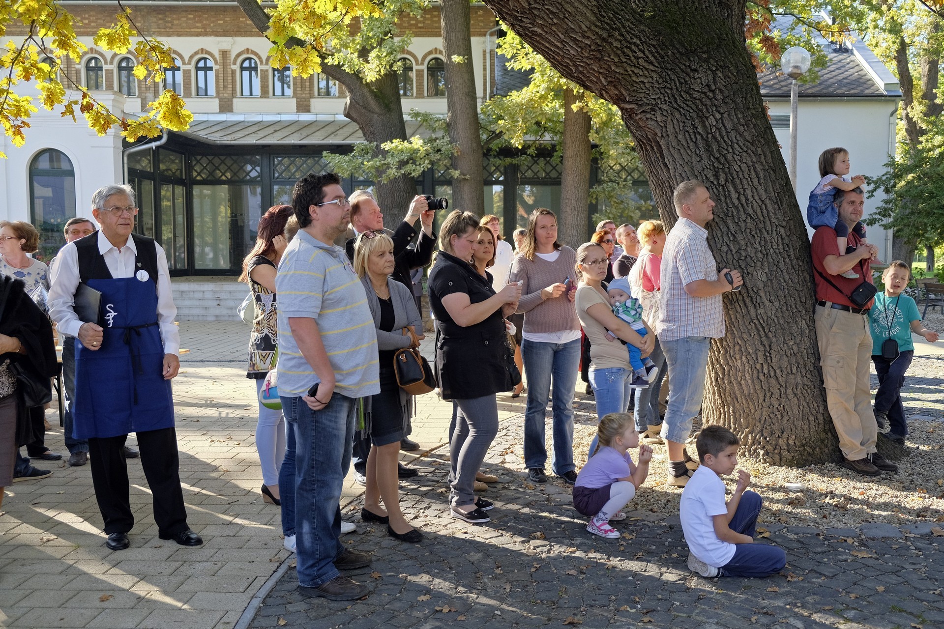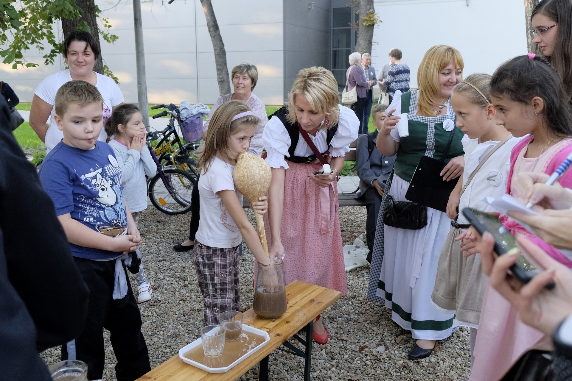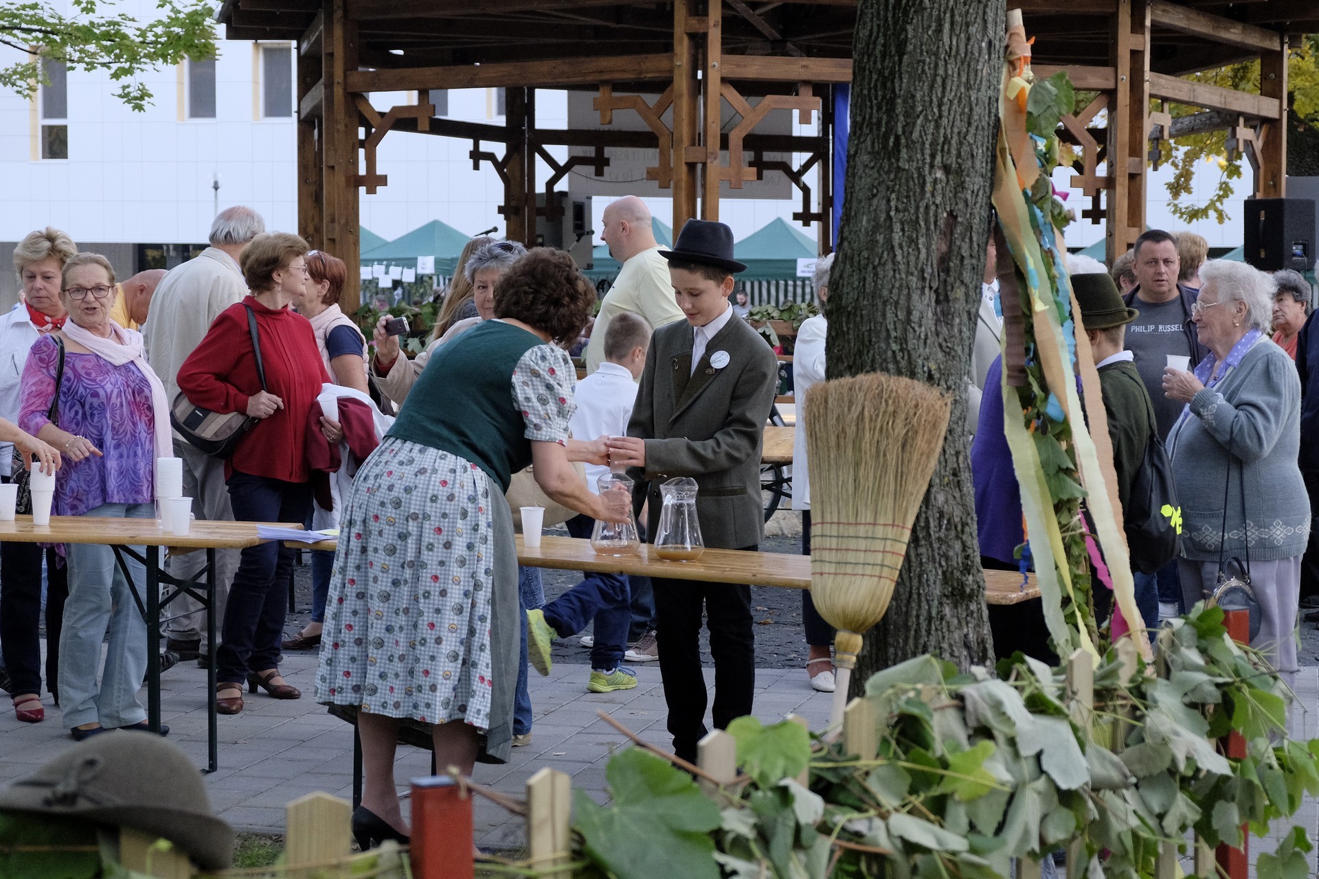 A mulatságban gazdag programkavalkád napnyugtával a Vigadó épületében folytatódott, 18.30-tól a szüreti bálra érkező mintegy 260 vendéget – jó házigazda módjára – pálinkával, pogácsával fogadták a népviseletbe öltött szervezők.