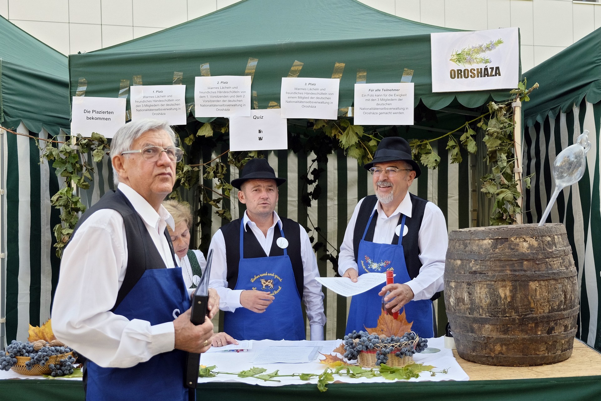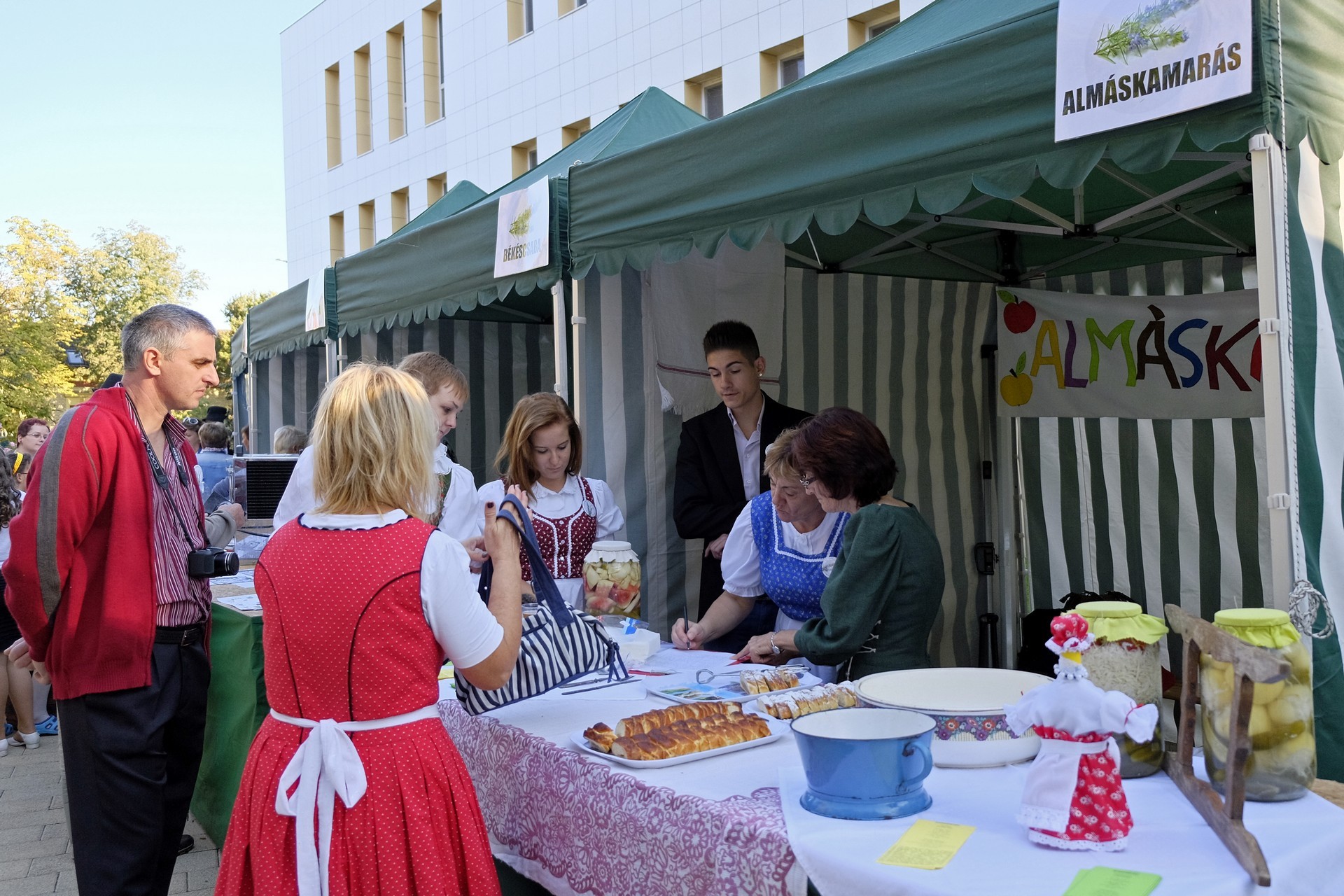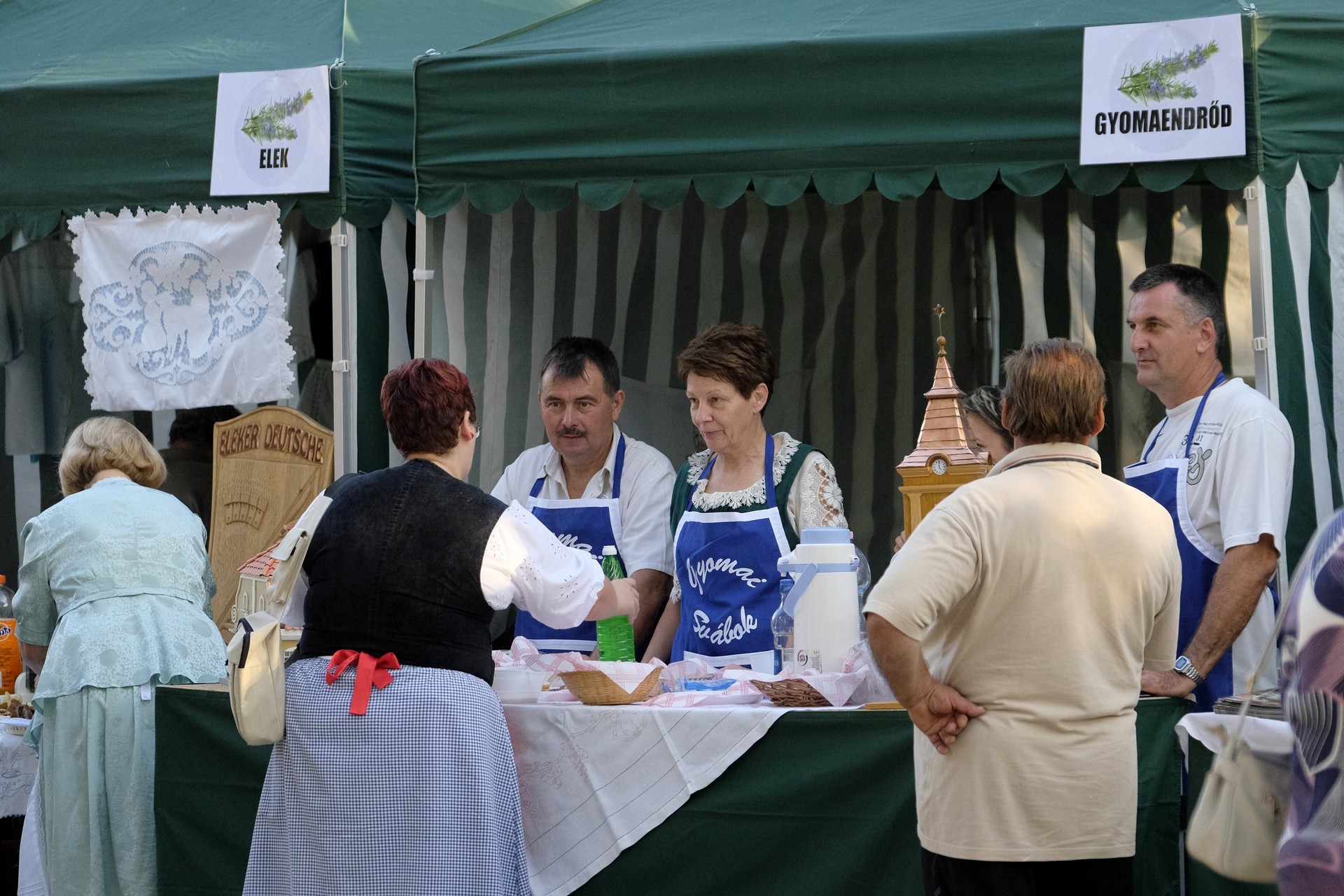 Szőlőktől, őszi finomságoktól és ínycsiklandó sváb specialitásoktól roskadoztak az egymás mellé felsorakoztatott standok pultjai, melyeknél a Békés Megyei Németek Anyanyelvi és Kulturális Napjára érkezett települések képviseltették magukat. A gyomaendrődiek egy savanyított húsétellel készültek, az almáskamarási német nemzetiségi önkormányzat tagjai pedig több mint 300 adag sváb módra készített rétest kínáltak az érdeklődőknek. Mellettük a Békésről, Békéscsabáról, Elekről, Gyomaendrődről, Kétegyházáról, Mezőberényből, Orosházáról és Vésztőről érkezett kiállítók is feltárták nemzetiségi színeiknek, ízeiknek kincses kavalkádját.