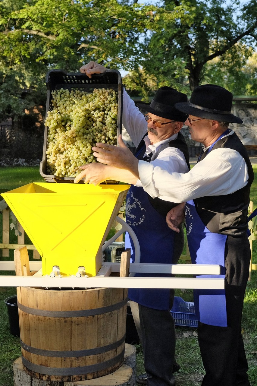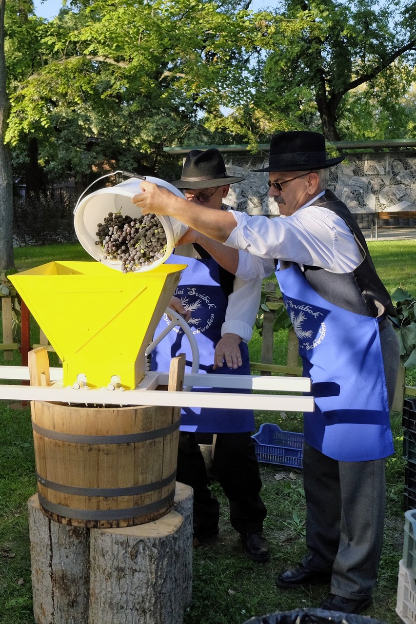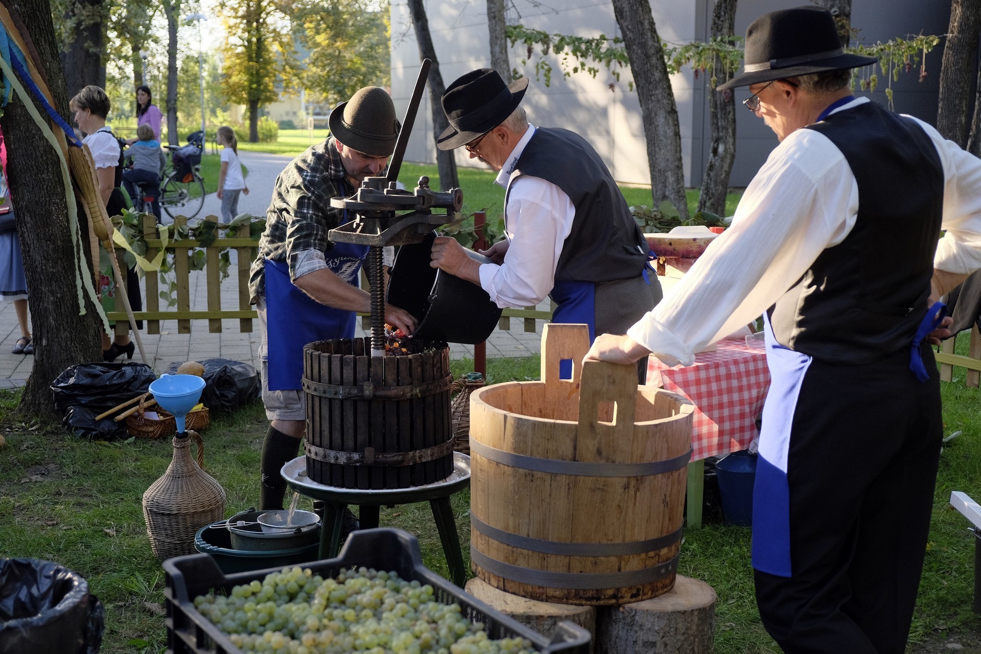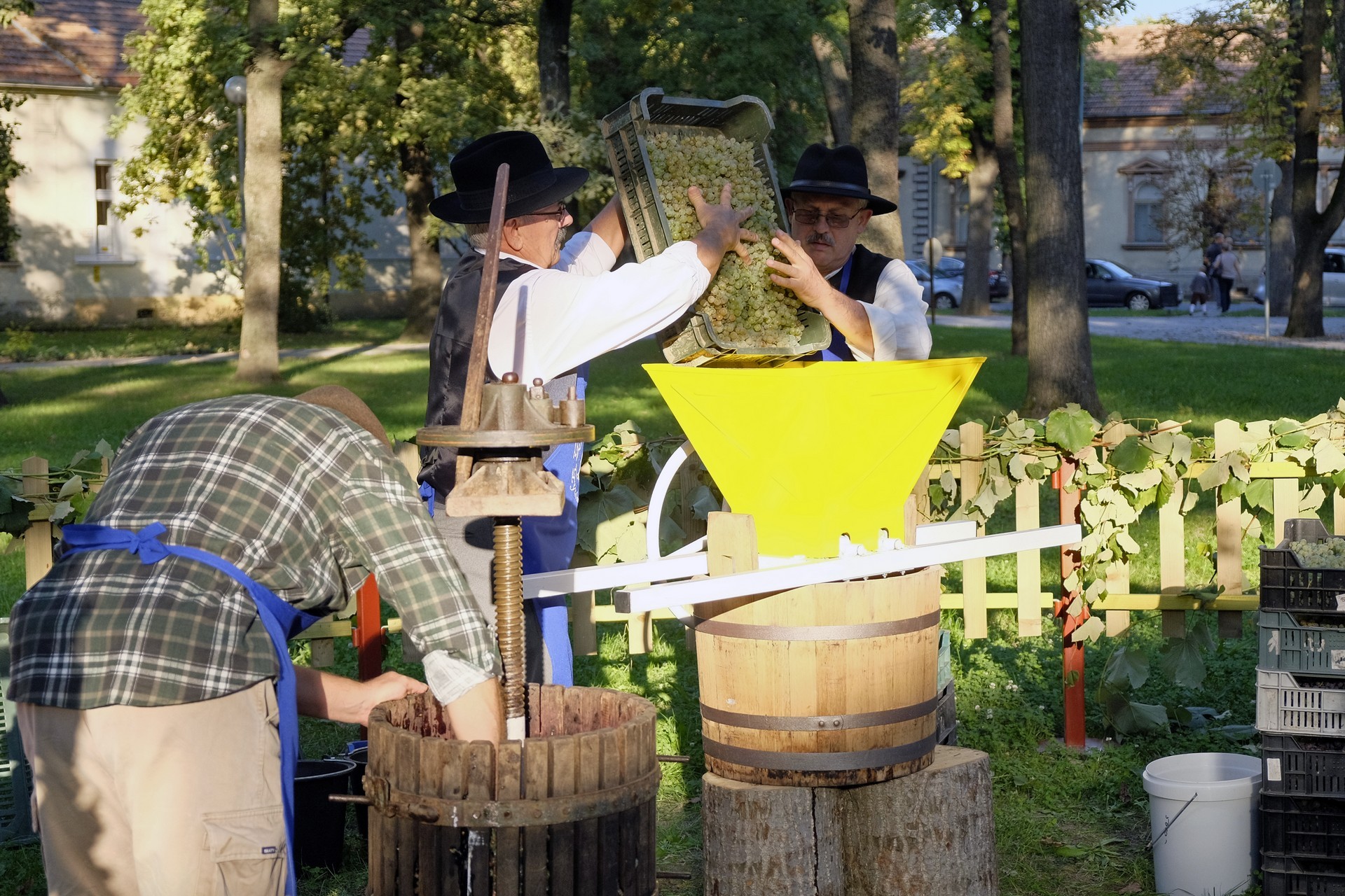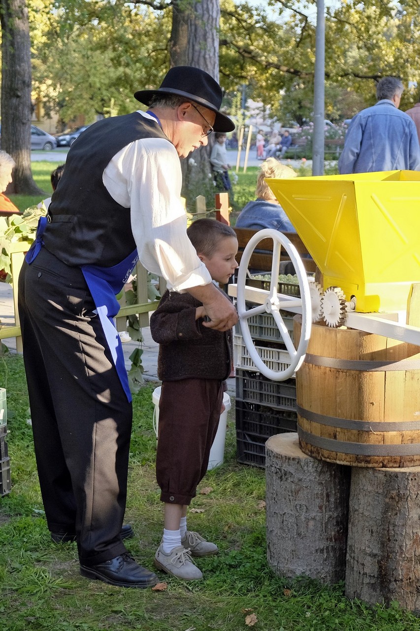 Mialatt a pavilonban egymást váltó műsorokat a térkő sörpadjain üldögélve figyelte a lakosság, a Göndöcs-kert többi pontján is javában folyt az élet. Néhány méterrel arrébb, a szőlőlevelekkel borított, léckerítéssel elkülönített területen bemutató jelleggel hagyományos módszerekkel préselték a szőlőt, és töltötték kannákba annak édes nedűjét. A nagy szakértelemmel végzet munkafolyamatba olykor már a legifjabb generáció is beszállt, melynek tagjai egyúttal már a lopótökből történő felszívást és kitöltést is gyakorolhatták.