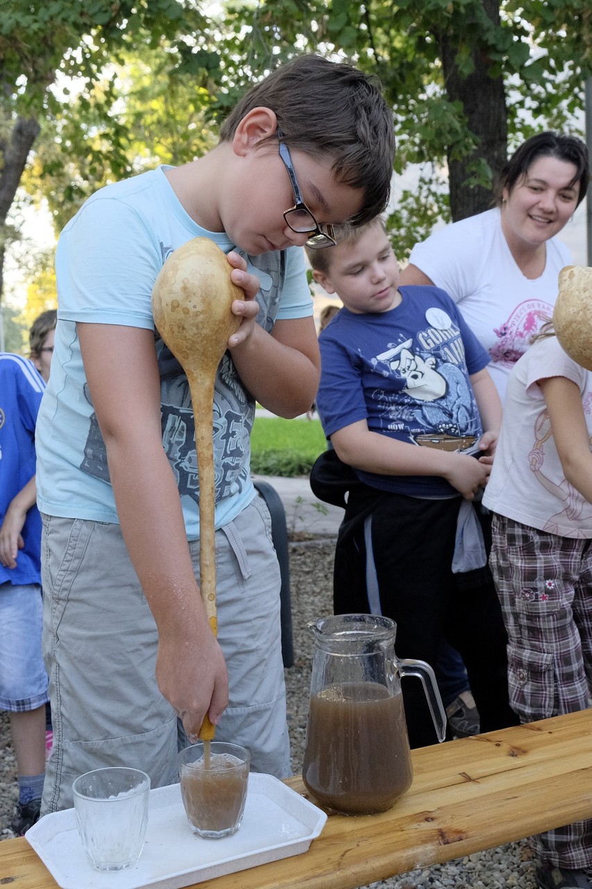 A felnőttek borivó versenyen és borkóstoláson vehettek részt, a legkisebbeknek pedig népi játékok elevenedtek meg a Kohán Képtár mellett. A gyerekek a fák közé függesztett „lugasokról” szőlőt csenhettek (olykor némi szülői segítséggel), méghozzá úgy, hogy mindezt a környéken ólálkodó szigorú csősz lehetőleg ne lássa meg. Azonban aki így nem járt sikerrel, annak kis kosárkából kínálták a pompás fürtöket a gyulai német háziasszonyok.