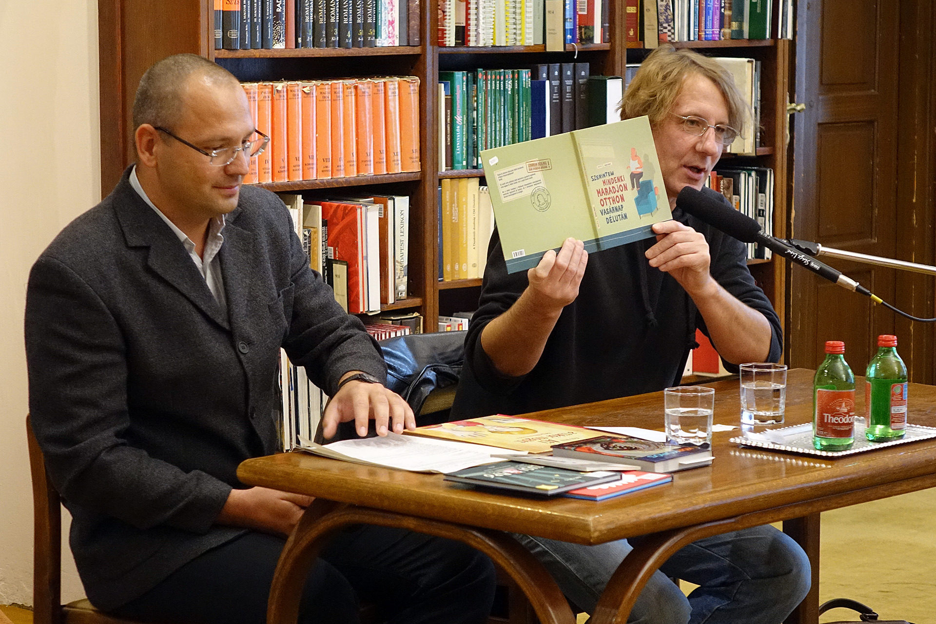 A díjátadásokat követően a gyulai Kiss Ottó József Attila-díjas költővel, íróval két új kötete, az Ati a tükör mögött és a Szerintem mindenki maradjon otthon vasárnap délután címűek kapcsán Fodor György tanár beszélgetett.
