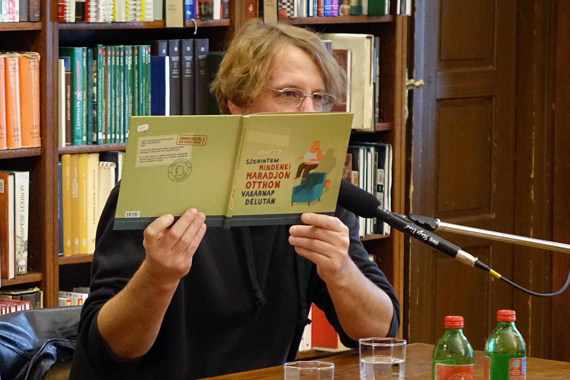 Az Ati a tükör előtt című könyv már a harmadik kötet Atiról, az előző köteten Ati is repült, mert ez volt a címe: Ati repülni tanul. A Szerintem mindenki maradjon otthon vasárnap délután című könyvének ez már a második kiadása. Amikor 2006-ban először megjelent Baranyai András illusztrációival több helyen azt mondták, hibás könyv, nem is árusították. Aztán később, mert nagy volt a kereslett iránta, mind elfogyott, Baranyai András pedig elnyerte az év könyvillusztrátora címet. Tehát gyakran vannak furcsaságok az irodalom körül.