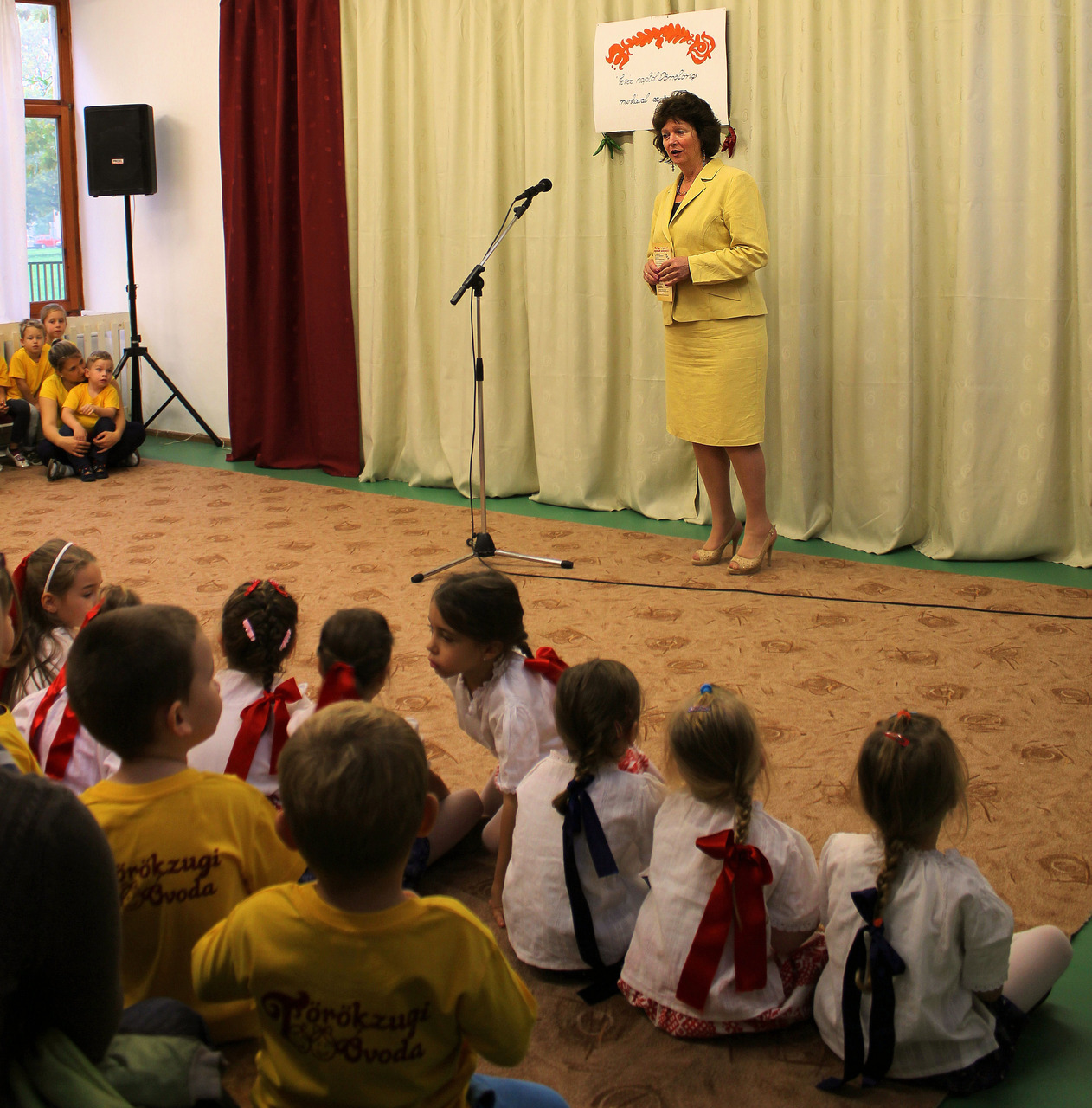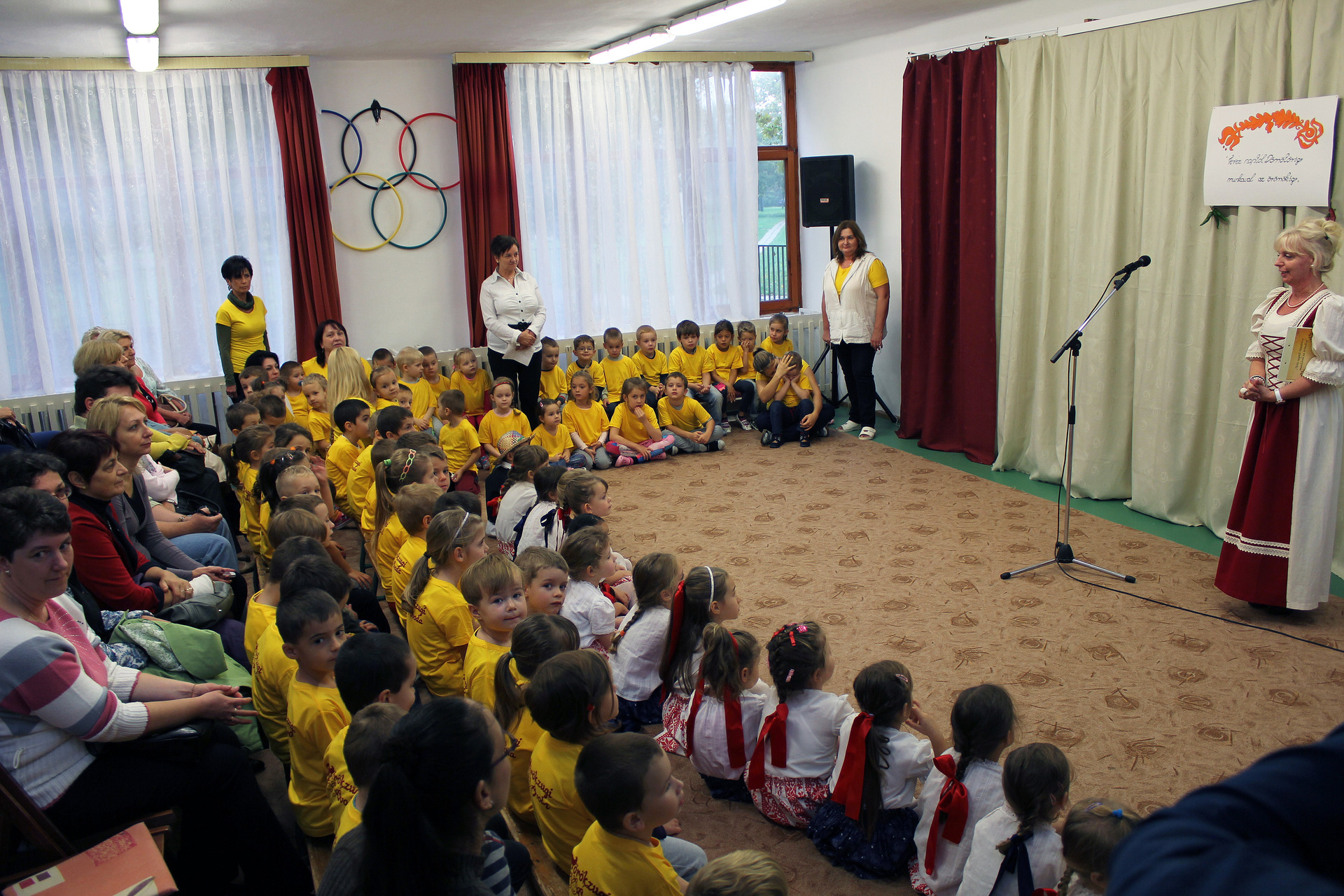 Őt Szilágyiné Solymosi Mária intézményvezető köszöntője követte, aki elmondta, ennek a rendezvénynek több célja van. Először is arra hivatott, hogy bemutassa, mit tanultak eddig a gyerekek az óvodában, emellett megismerkedhetnek népi eszközökkel, hangszerekkel és a magyar népzenével. Mindezeken túl a családokkal való összefogás is megvalósul a rendezvény által, mert az óvodában a hét minden délutánjára családi programokat is szerveztek.