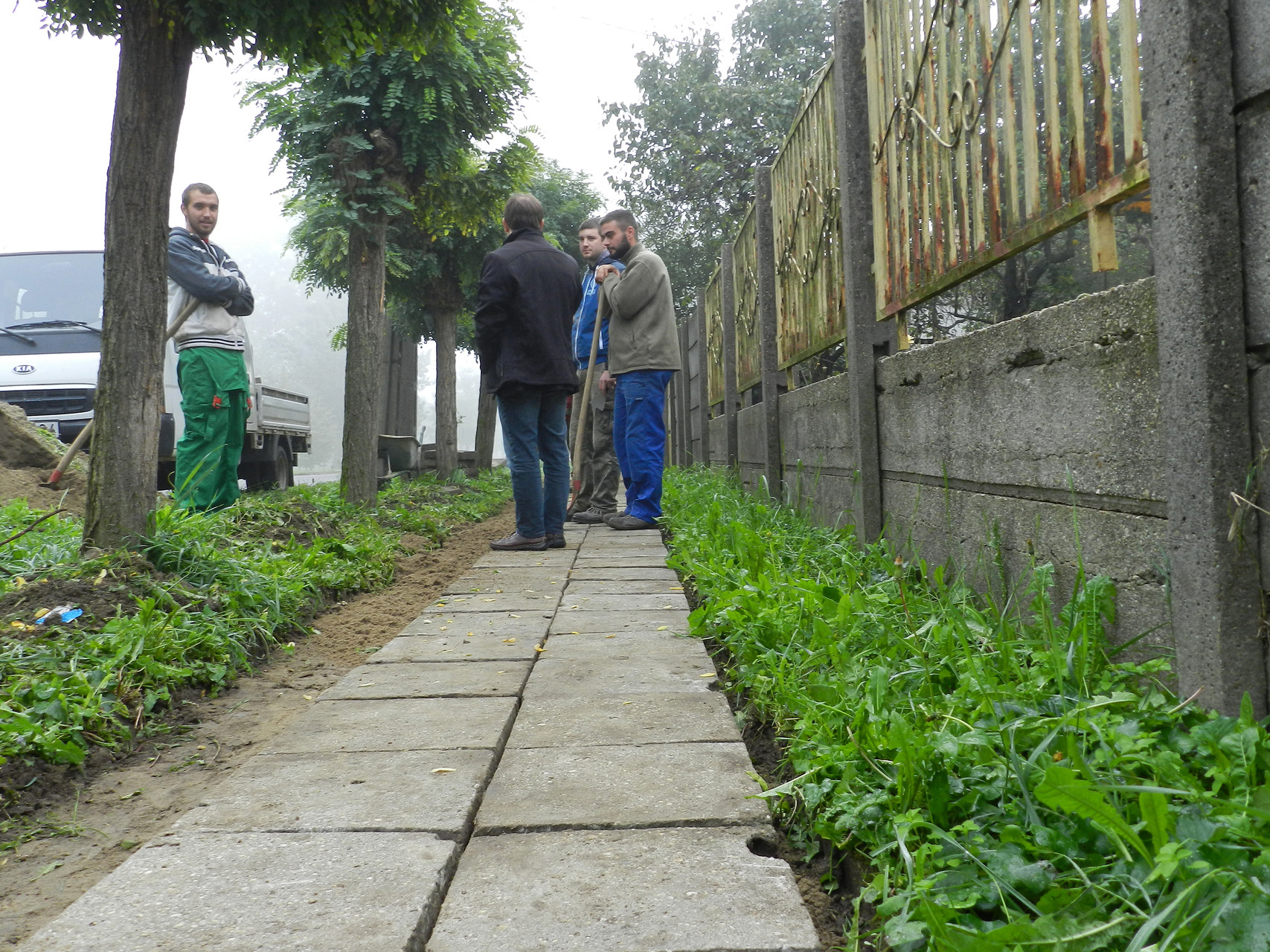 a pósteleki utcában új beton járdalapokat raktak le