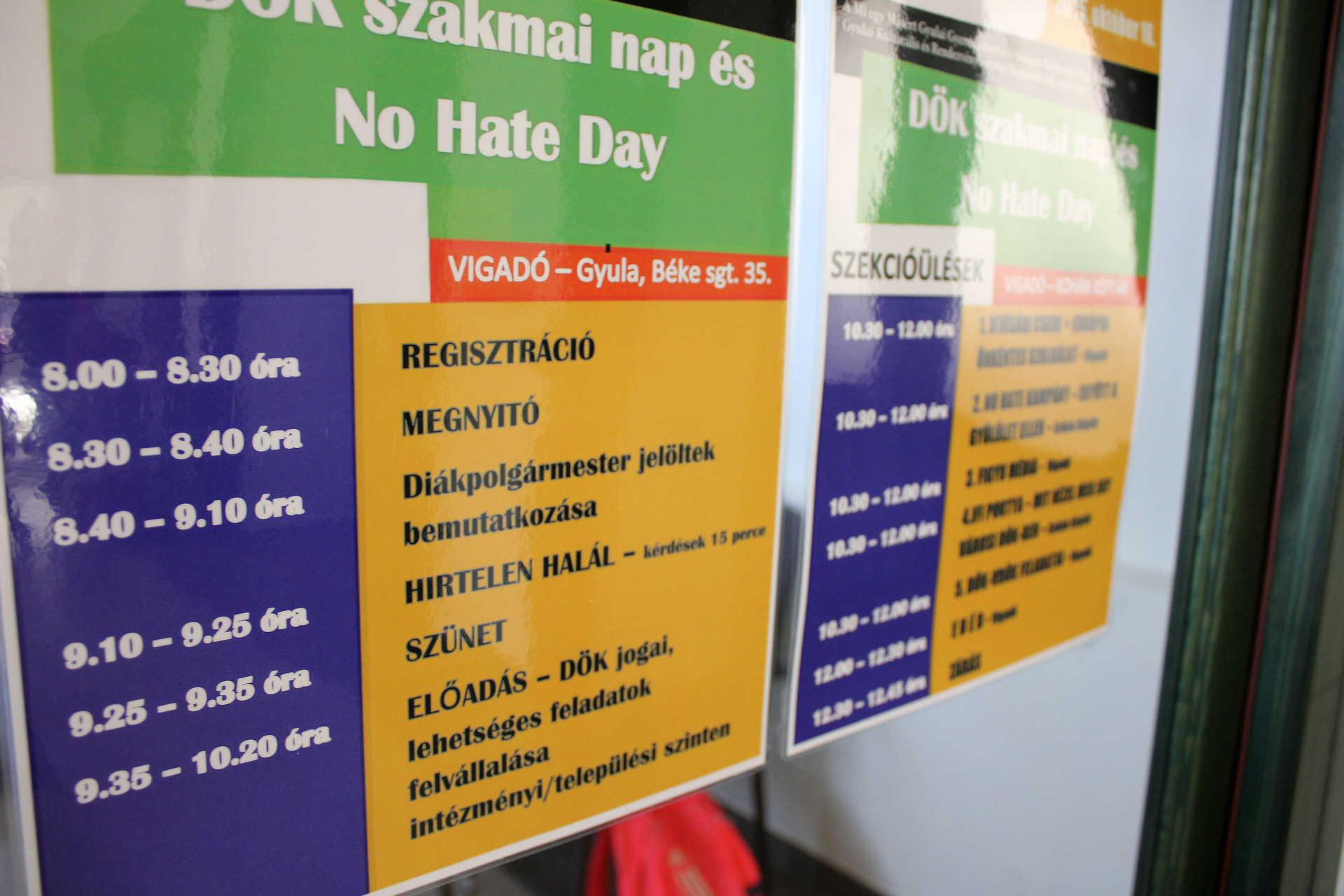 Ezek után a diákönkormányzatok jogairól és feladatairól szóló előadáson szerezhettek új ismereteket az érdeklődők, azt követően indultak el a szekcióülések. Utóbbiakra mindenki egyénileg, saját érdeklődése szerint regisztrálhatott a program kezdetekor. Ezeken többek között az idegen országokban eltöltött önkéntes szolgálatról és az online és személyes gyűlölet, erőszak ellen indult No Hate kampányról is szó esett. Mindezek mellett a programon az egyes városok DÖK-öseinek életébe is bepillanthattak a diákok, de akár egy újonnan induló ifjúsági médiafelület szerkesztőihez is csatlakozhattak. Az egész délelőttön át tartó rendezvényen több mint kétszáz helyi diák vett részt.