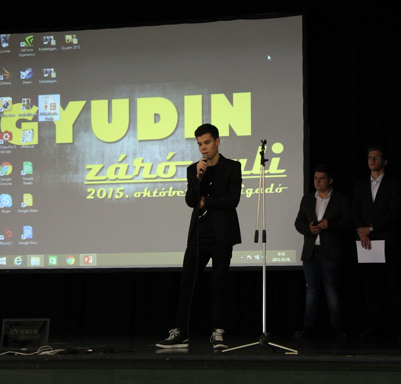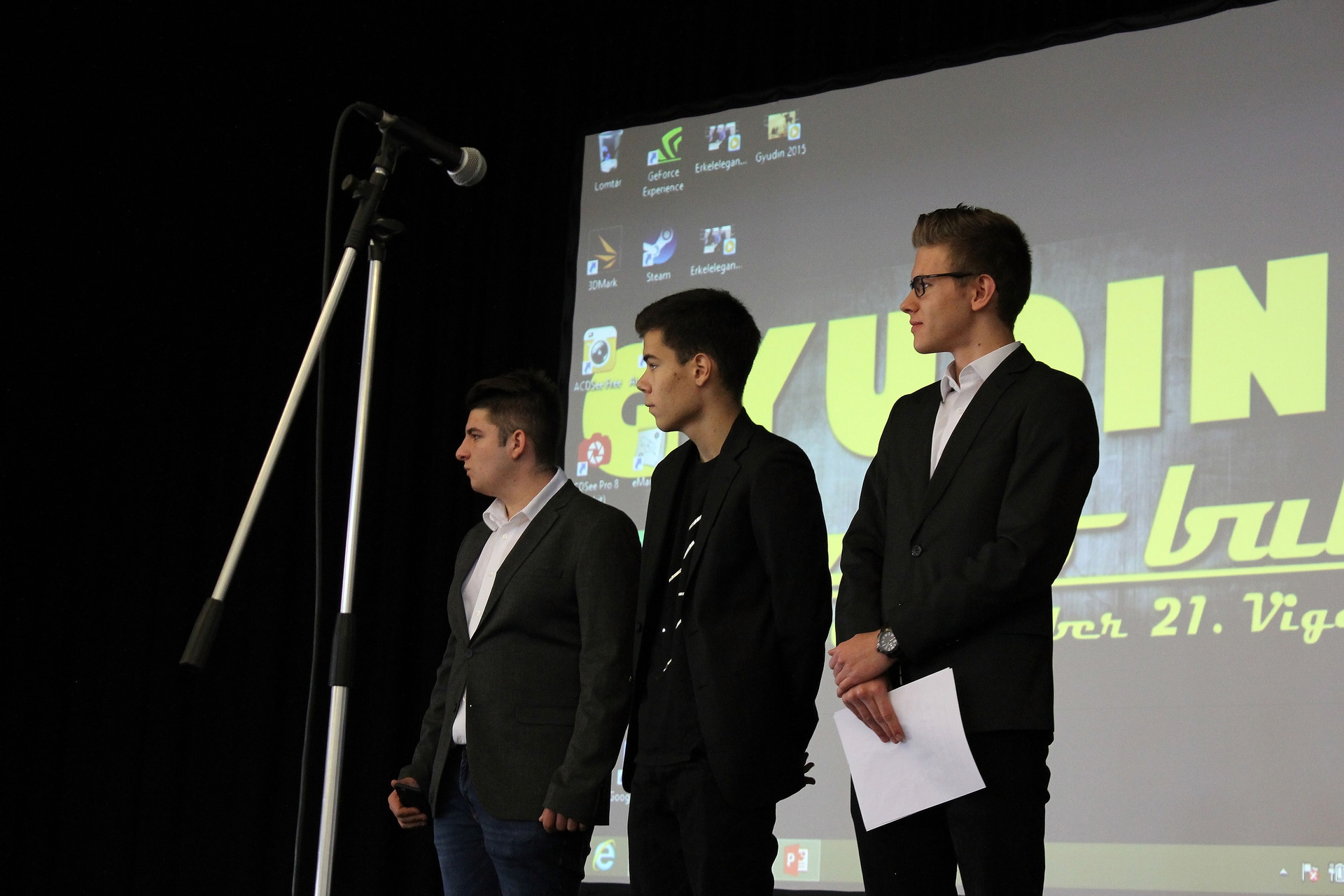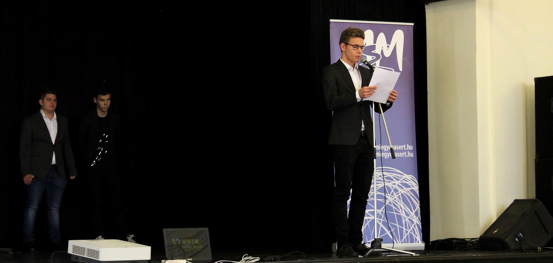 A köszöntőt a diákpolgármester-jelöltek bemutatkozása követte, Vascán Balázs, Rokszin Martin és Szekeres Balázs jól állták a sarat programjuk ismertetése, majd az azt követő villámkérdések során.