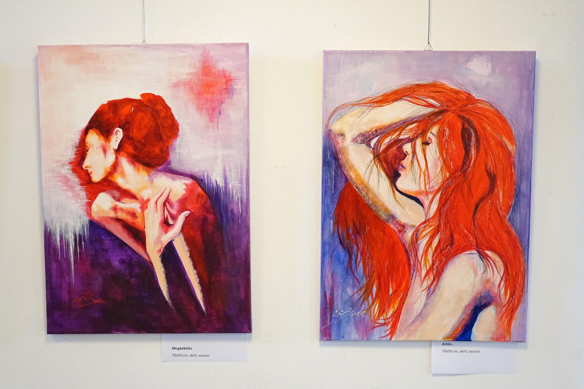 – Nem szeretek sok ember előtt beszélni, csak az alkotás fontos a számomra, amit ösztönösen csinálok. Nem elsősorban szép képeket szeretnék készíteni, mert akkor csendéletekkel foglalkoznék, inkább az érzelmek kifejezése és továbbadása a célom – fejtette ki Boda Ágnes.