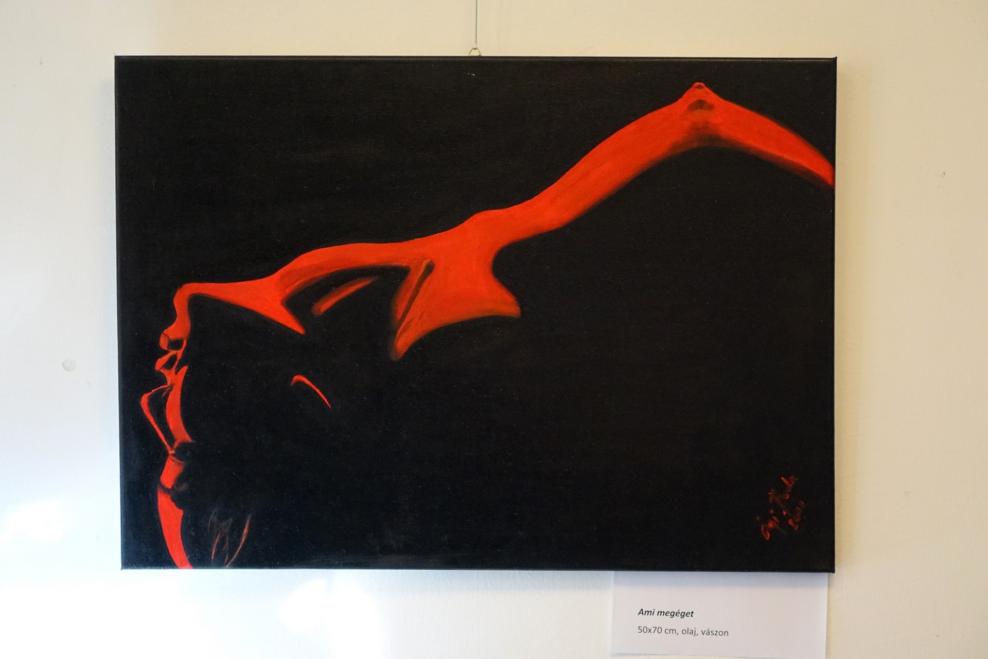 Kiállításának délelőtti megnyitója valódi megnyitó nélkül kezdődött. A kifejező női arcokat és aktokat bemutató képeket egyszerűen elhelyezték a falakon, ám ezúttal elmaradtak az üdvözlő szavak és a meghívott vendégsereg is. A művésznő kérdésünkre elmondta ennek okát is: úgy érezte, neki nem fontos az ünnepélyes indítás, nem igazán színpadi ember, inkább olyasvalaki, aki nagyon szeret festeni.