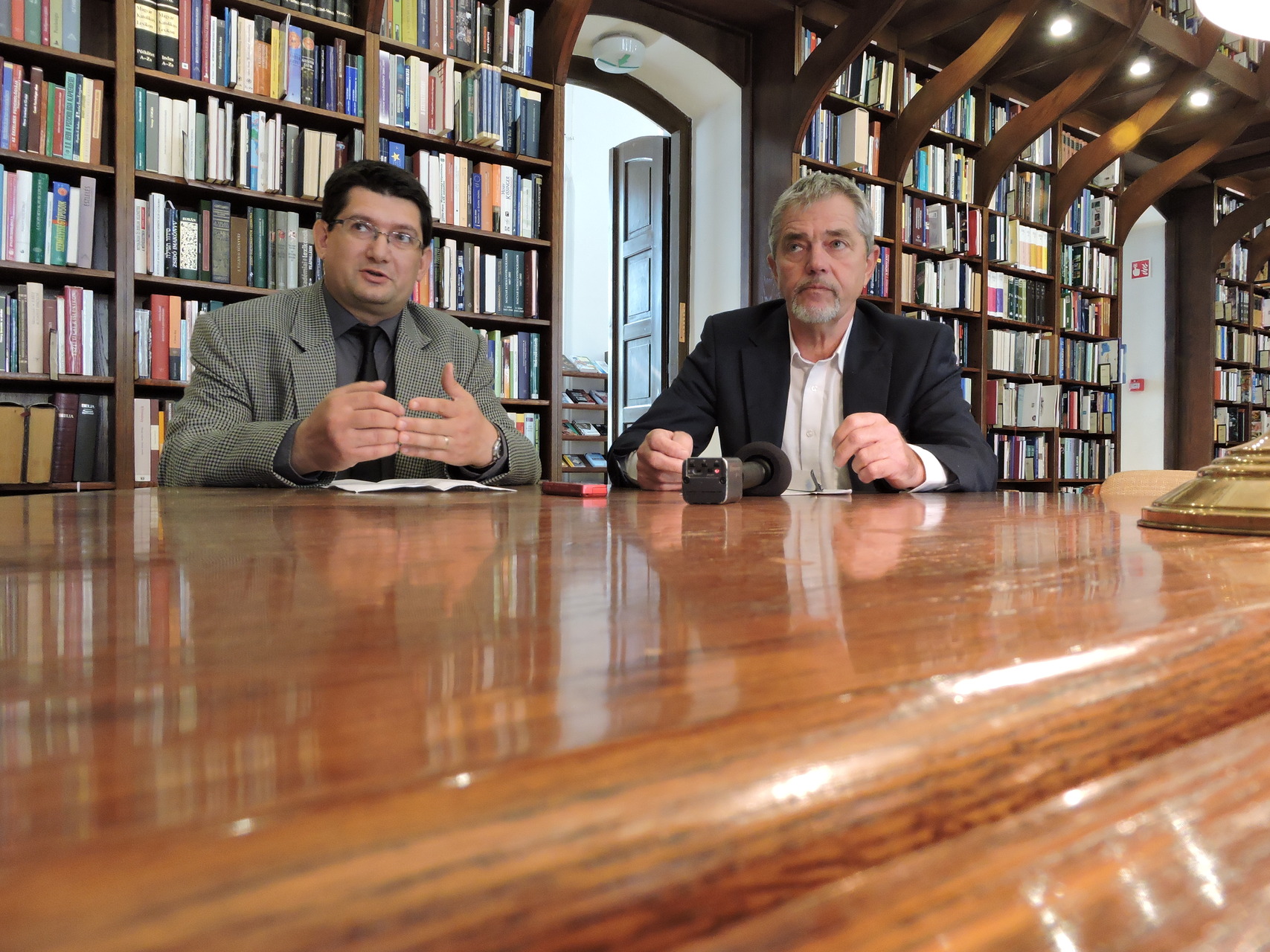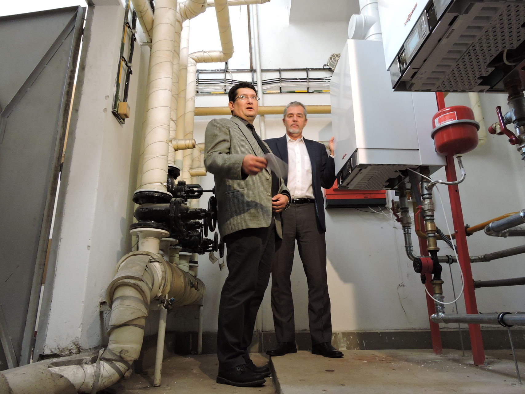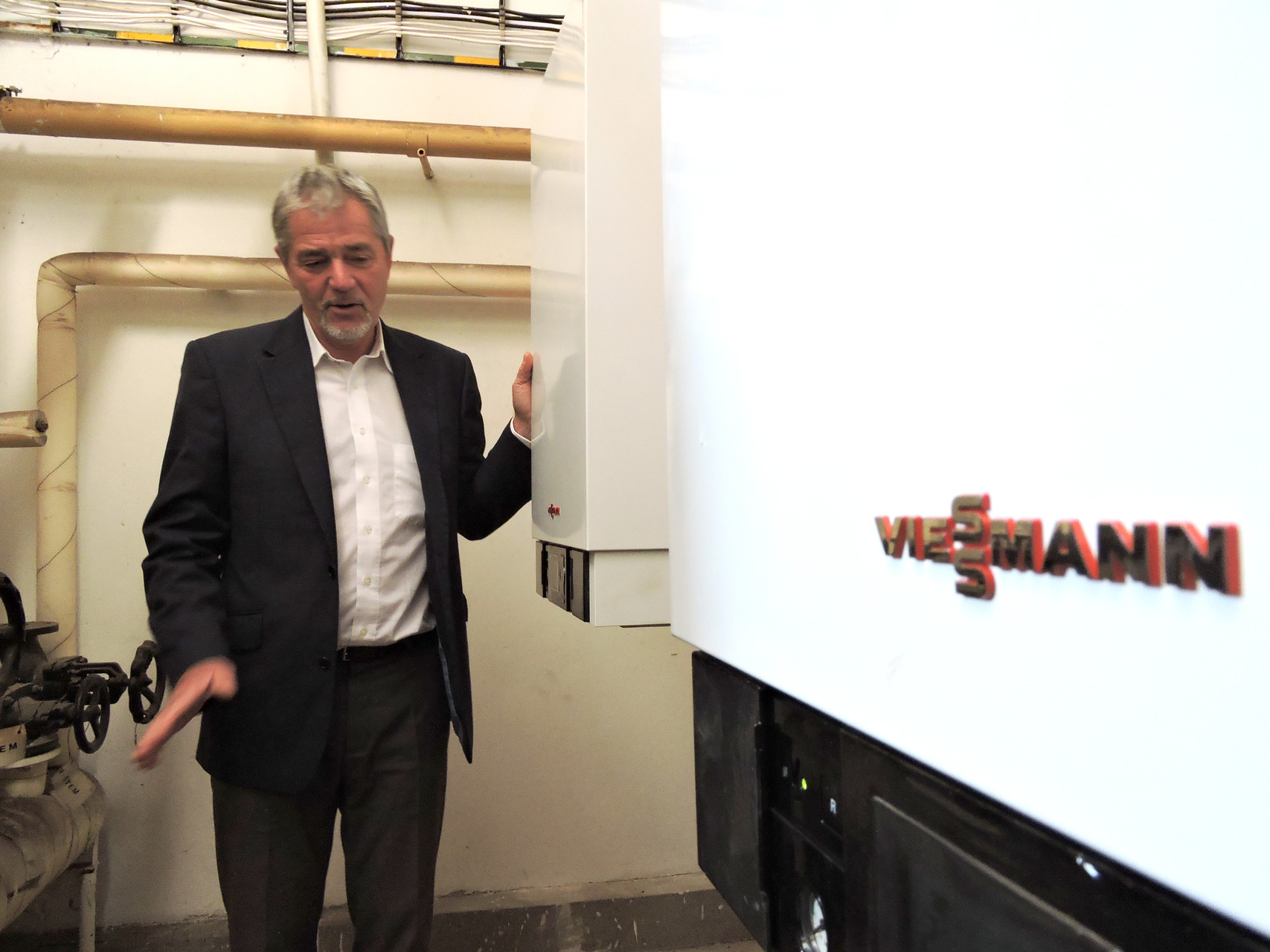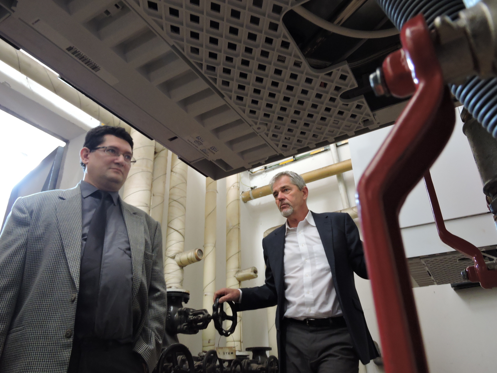 dézsi jános, megyeri sándor és az új viessmann kazánok a könyvtárban. helyszín a kazánház