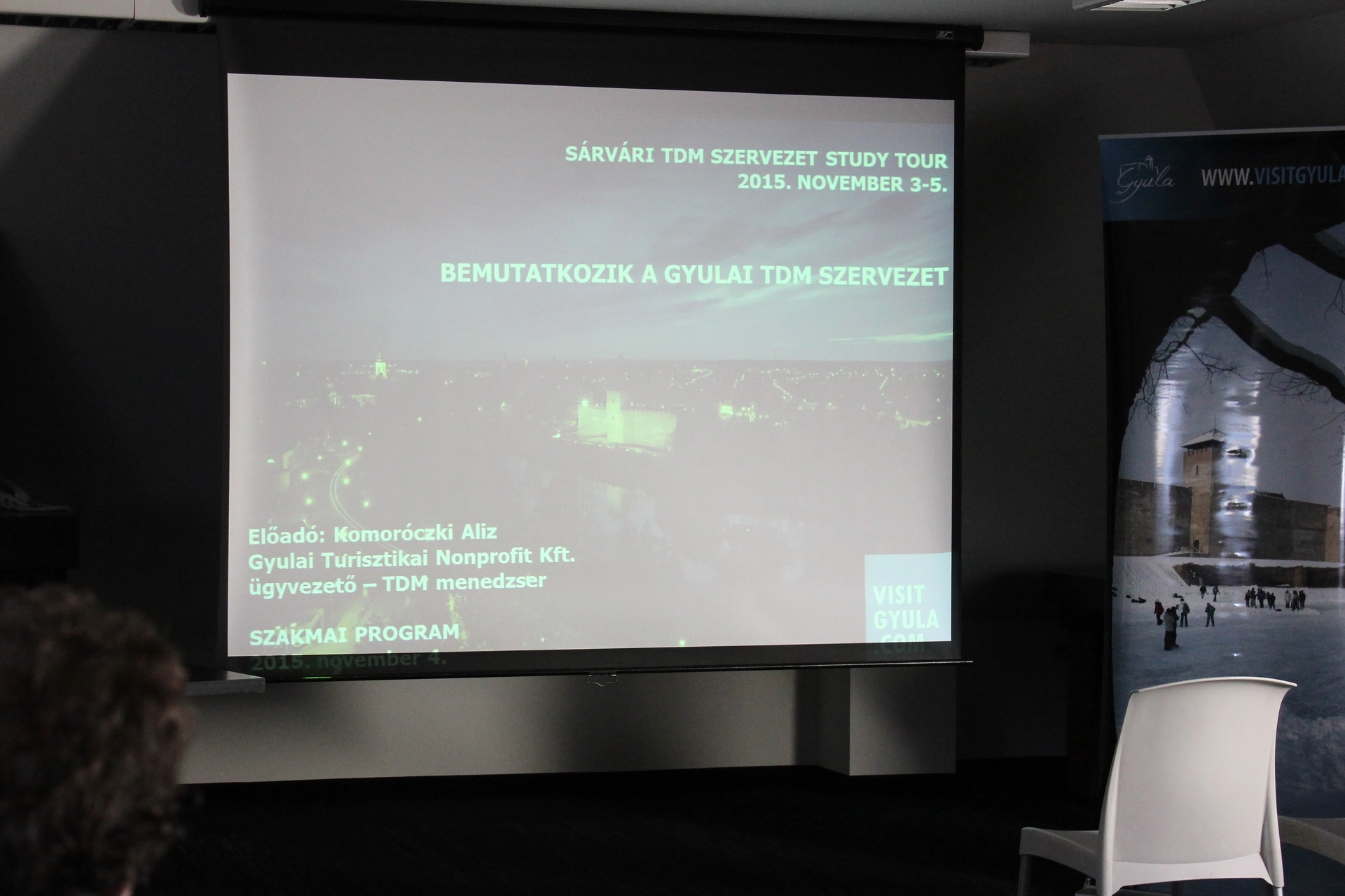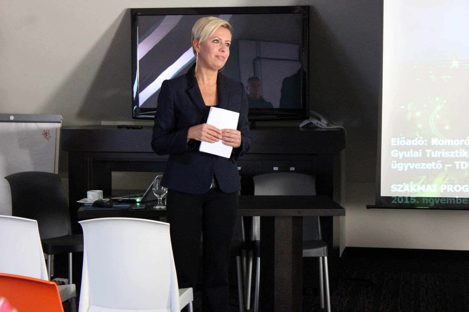 A szakmai program kezdete előtt Komoróczki Alizt kérdeztük a rendezvény részleteiről. Gyula város TDM menedzsere elmondta: több TDM-szervezet választja Gyulát úti céljának, most Nyíregyháza és Hajdúszoboszló után a Sárvári kollégáikat látják vendégül.