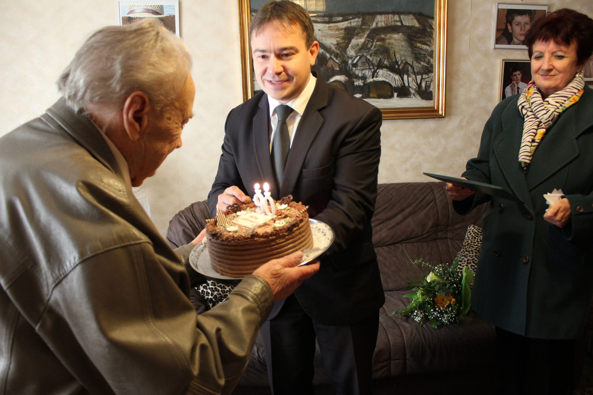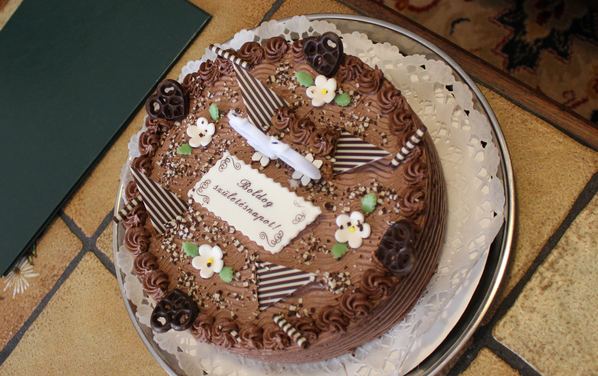 Béla bácsi az ünnepelt, a torta, kónya istván és Becsyné dr. Szabó Márta