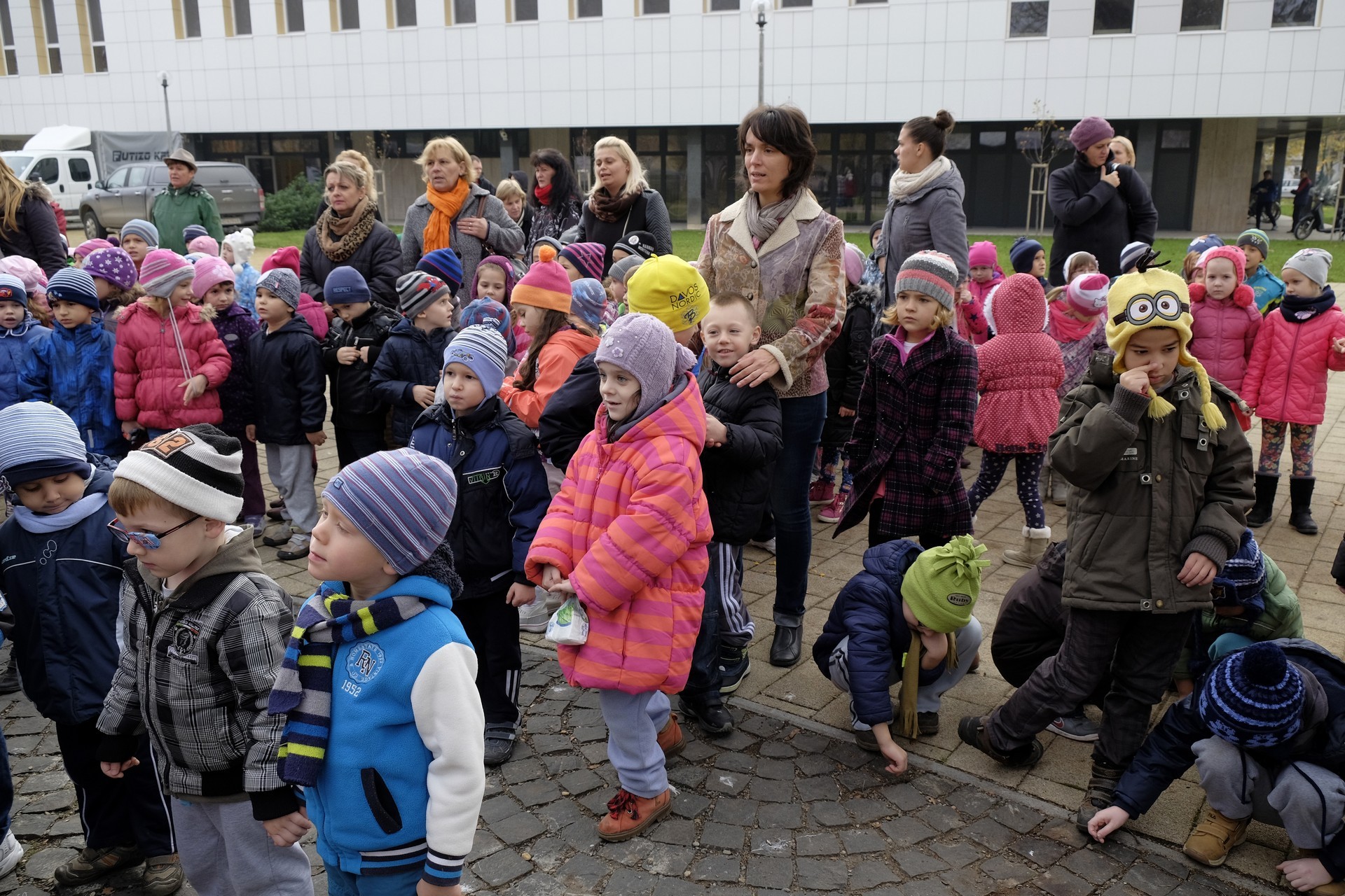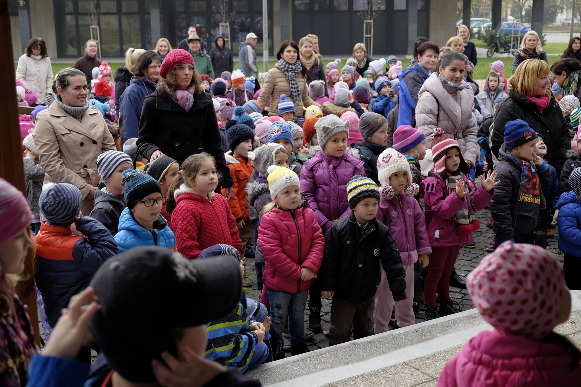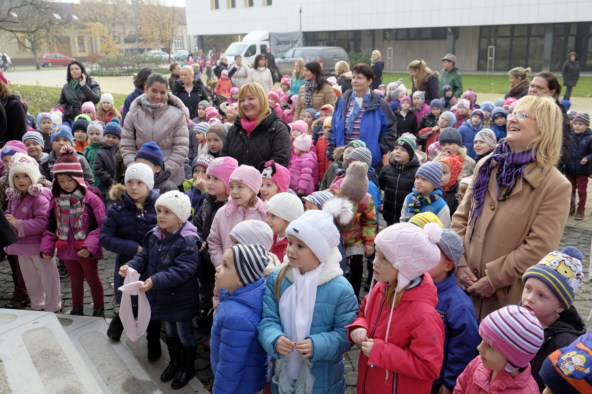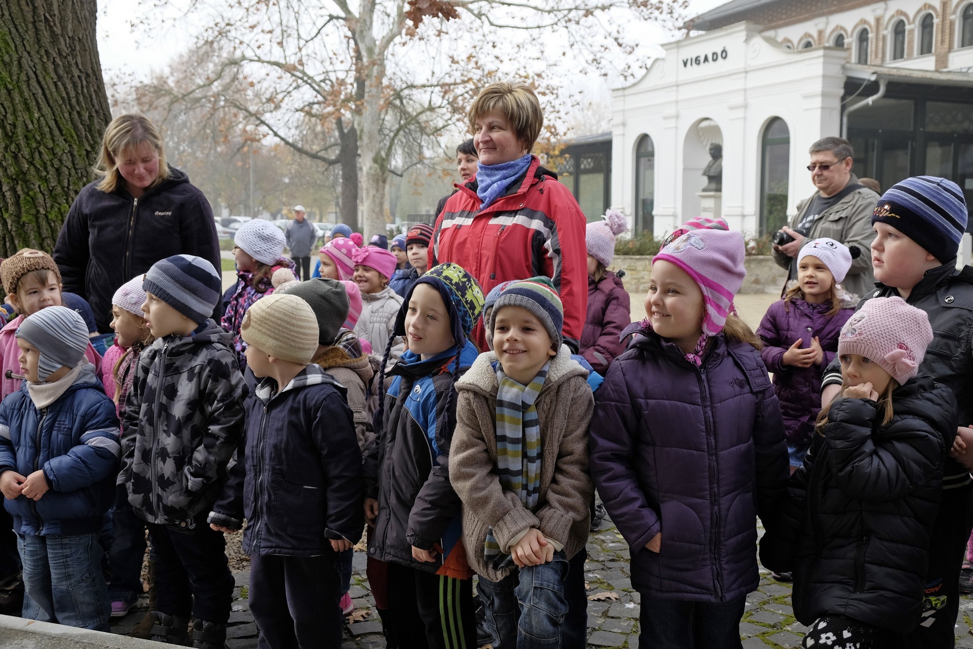 az óvodások Beszterczey attila színművésszel szavaltak közösen a gyulai vigadónál