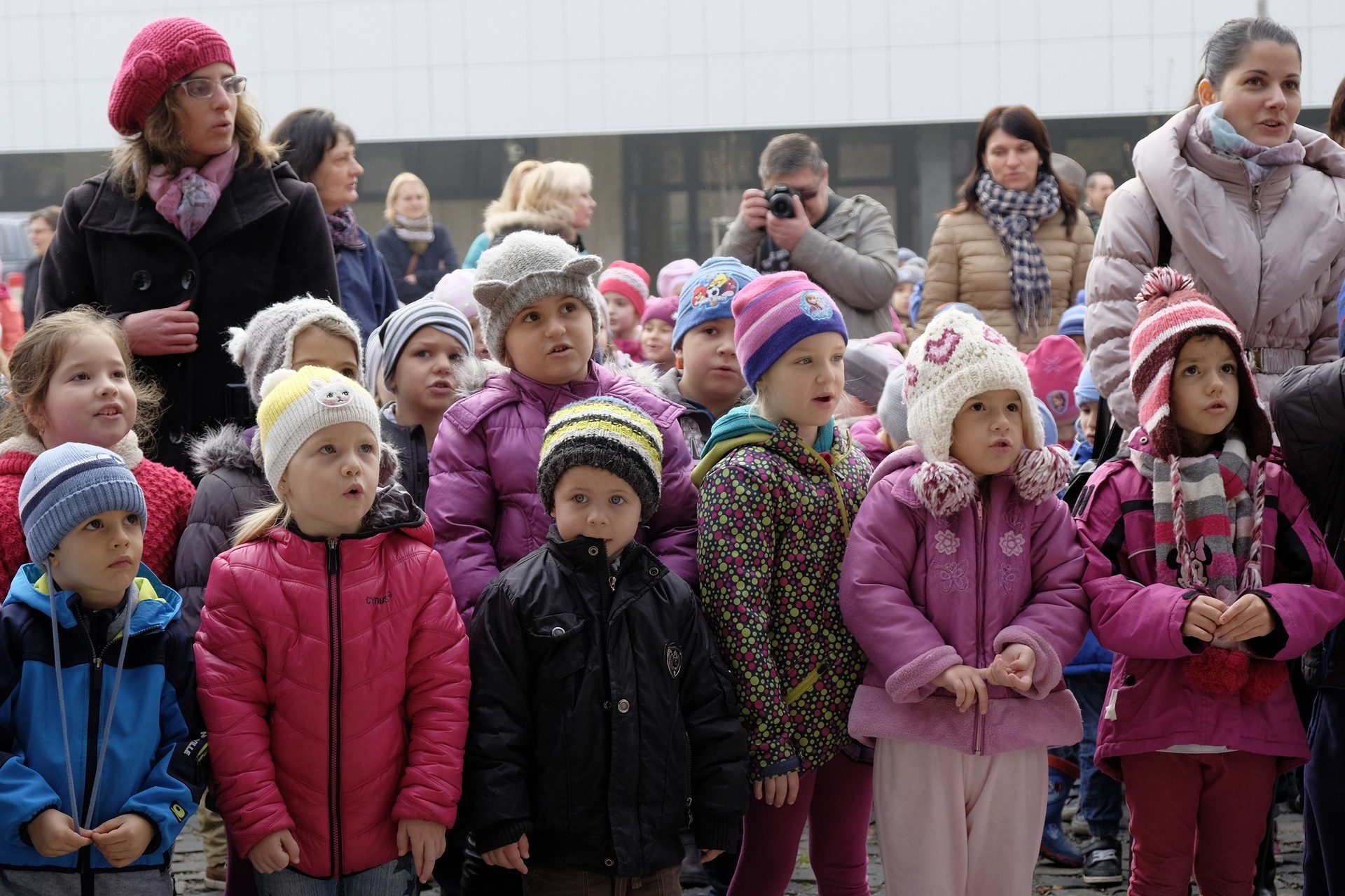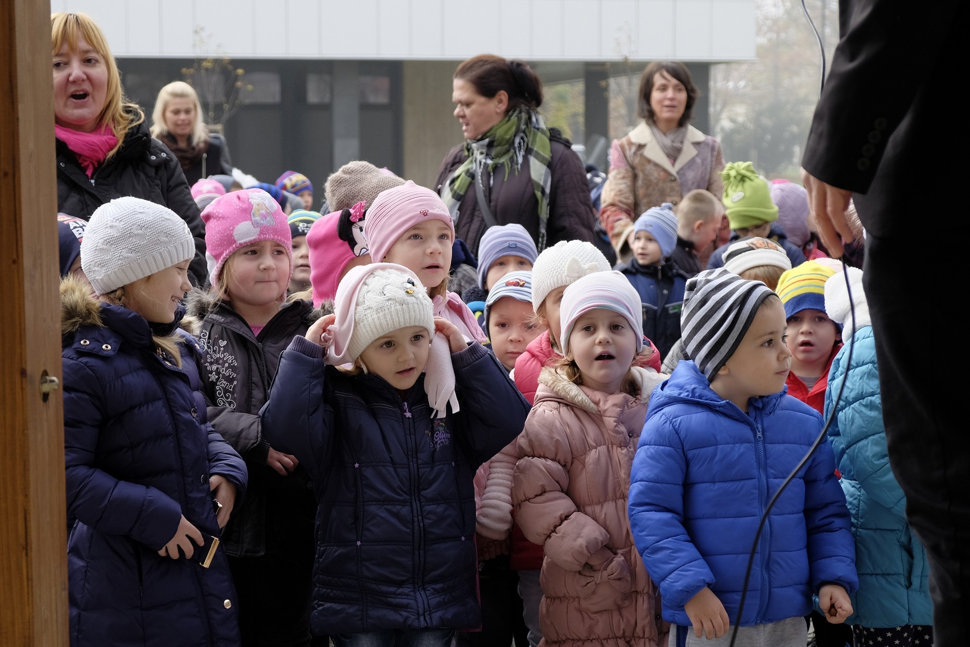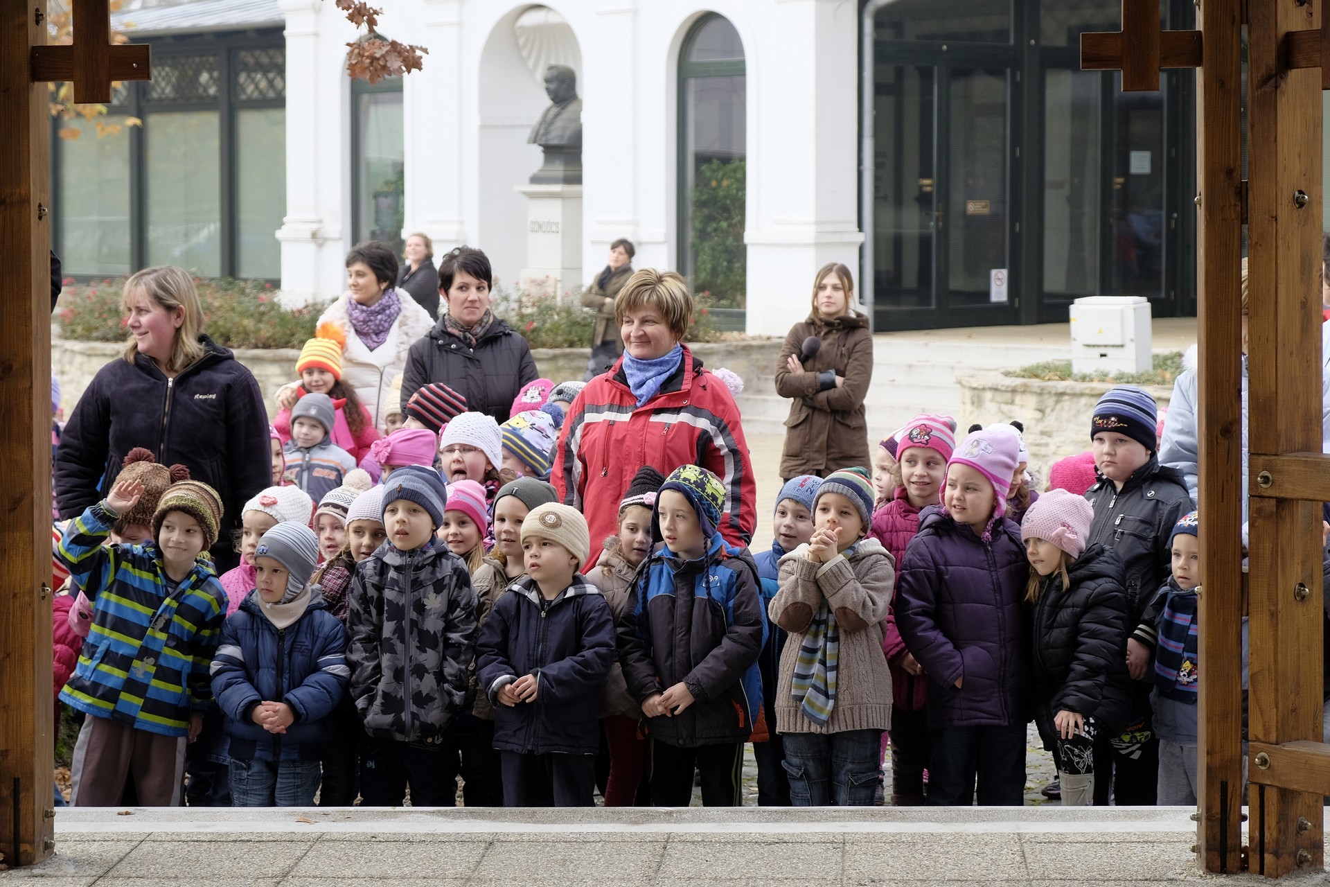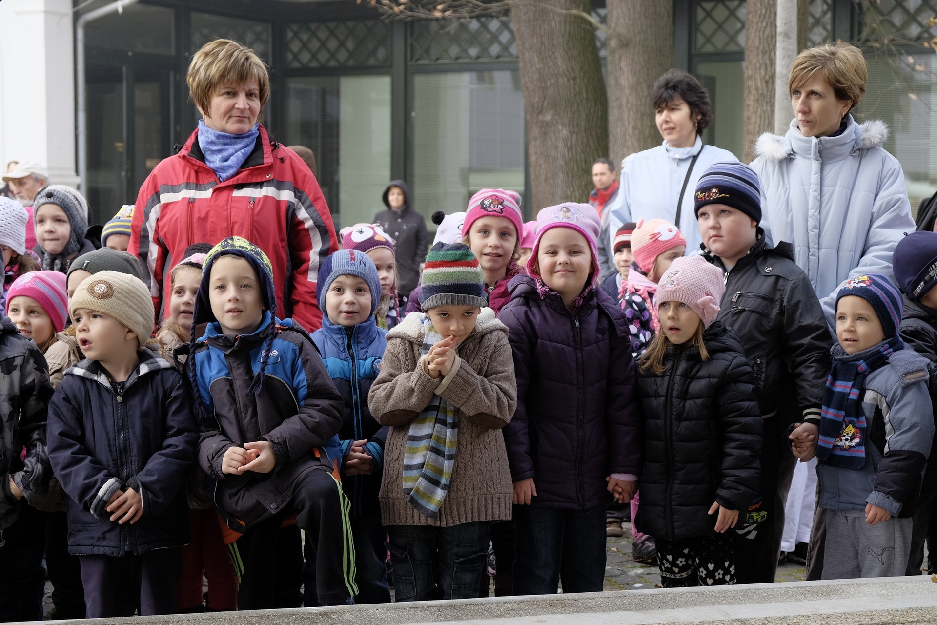az óvodások Beszterczey attila színművésszel szavaltak közösen a gyulai vigadónál