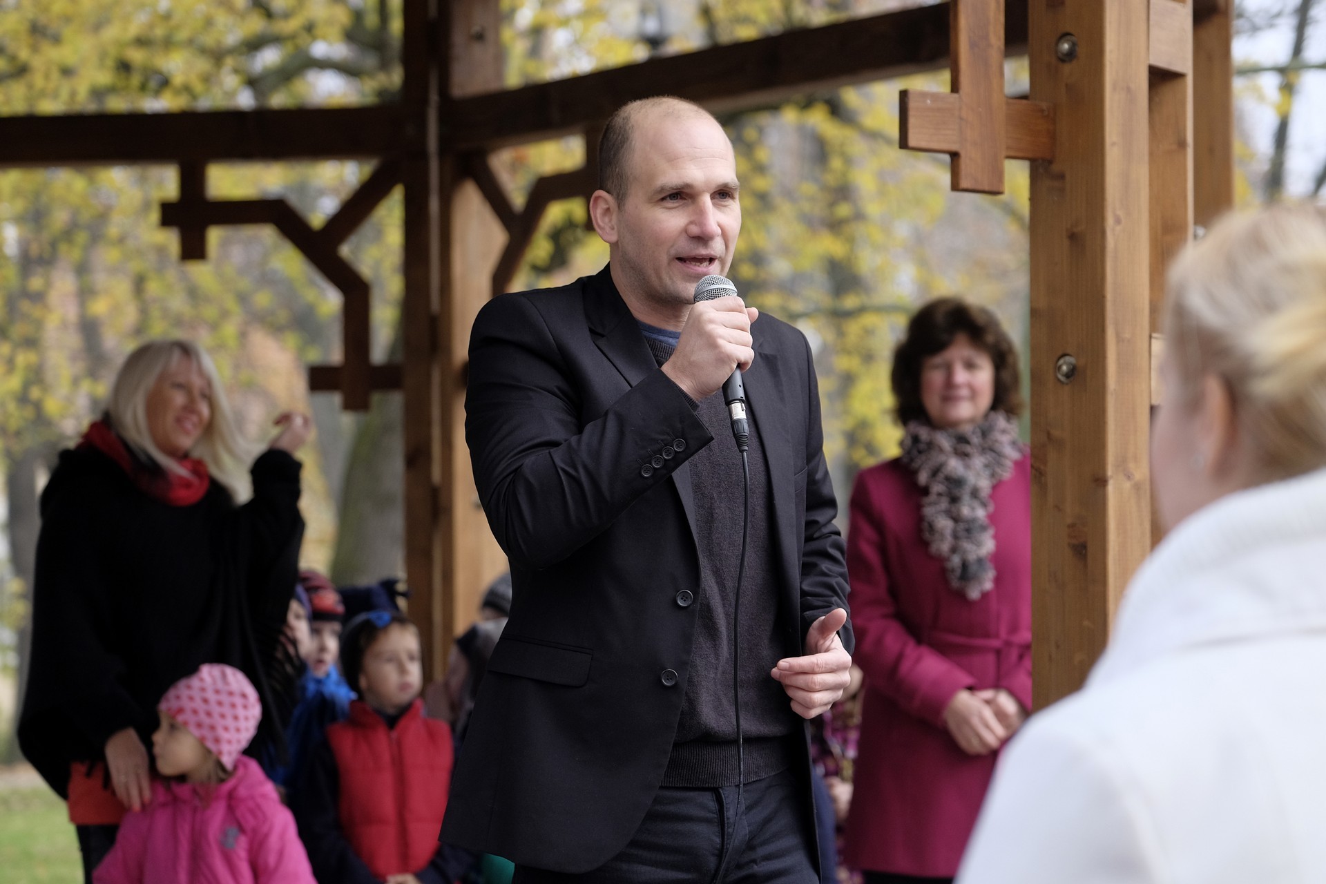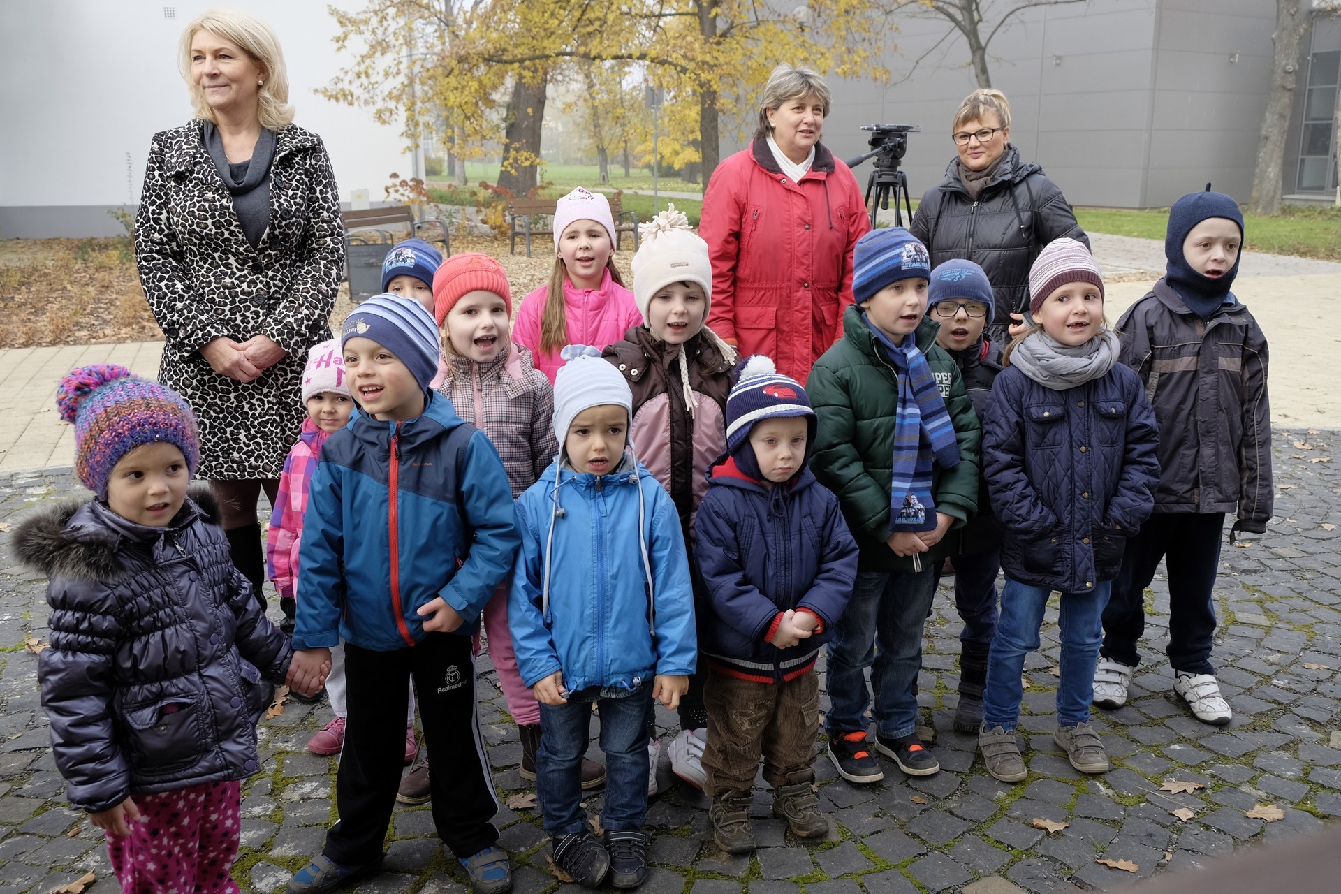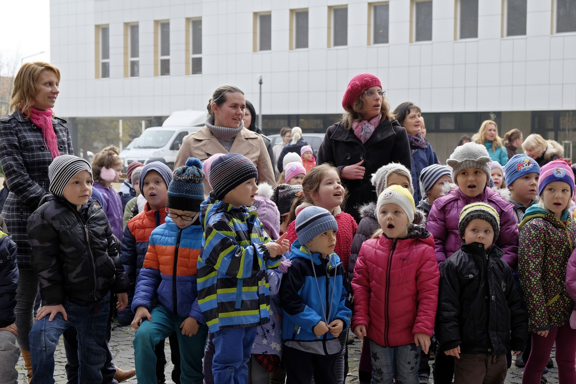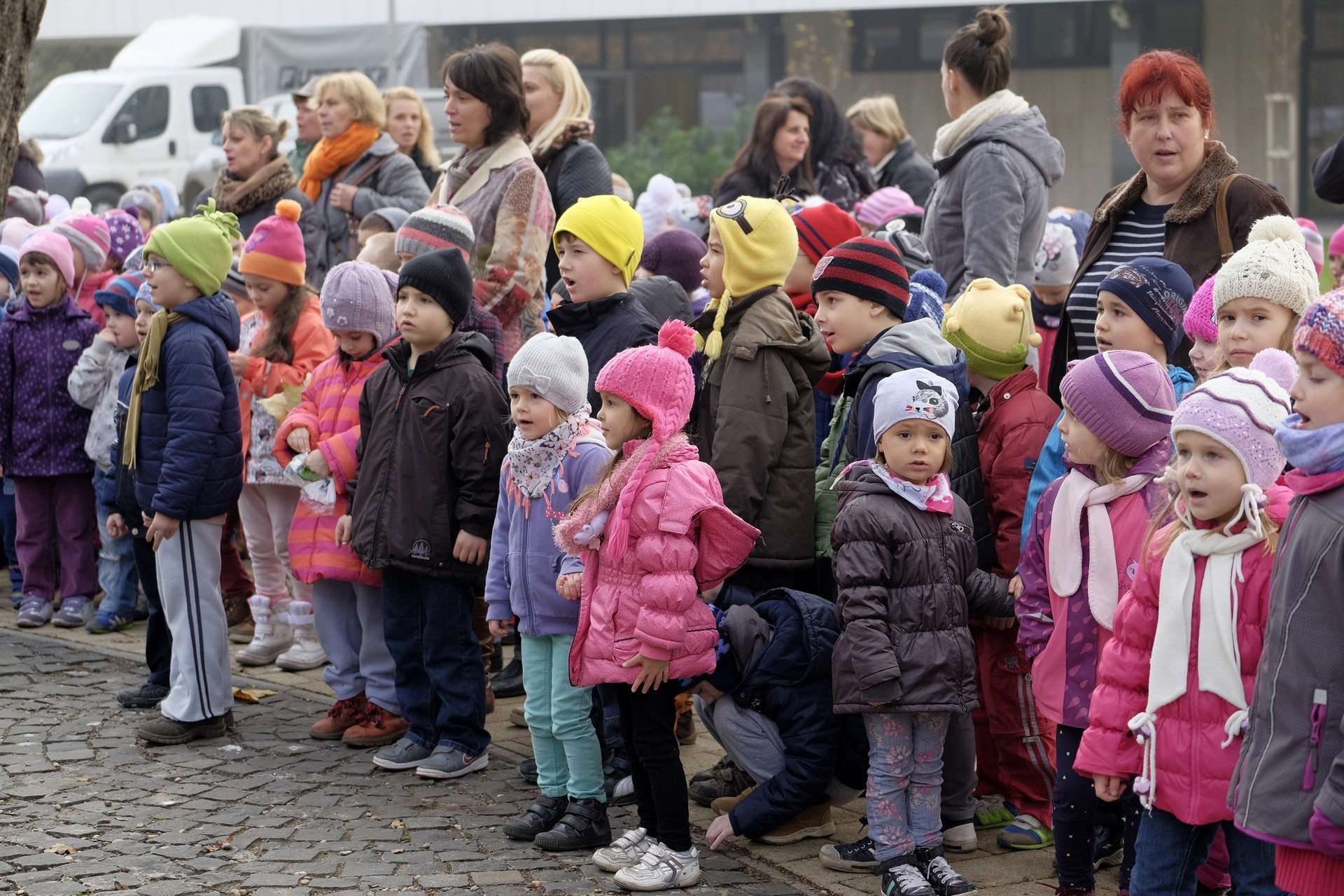 az óvodások Beszterczey attila színművésszel szavaltak közösen a gyulai vigadónál