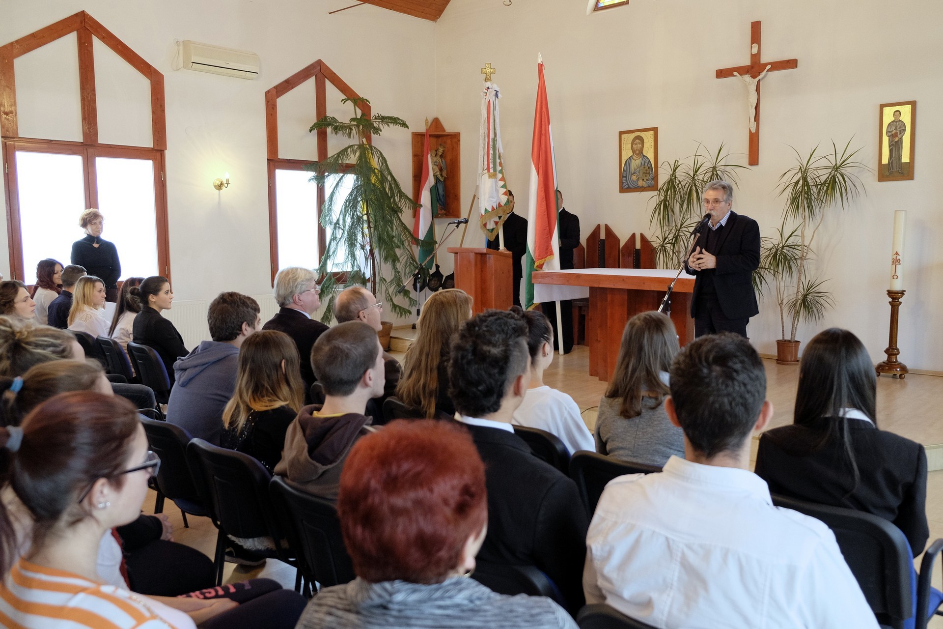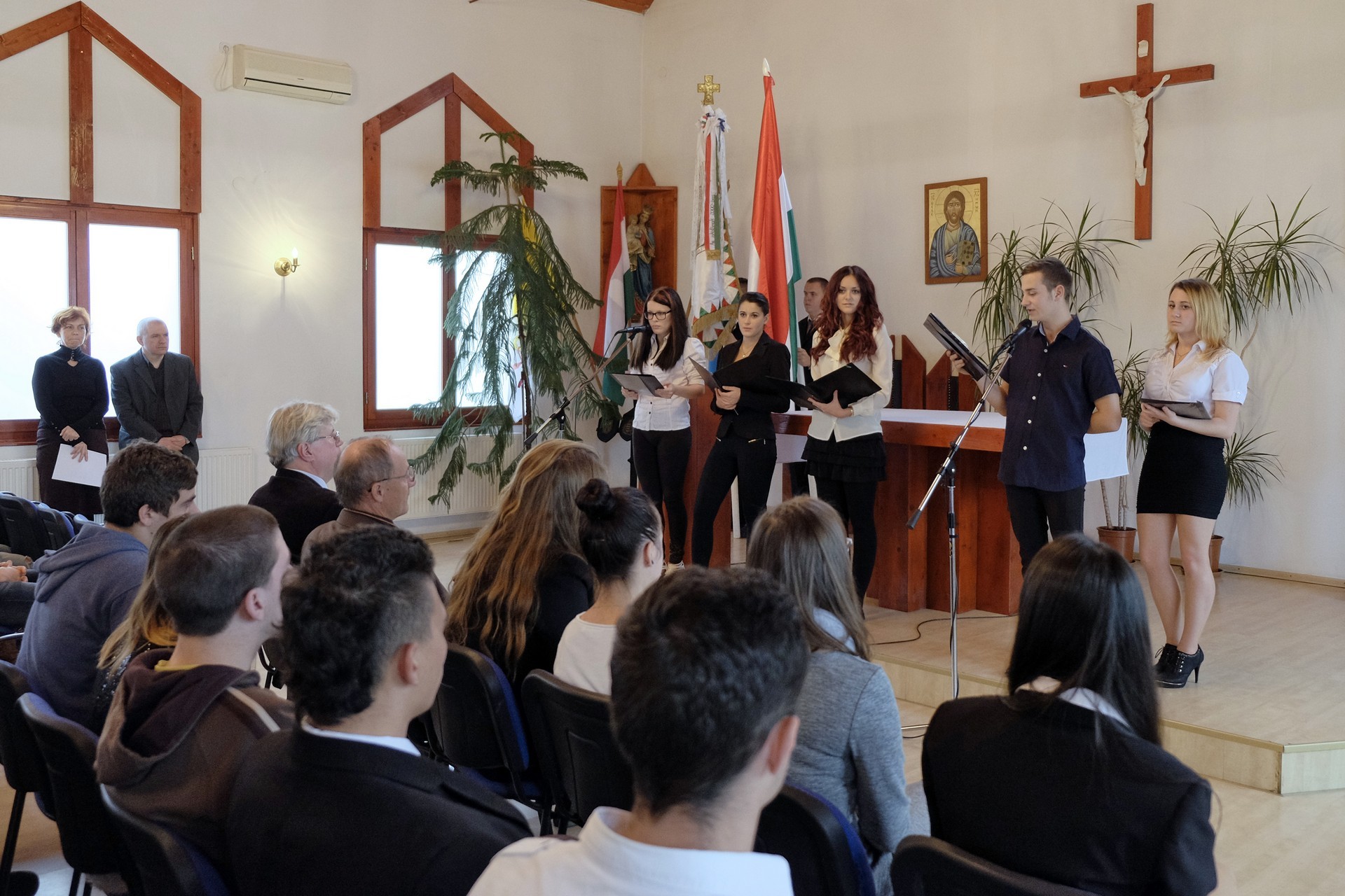 A Göndöcs Benedek Középiskolában a nagyobbak gyűltek össze, az iskola több száz tanulója az épületben lévő kápolnában és tantermekben mondta el a kiválasztott verset. Ezen az eseményen dr. Czirok Sándor az intézmény igazgatója mondott köszöntőt, aki emlékeztetett rá, hogy a magyar nyelvet 1844 novemberében választották hivatalos nyelvvé országunkban, azelőtt a latin nyelvvé volt ez a szerep.