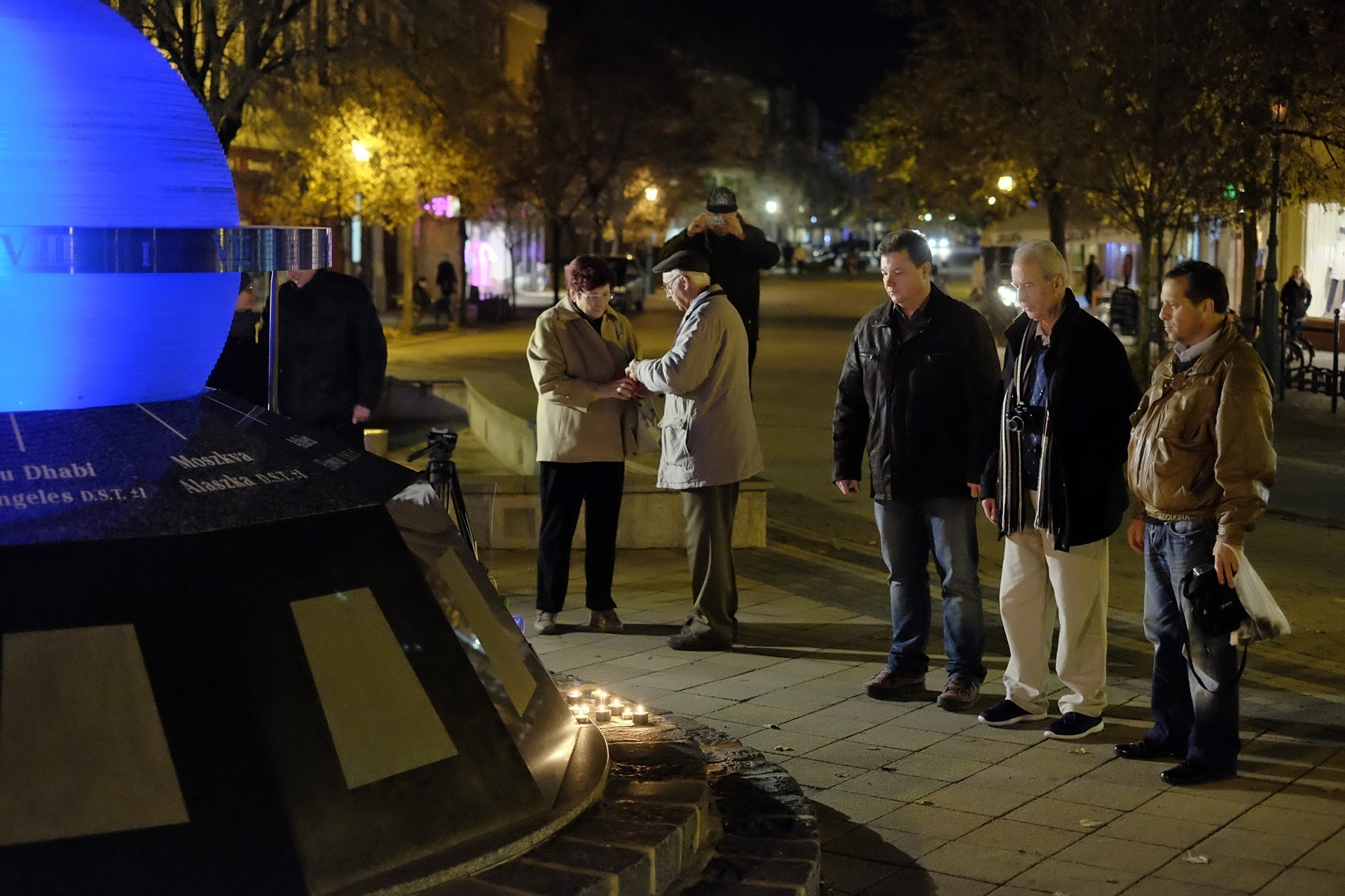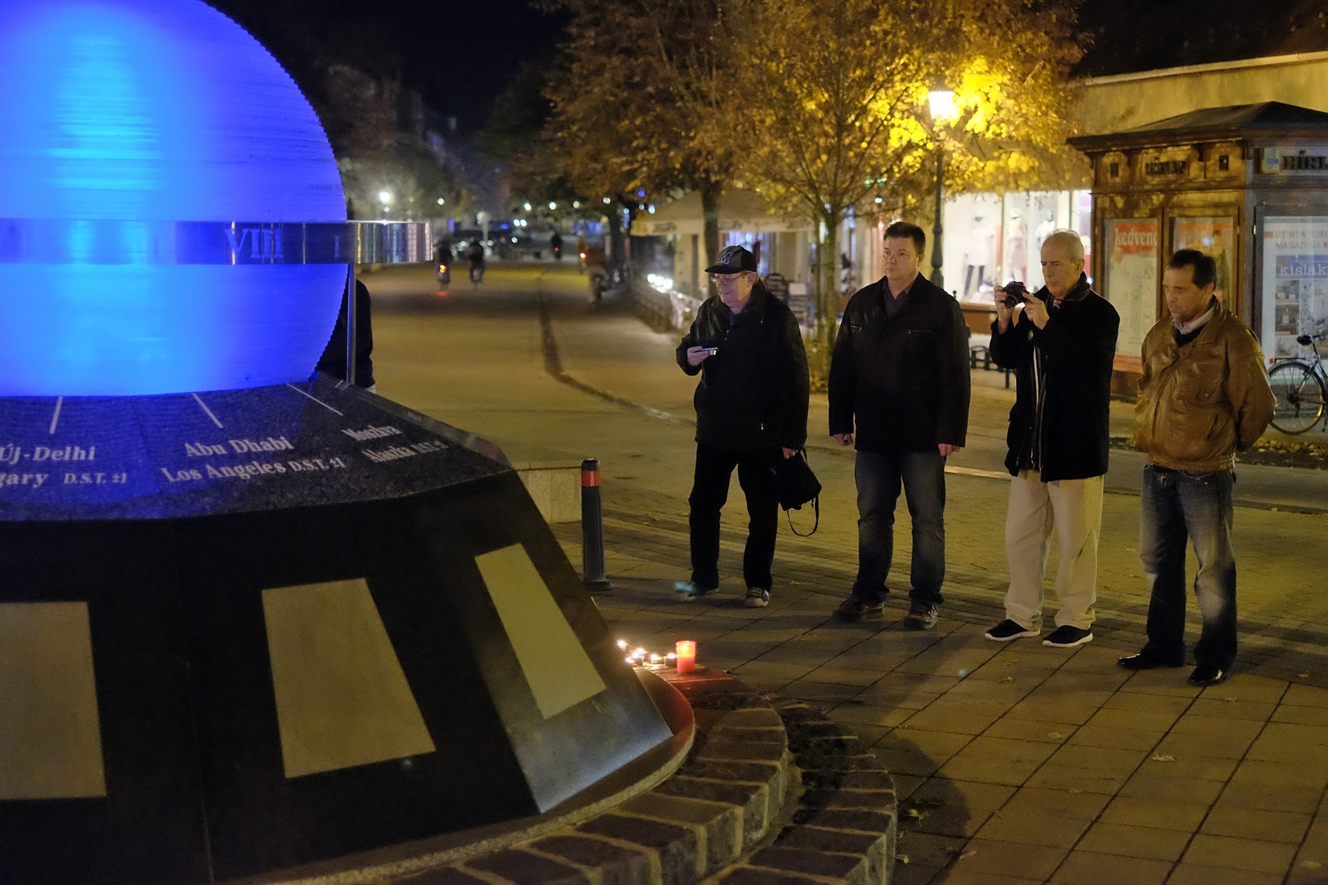 a demokrata klub tagjai a világóránál gyújtottak gyertyákat