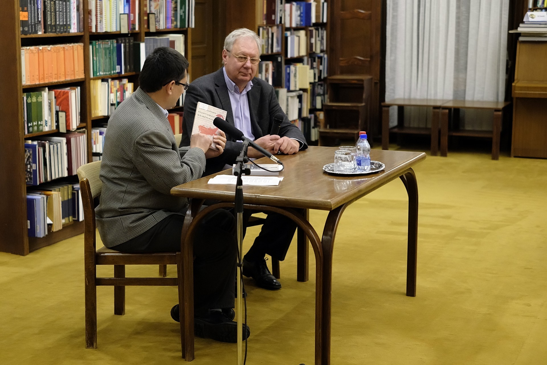 Csák Elemért (képünkön jobbról) Dézsi János kérdezte a gyulai könyvtárban