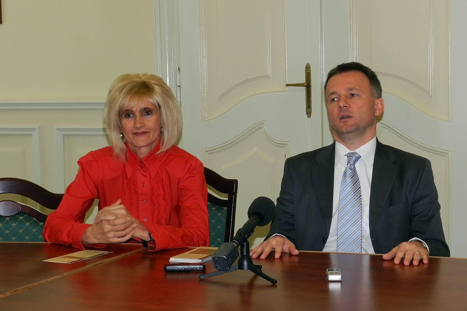 Katona Katalin és Dr. Görgényi Ernő a gyulai városháza ovális termében tartott sajtótájékoztatót