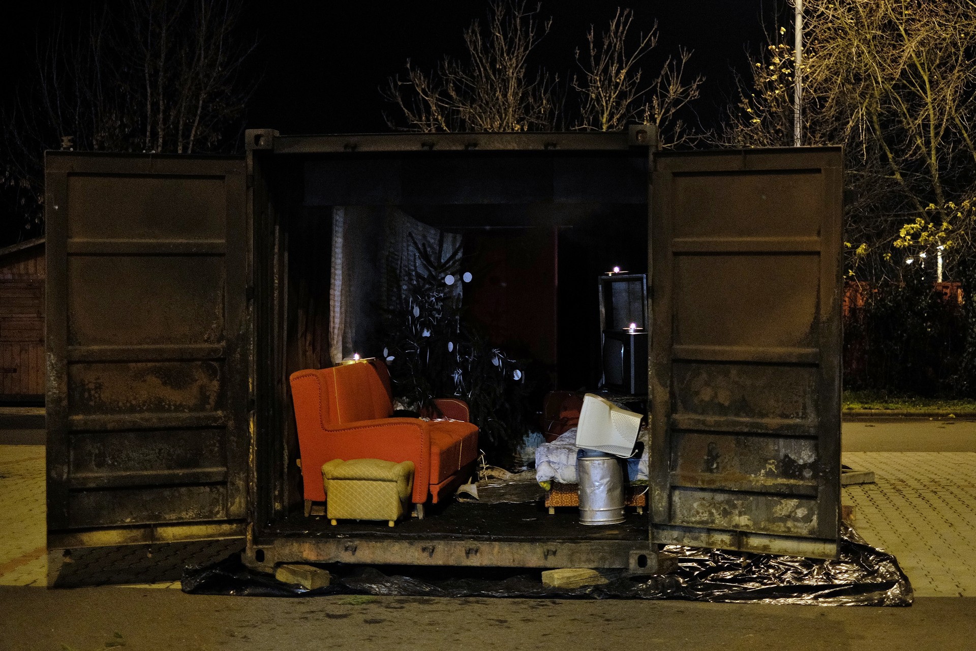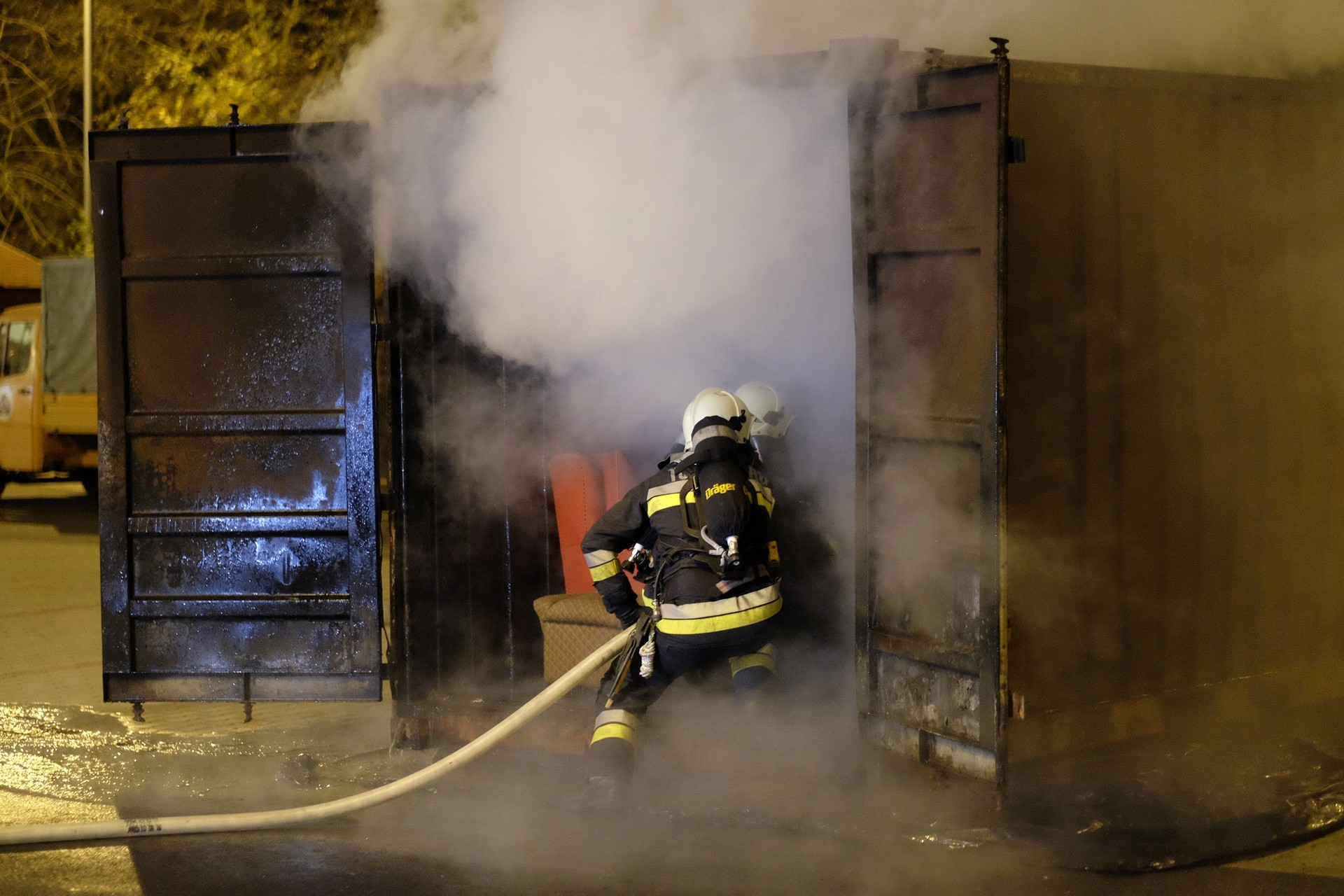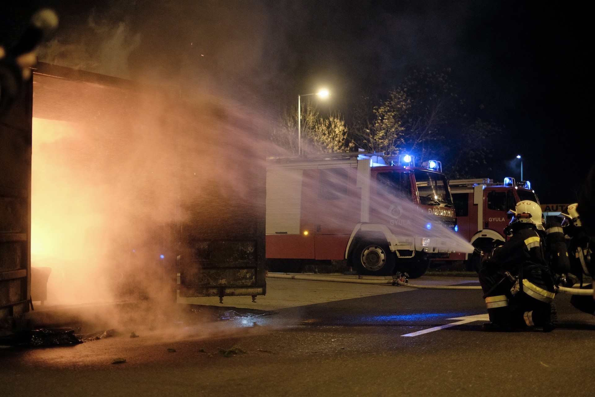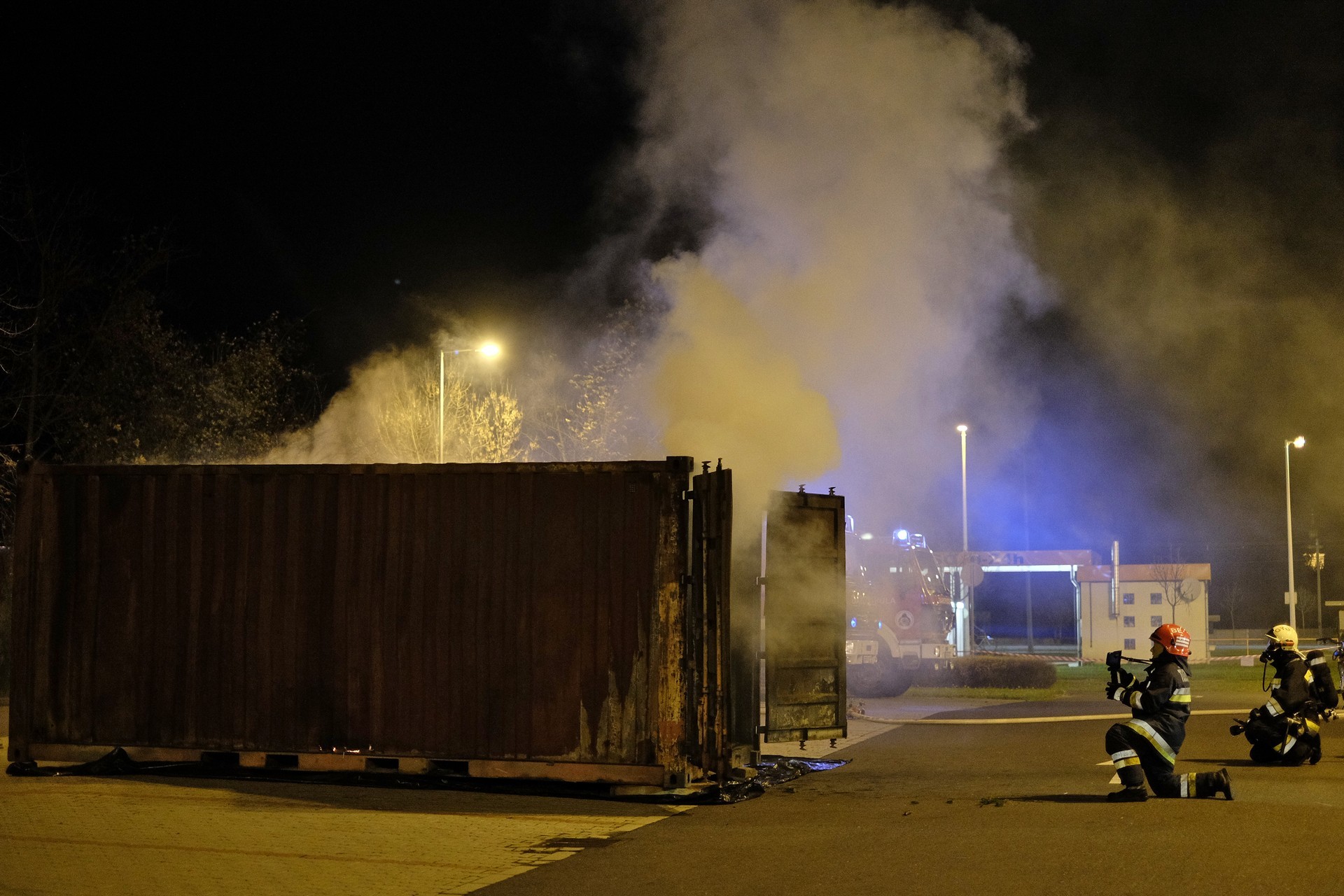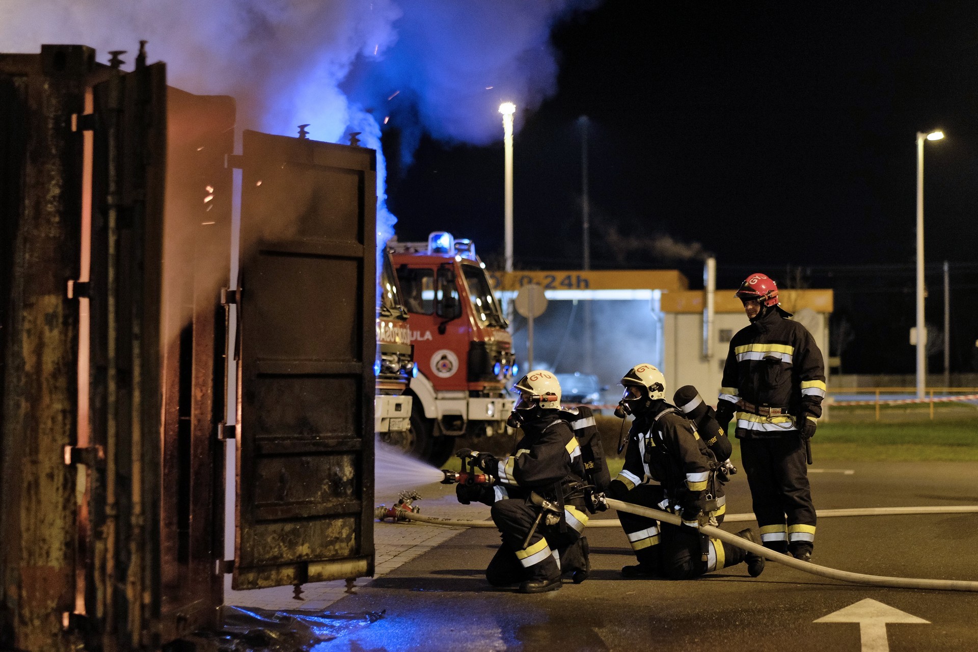 tűzszimuláció gyulán. A konténerben berendezett nappali percek alatt lángra kapott
