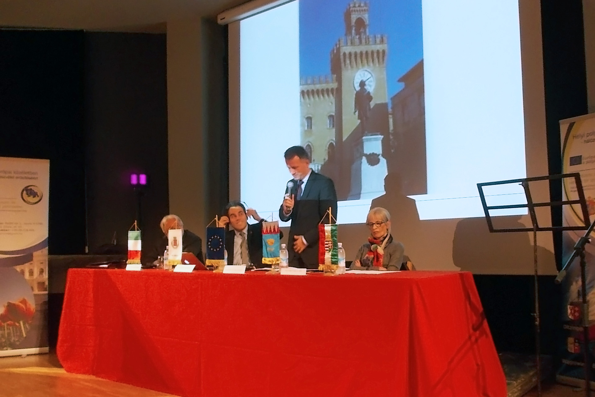 képünk a legutóbbi civil fórumon készült Budrióban. A fotón (balról jobbra): Giorgio Cesari, Budrio EGYKORI ALPOLGÁRMESTERE, BRUNO FAUSTINI FUSTINI, Budrio EGYKORI POLGÁRMESTERe, felesége, Banner Zsuzsanna, CARLO CASTELLINI, Budrio előző polgármestere és Dr. Görgényi Ernő gyulai polgármester