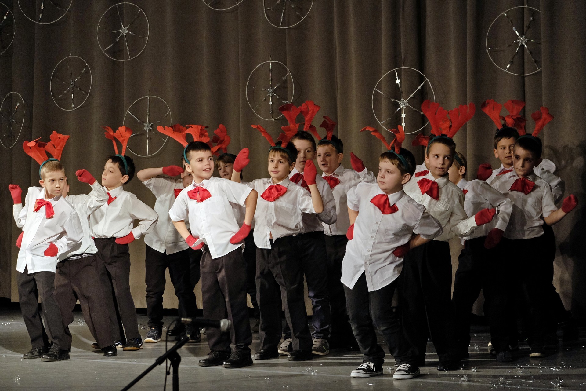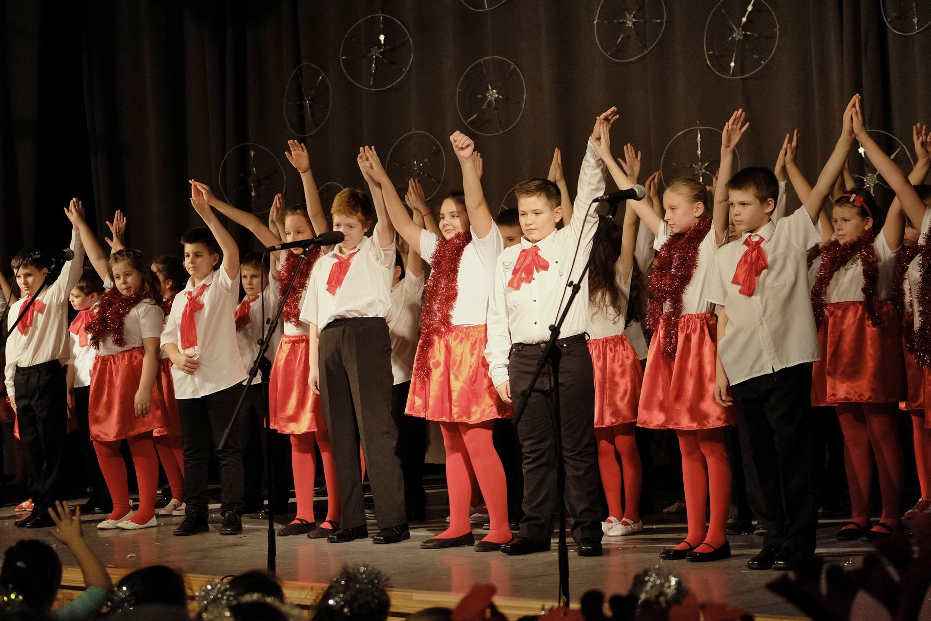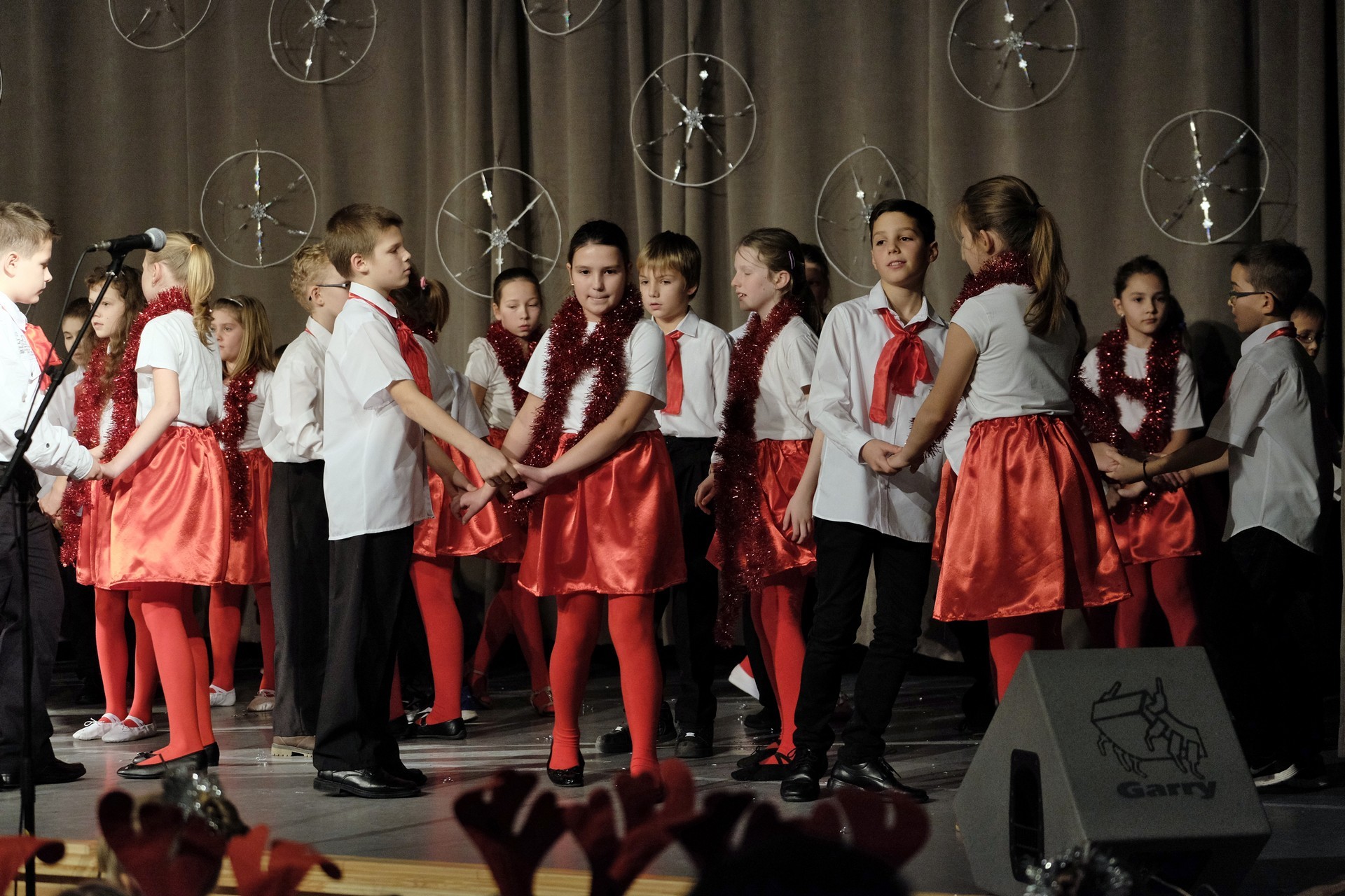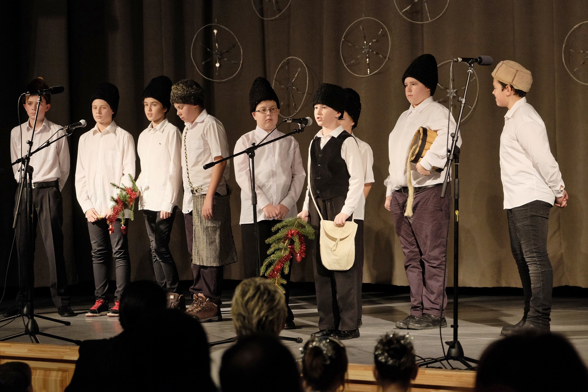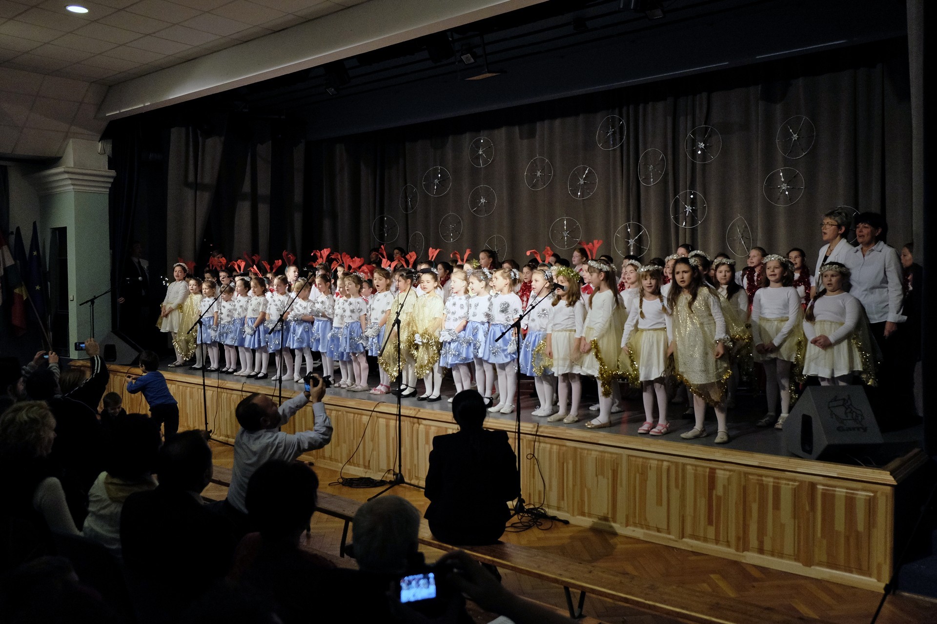 A beszédet követően a nebulók vették birtokba a színpadot, akiktől elsőként kolindákat hallgathattak meg a résztvevők az alsó tagozatosok kórusának előadásában. A szellemi világörökség listáján is szereplő kolindák változatos karácsonyi dallamainak Romániában és Moldvában ápolt tradicionális karácsonyi szokását Bugyi Ștefan-Adrian karnagy vezényletével adták elő az apróságok.