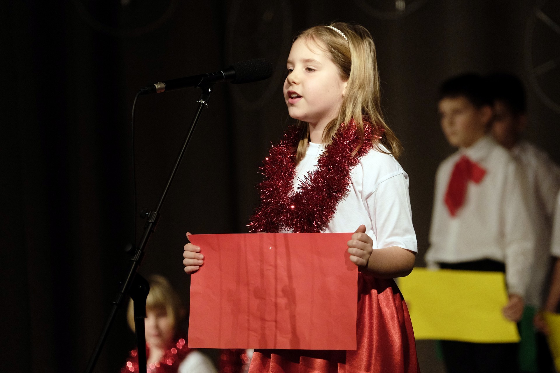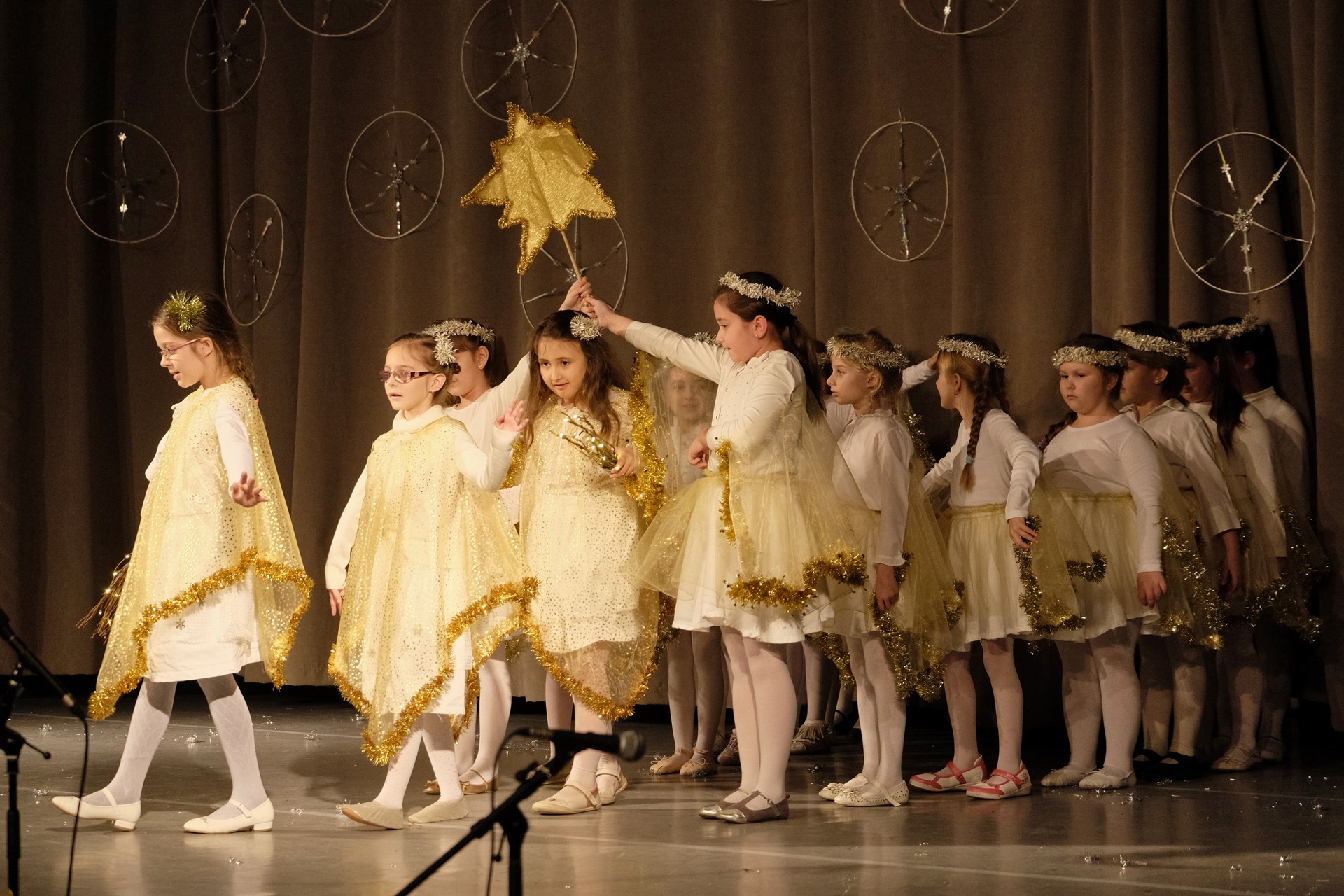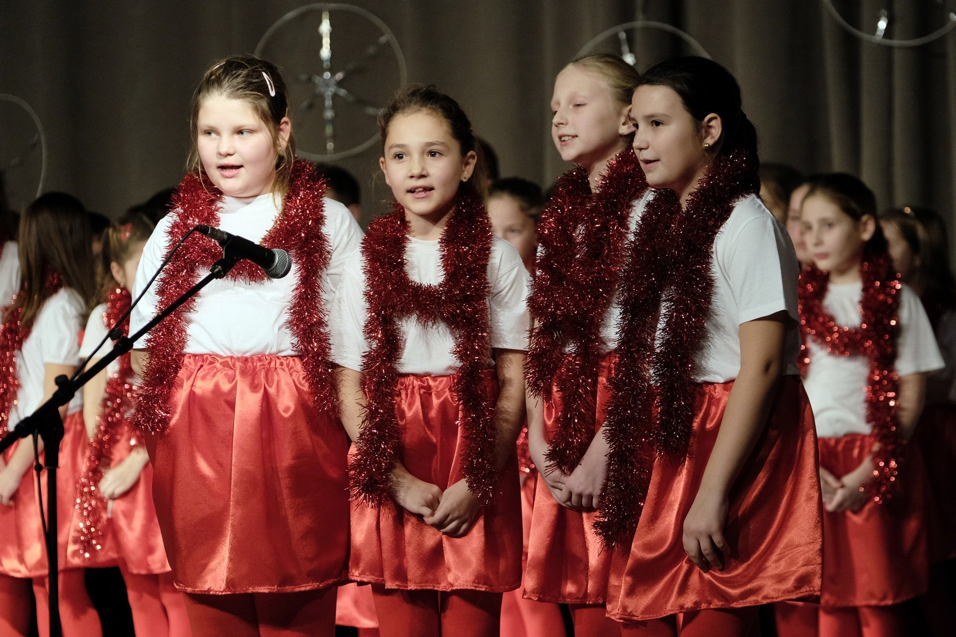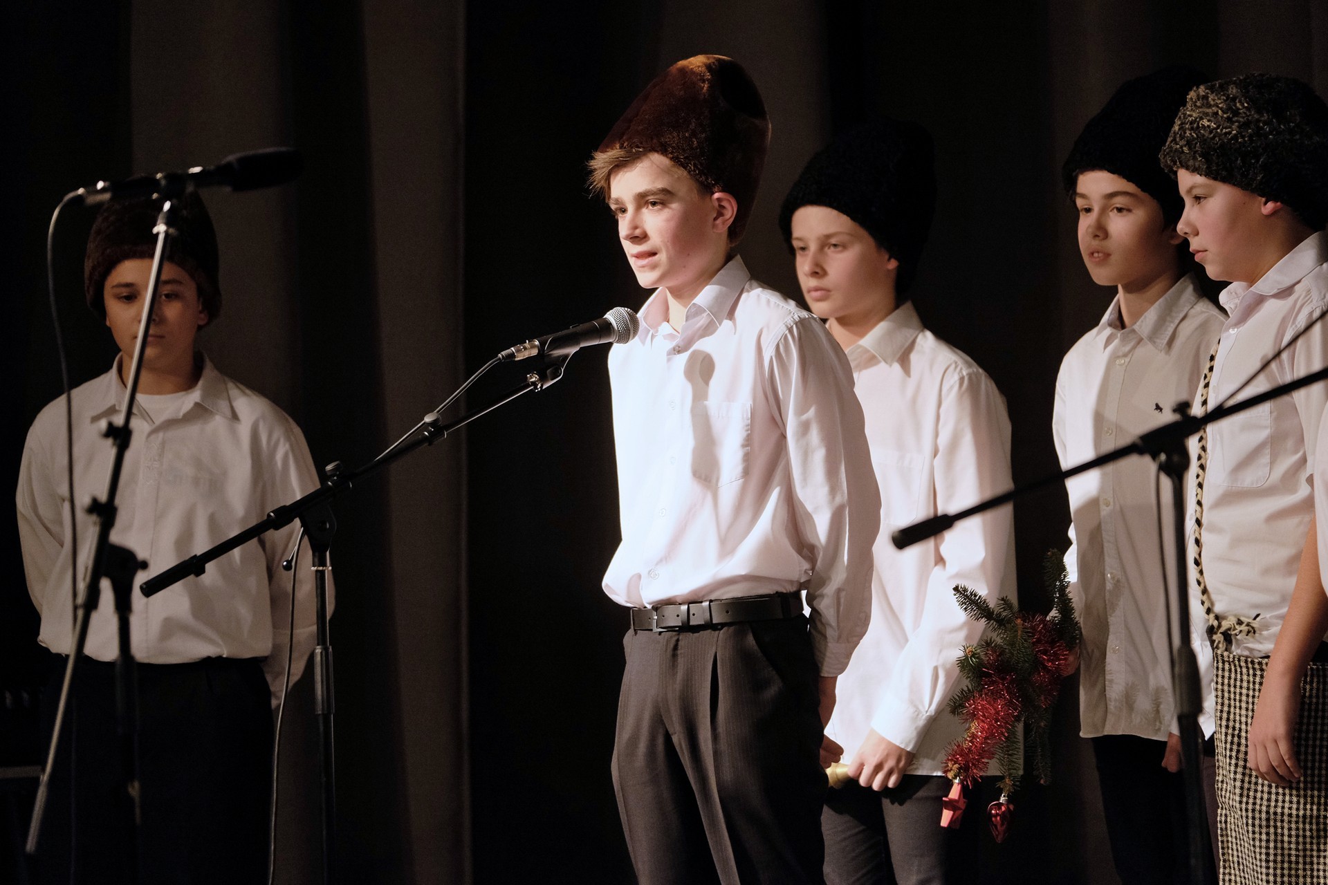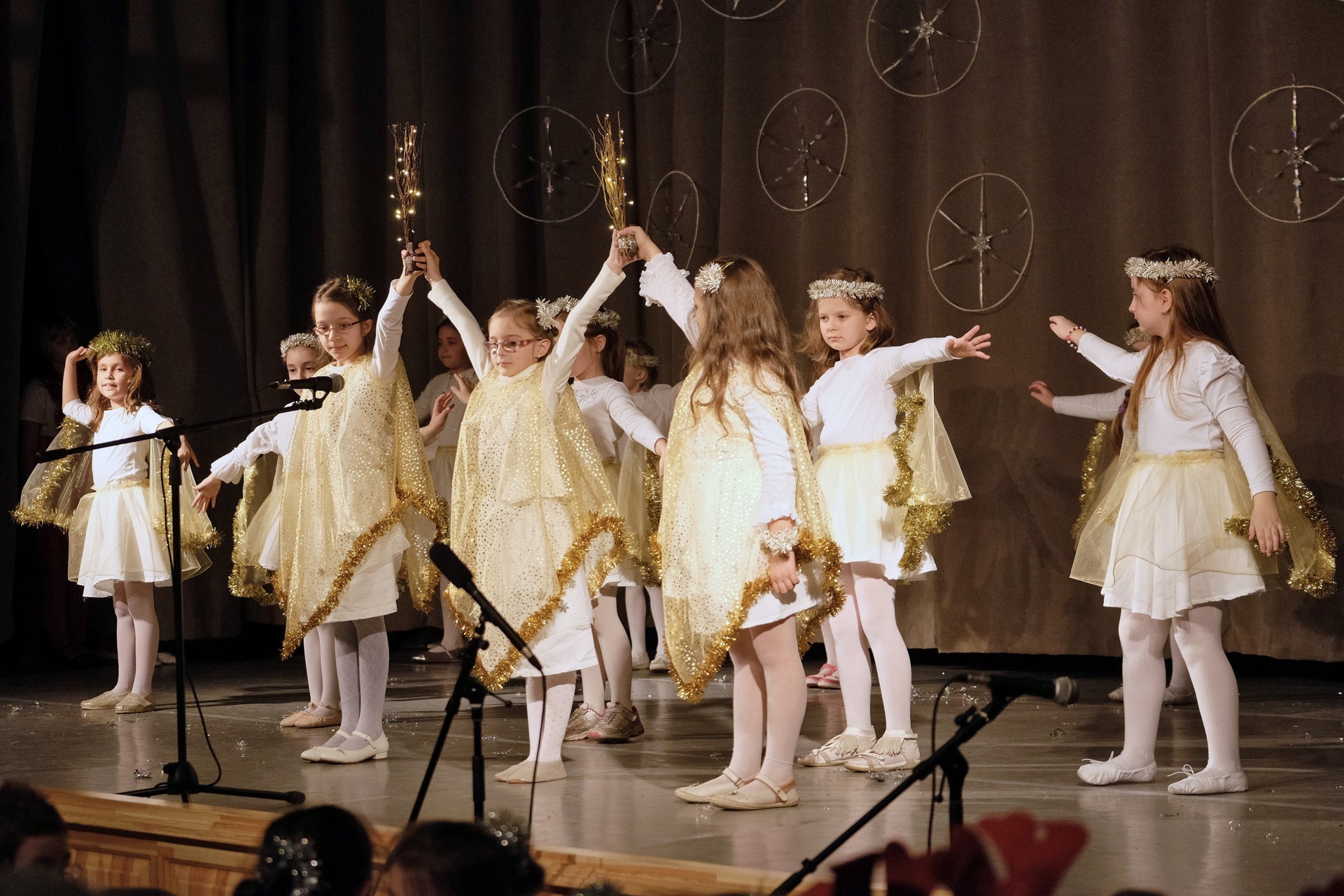 A beszédet követően a nebulók vették birtokba a színpadot, akiktől elsőként kolindákat hallgathattak meg a résztvevők az alsó tagozatosok kórusának előadásában. A szellemi világörökség listáján is szereplő kolindák változatos karácsonyi dallamainak Romániában és Moldvában ápolt tradicionális karácsonyi szokását Bugyi Ștefan-Adrian karnagy vezényletével adták elő az apróságok.