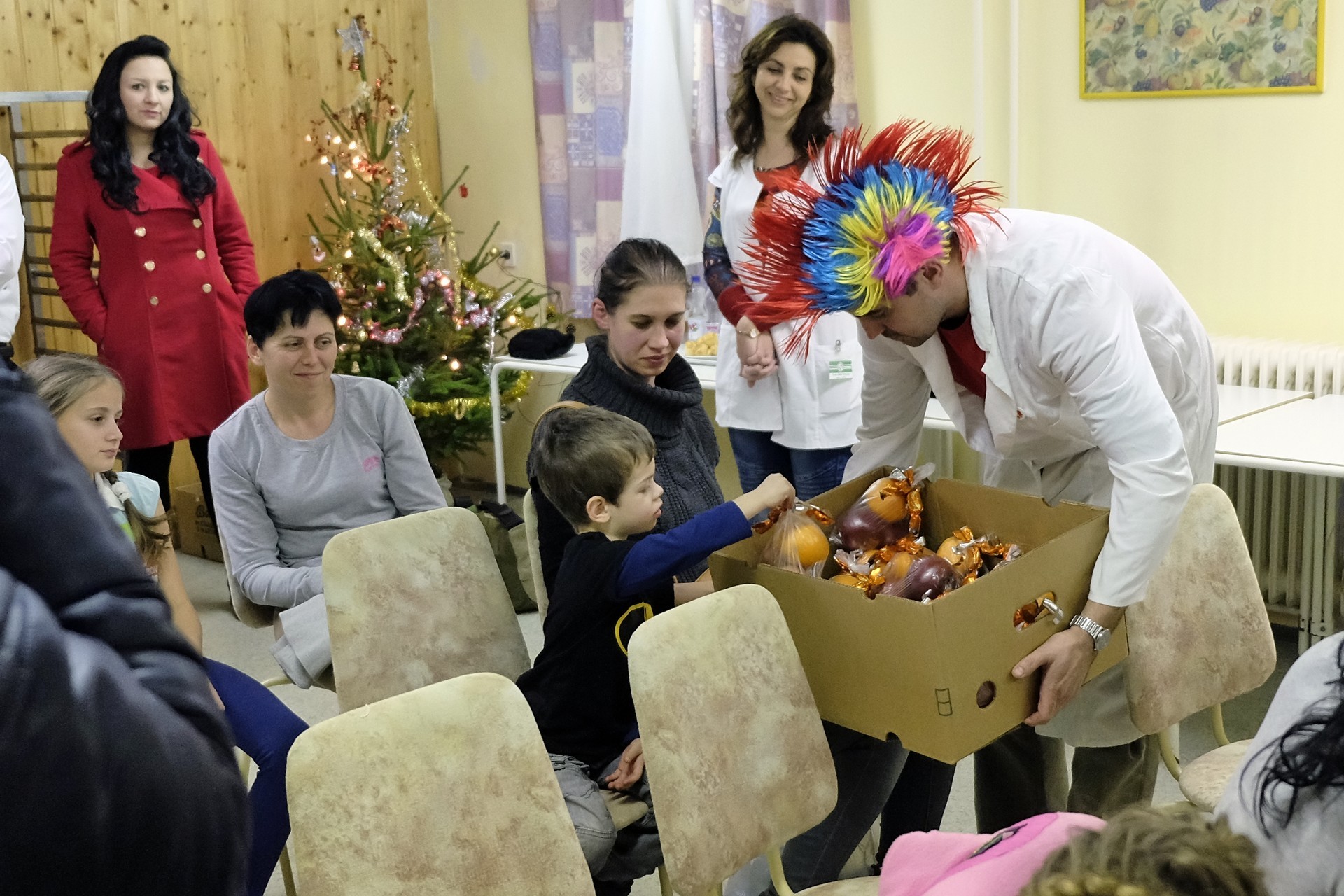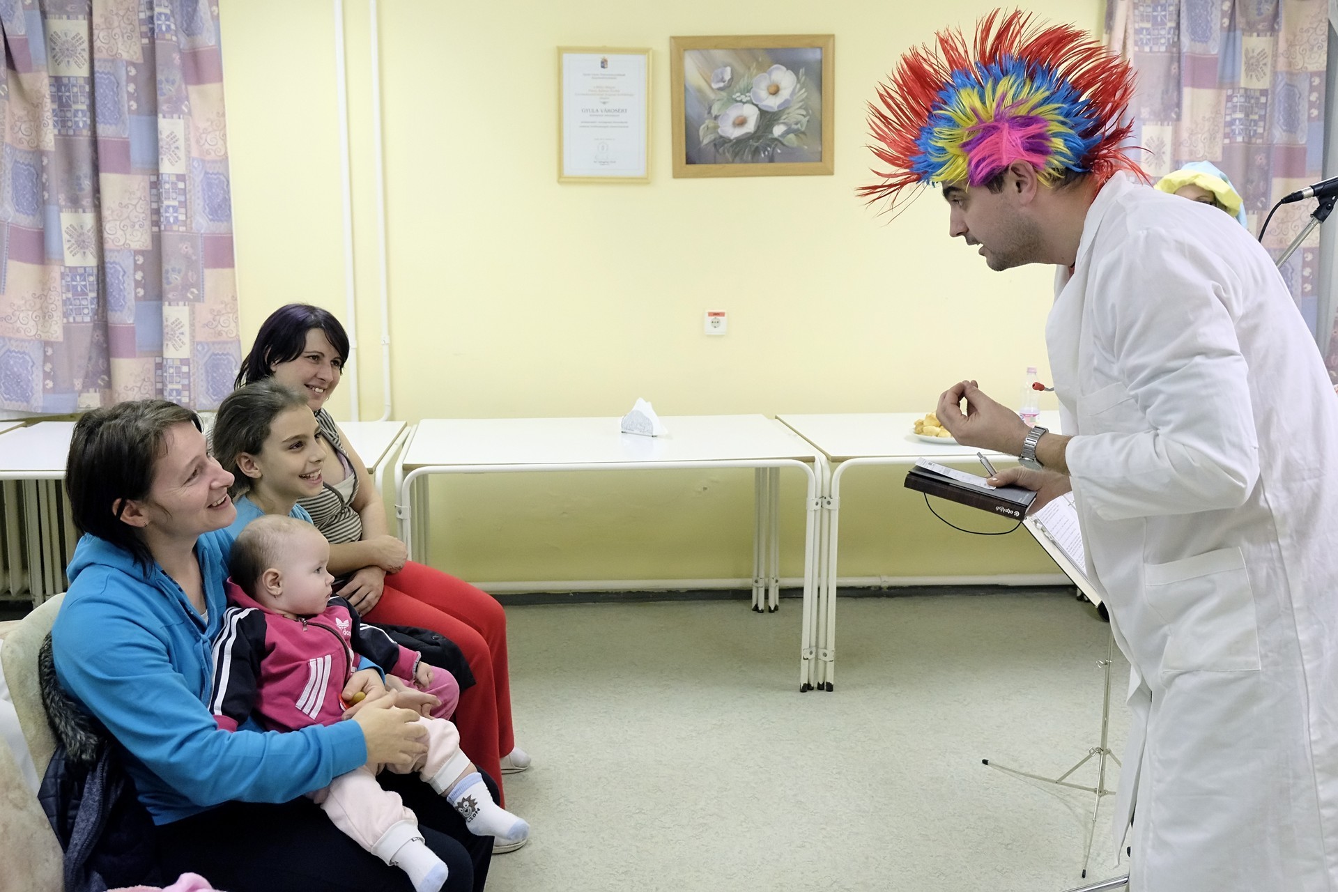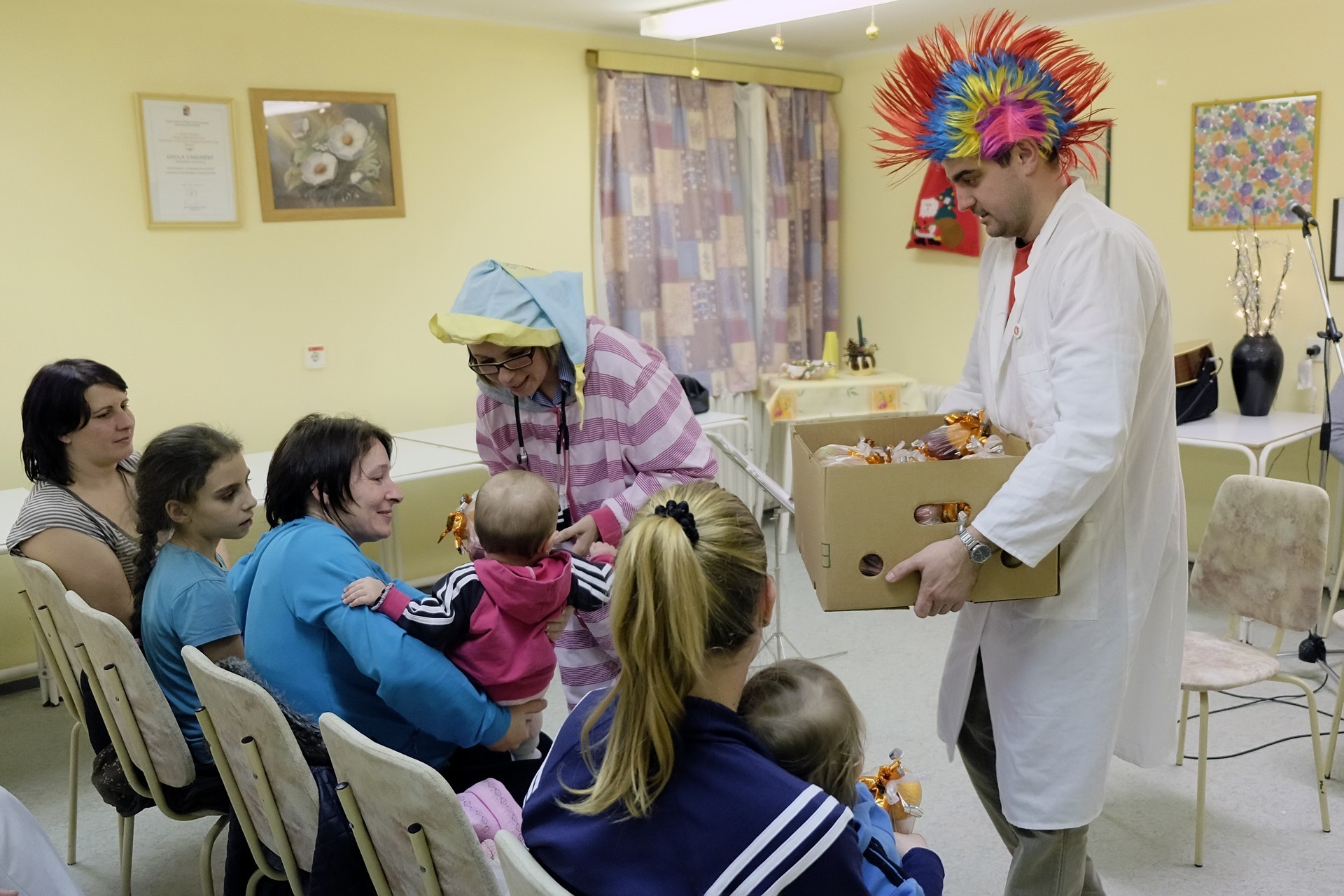 Pepe manó műsorával indult a buli a gyermekkórház földszintjén csütörtökön délután. Baracsi István, a zenélő, színes hajú doktor bácsi megtestesítője a Gyulai Hírlapnak elmesélte, szívesen érkezett a gyerekekhez ezen a napon, és a gyógyulást elősegítendő, valódi játékos receptekkel is készült nekik. Azokon többek között mosolyszünetre, rosszkedvitiszre és nevetőgörcs-rekedésre kaphattak az apróságok mindenféle gyógyírt: puszit, fagyit vagy jókedvtapaszt.