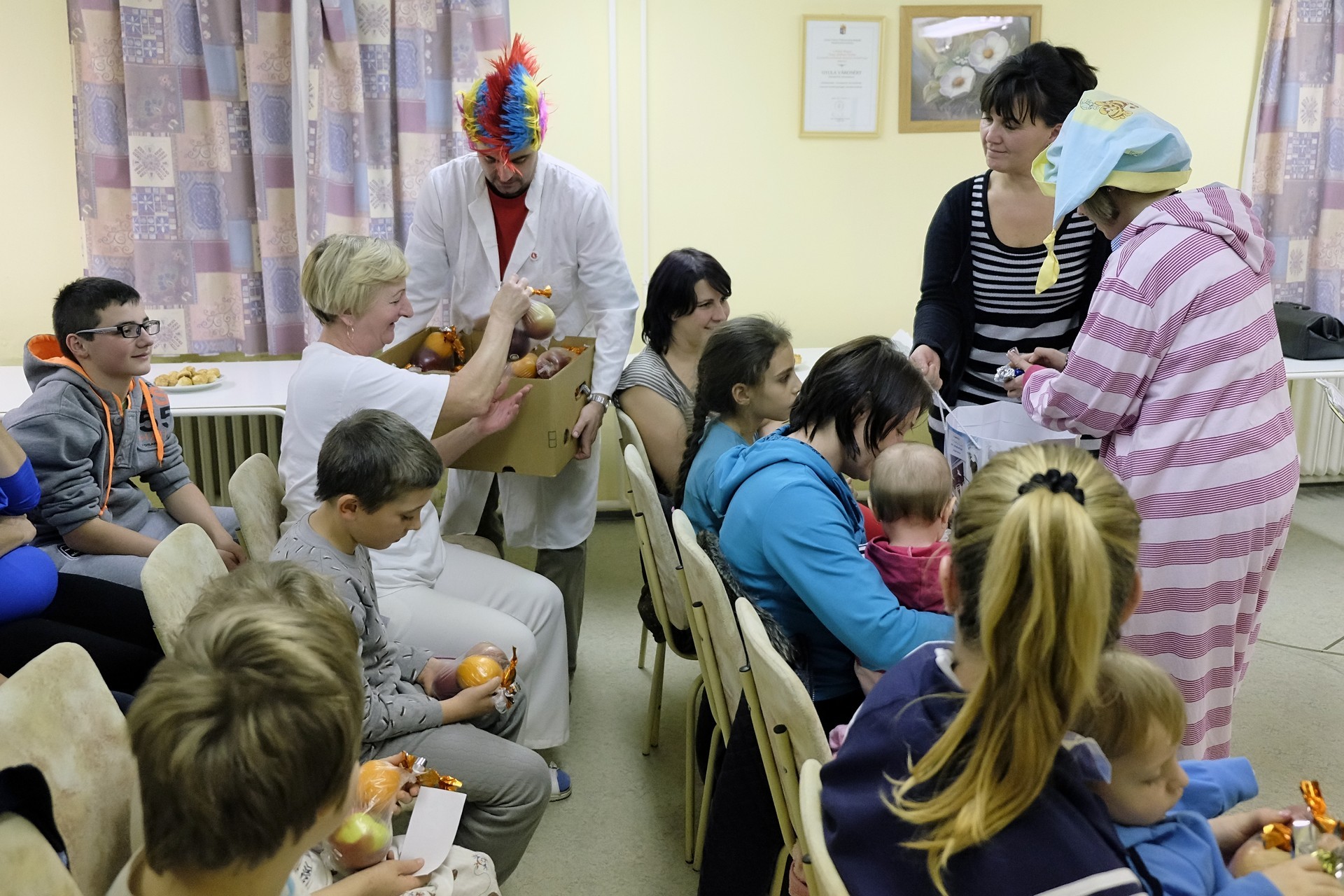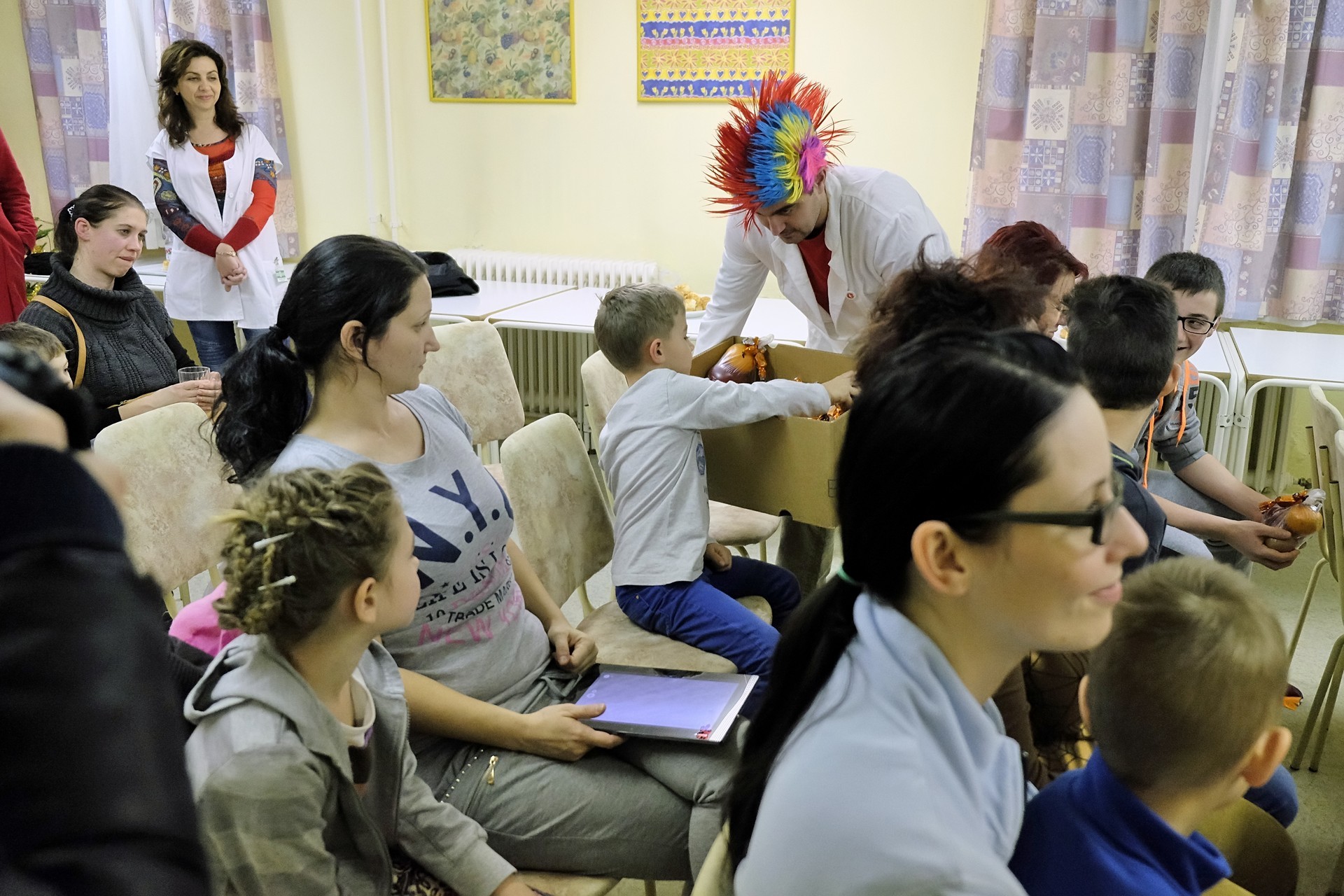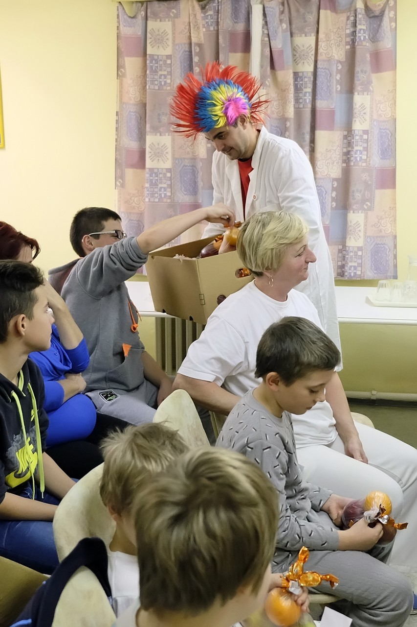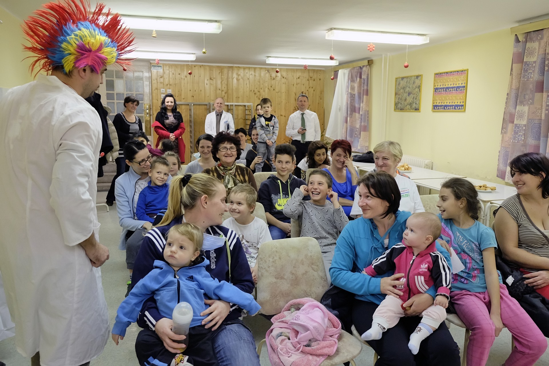 Pepe manó műsorával indult a buli a gyermekkórház földszintjén csütörtökön délután. Baracsi István, a zenélő, színes hajú doktor bácsi megtestesítője a Gyulai Hírlapnak elmesélte, szívesen érkezett a gyerekekhez ezen a napon, és a gyógyulást elősegítendő, valódi játékos receptekkel is készült nekik. Azokon többek között mosolyszünetre, rosszkedvitiszre és nevetőgörcs-rekedésre kaphattak az apróságok mindenféle gyógyírt: puszit, fagyit vagy jókedvtapaszt.
